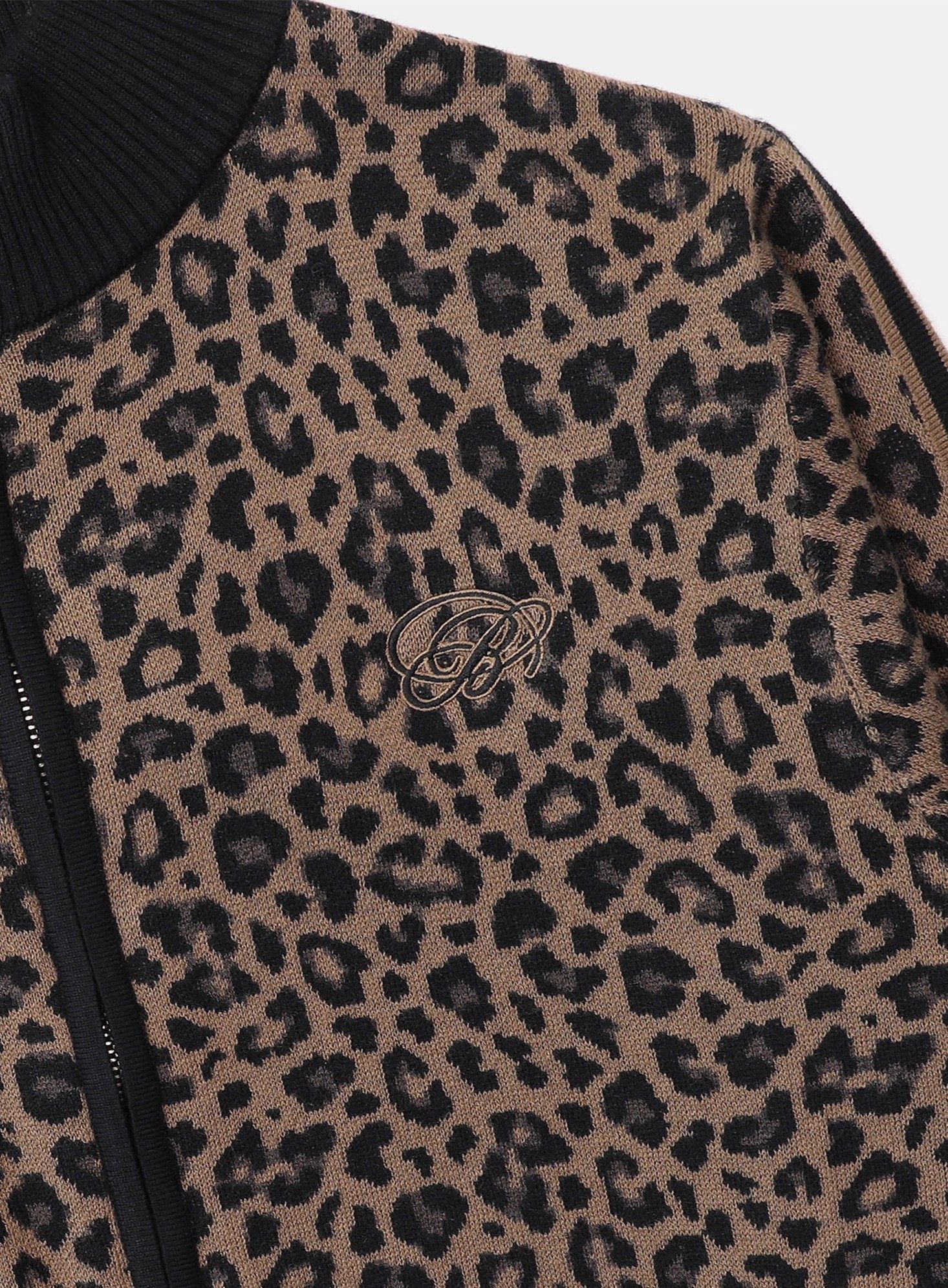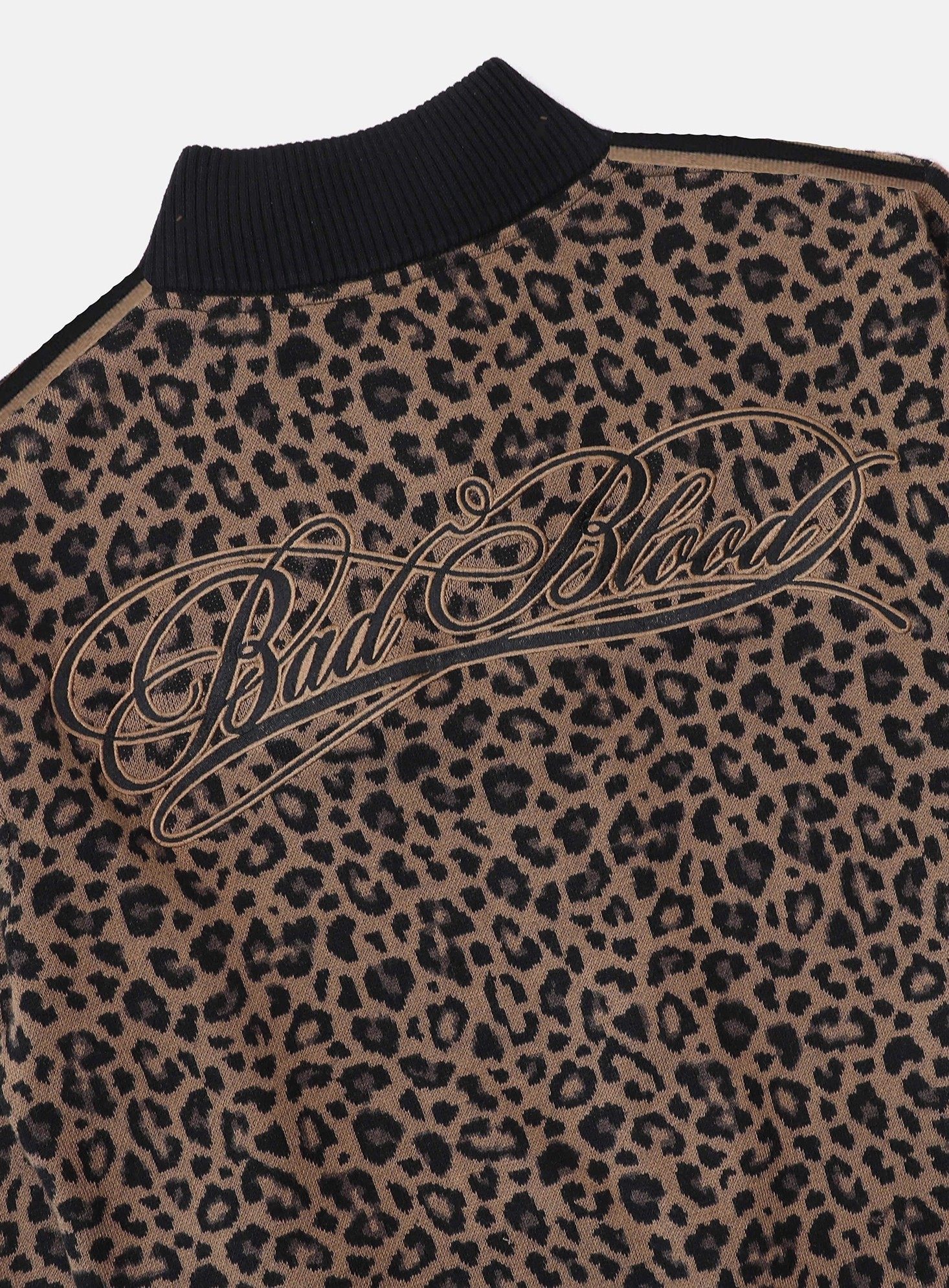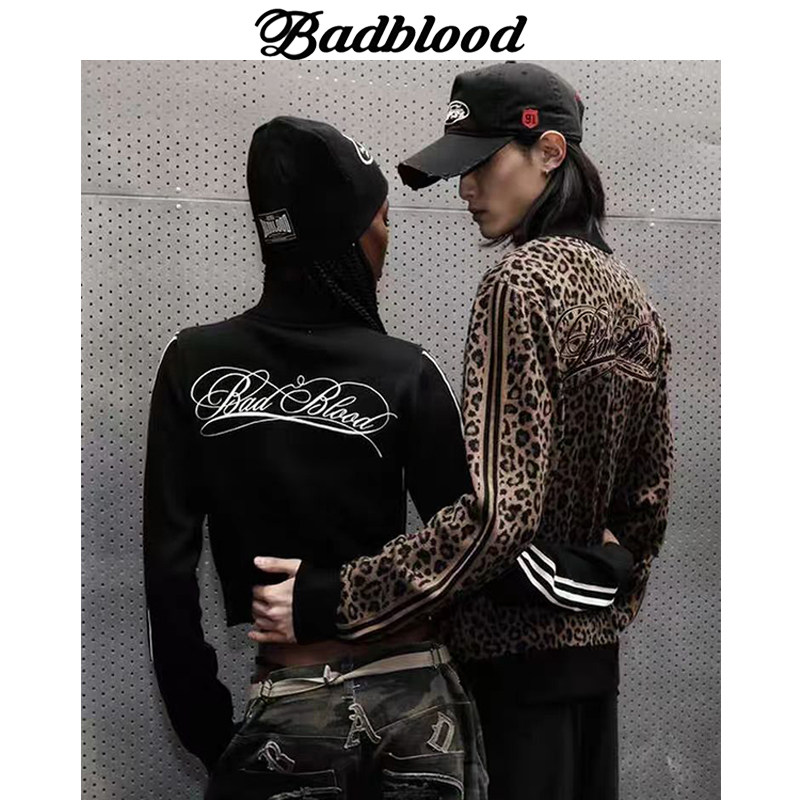 BADBLOOD Leopard Print Zip Cardigan Stand Collar Knit Jacket