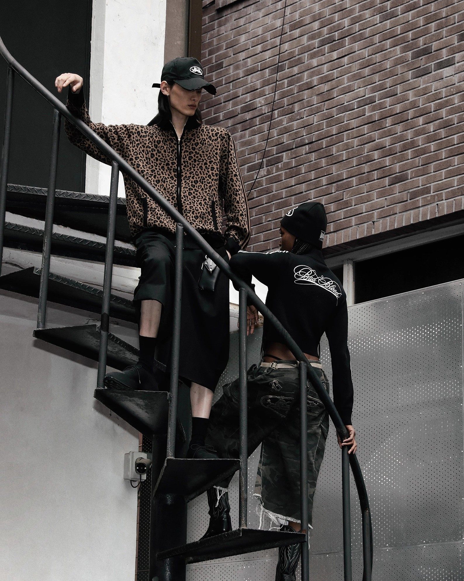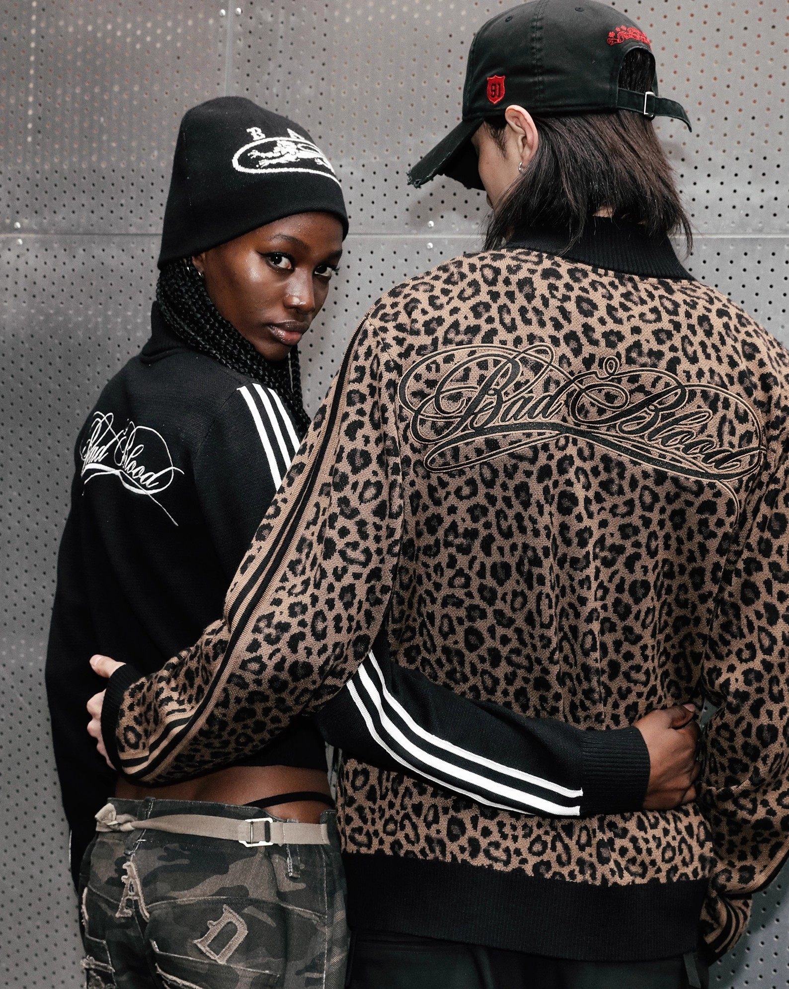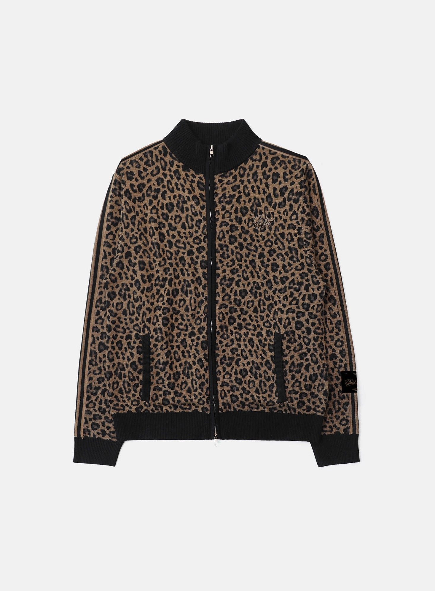 BADBLOOD Leopard Print Zip Cardigan Stand Collar Knit Jacket