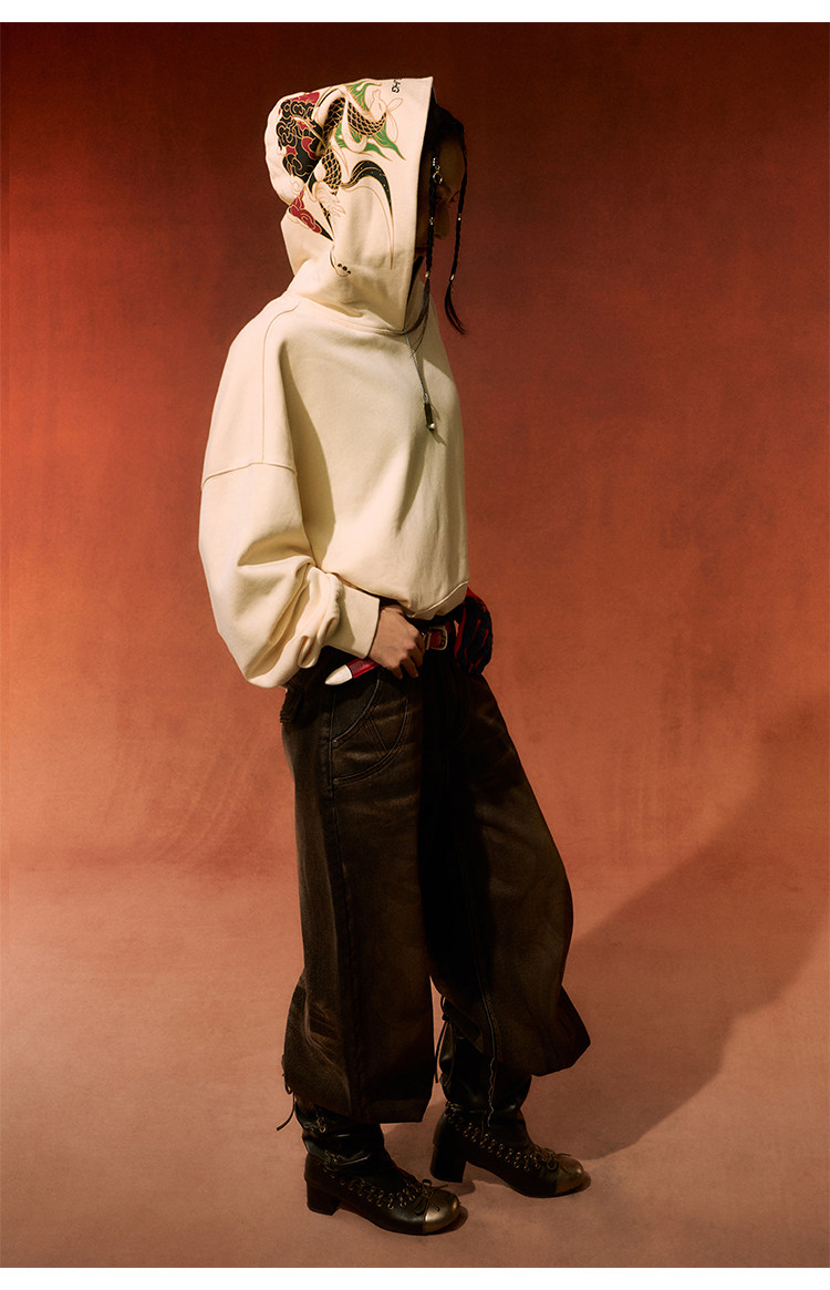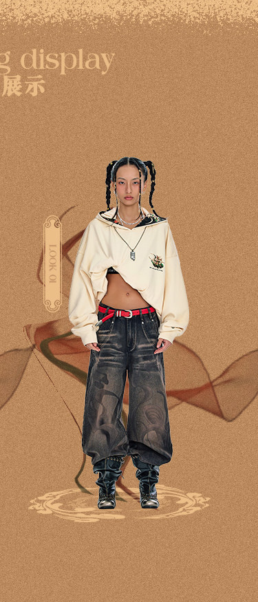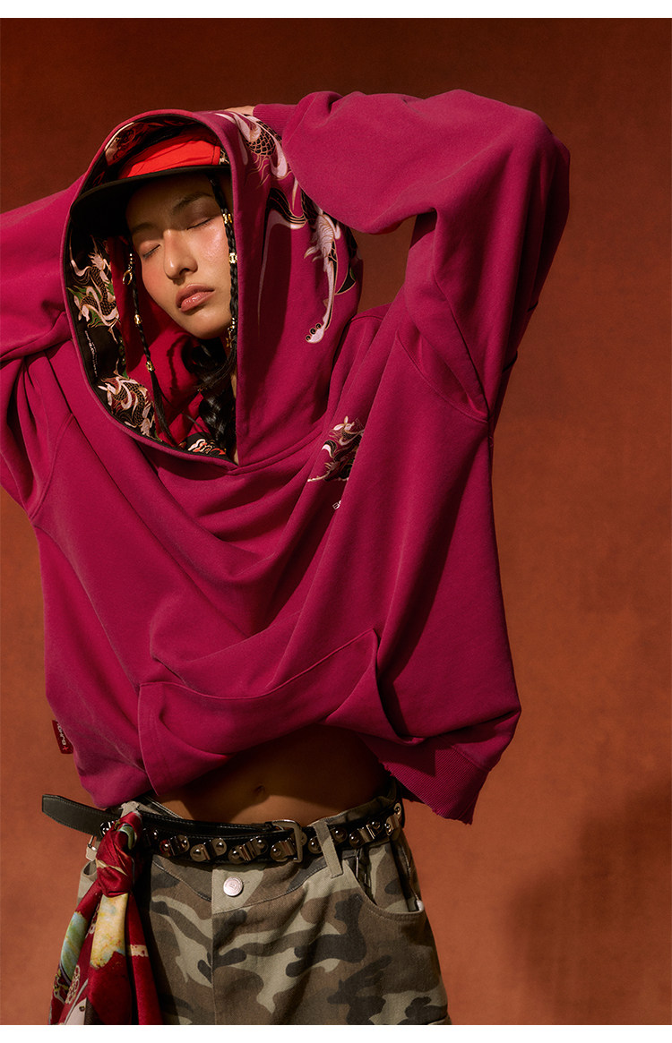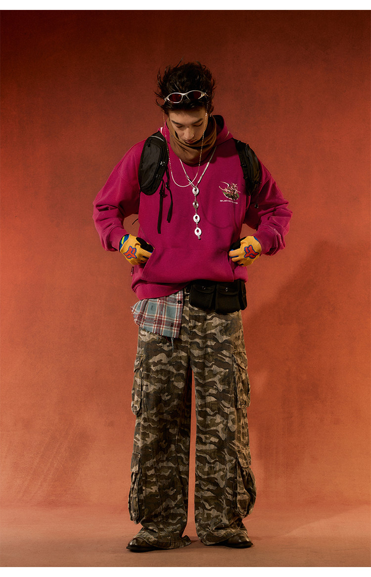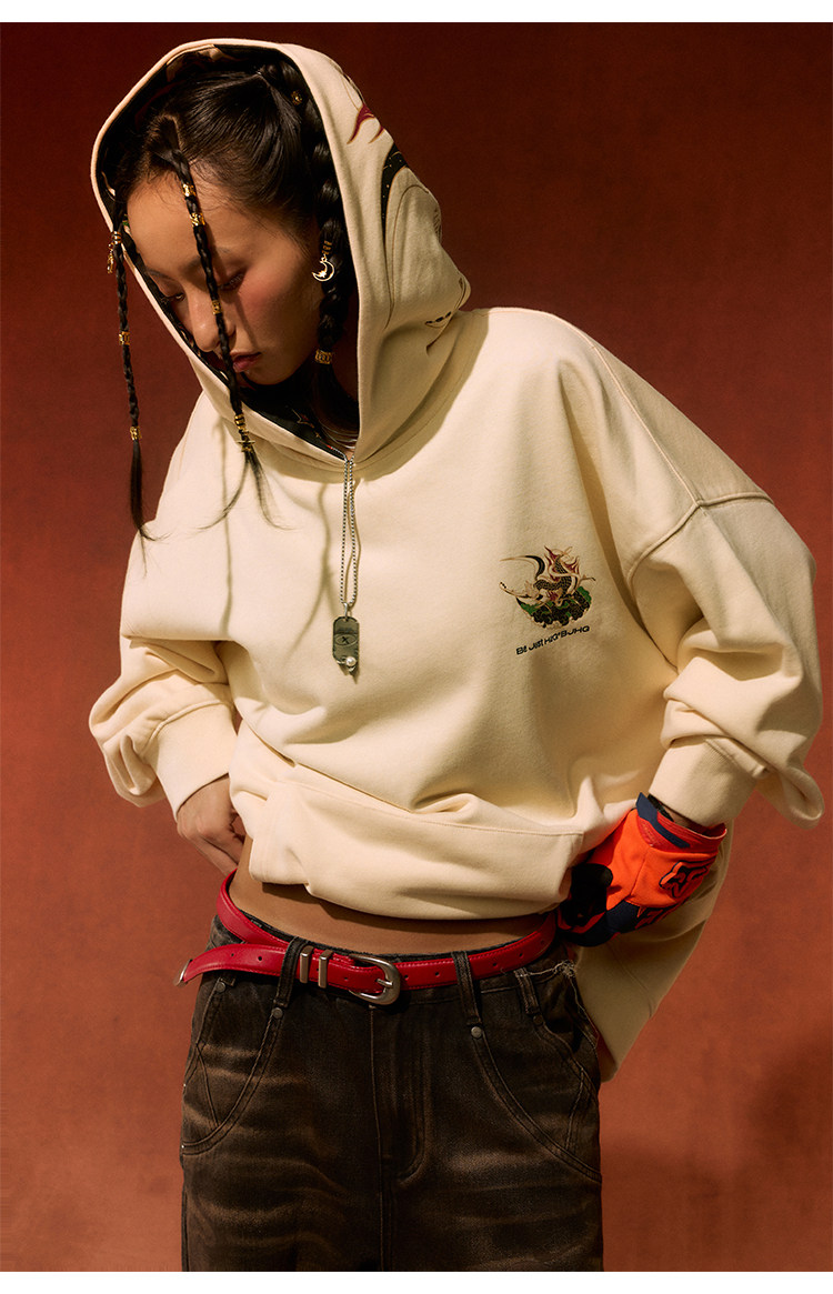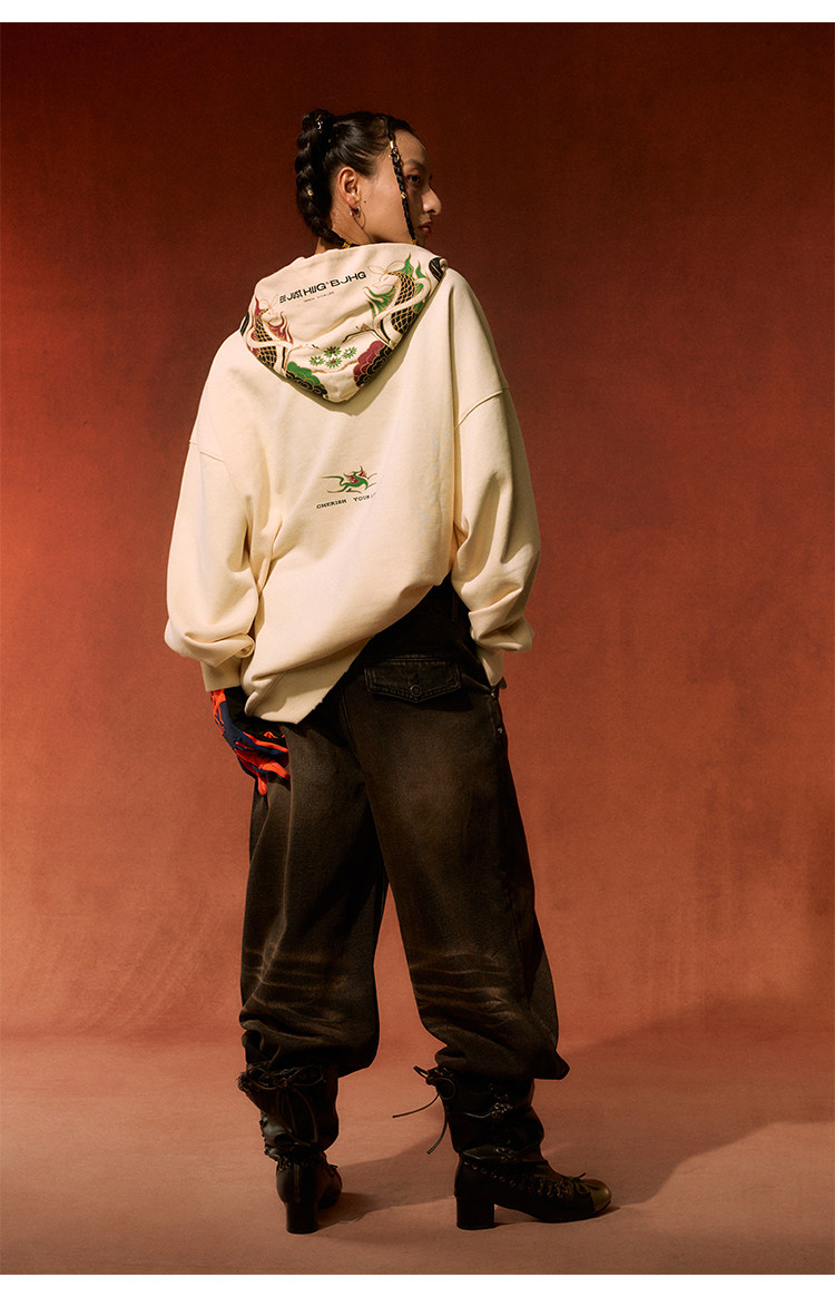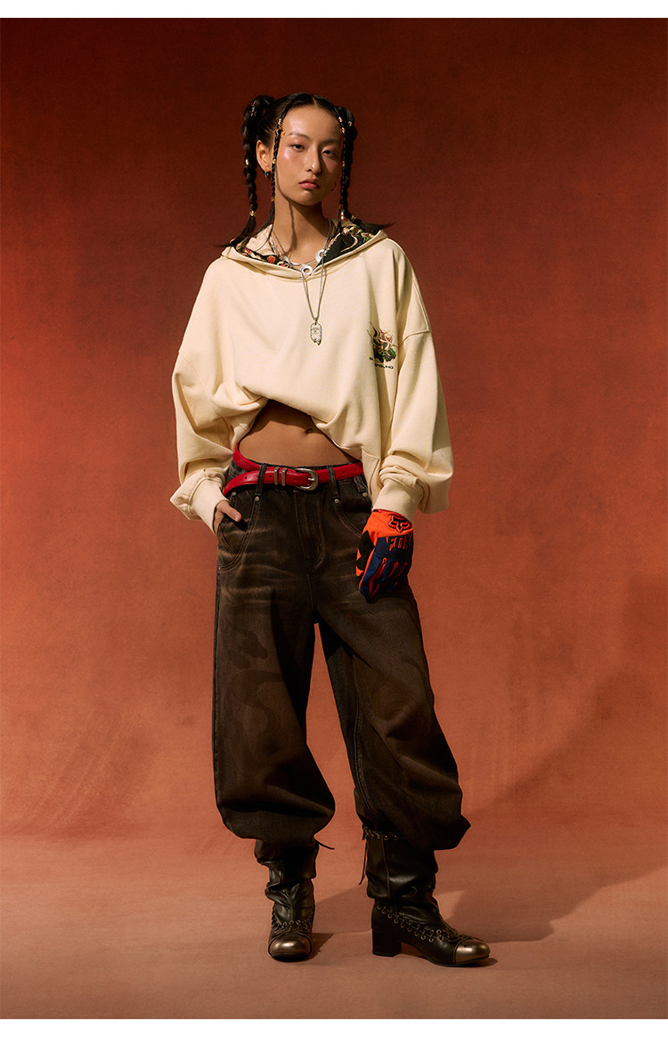 BJHG Retro Distressed Print Oversized Sweatshirt