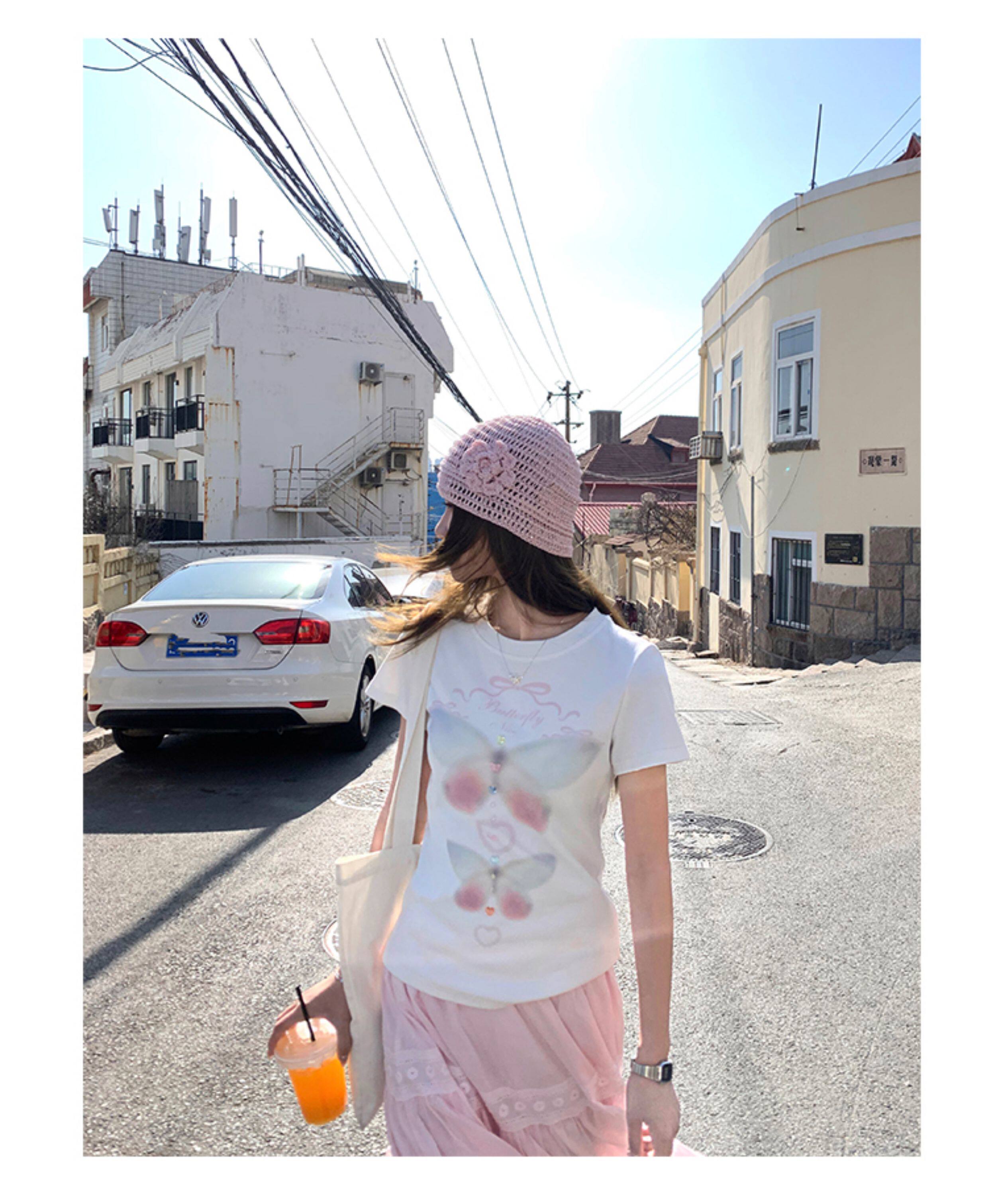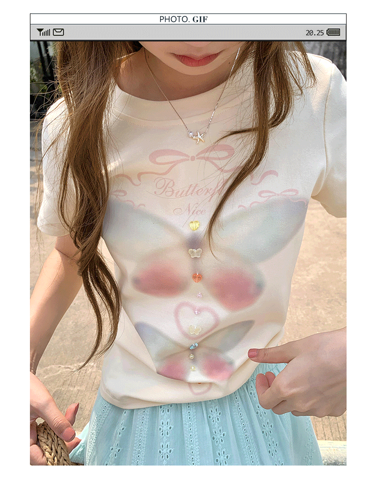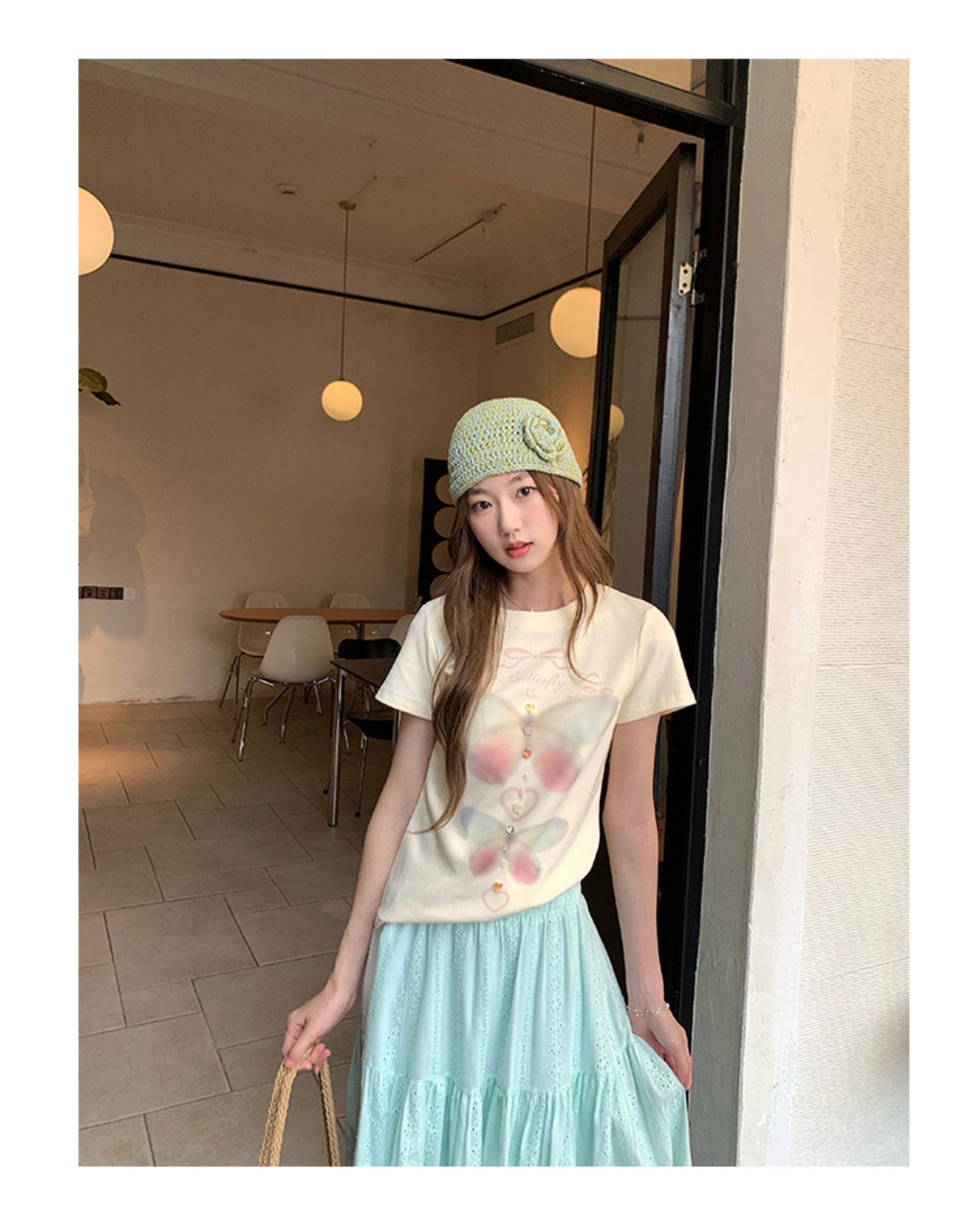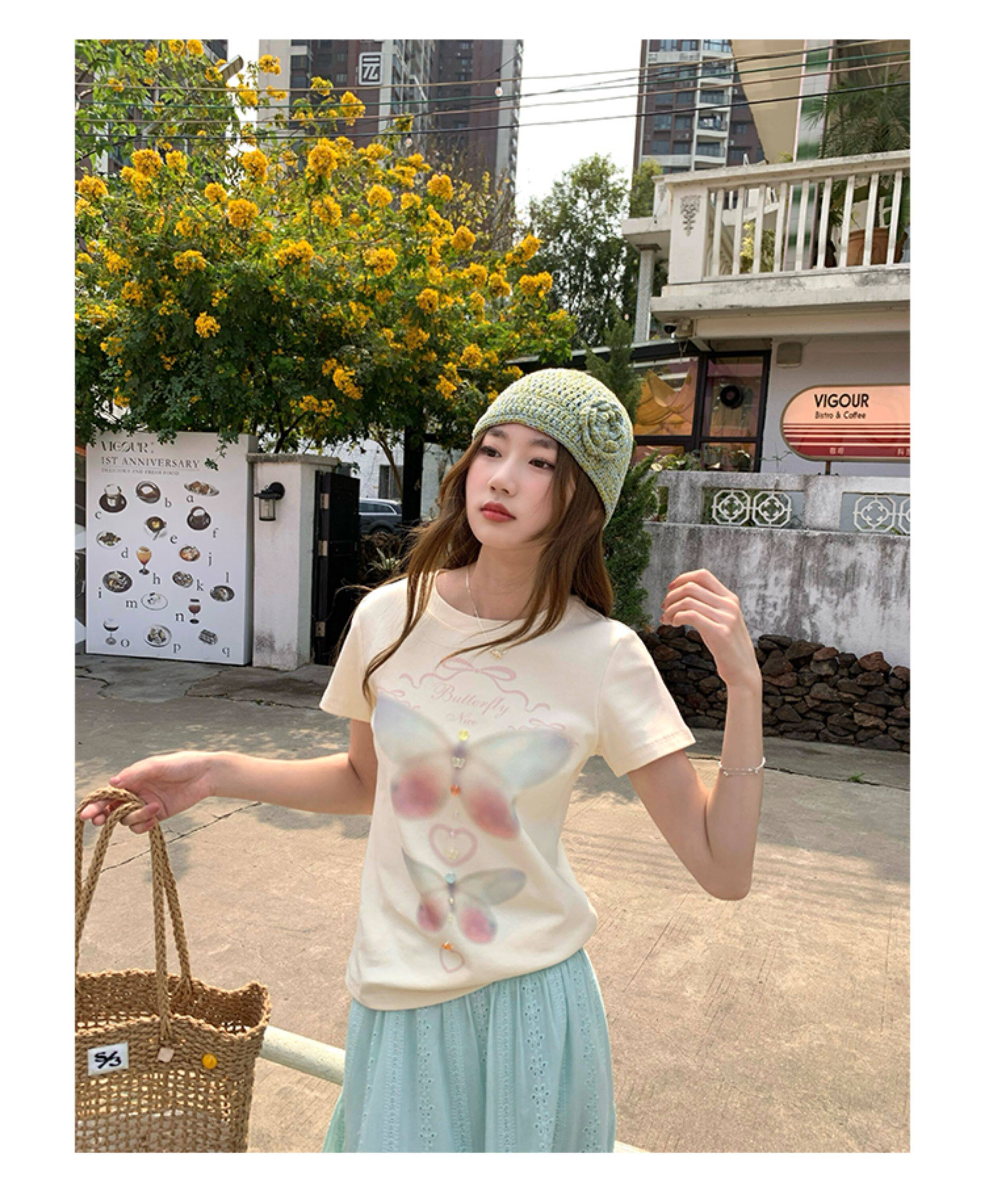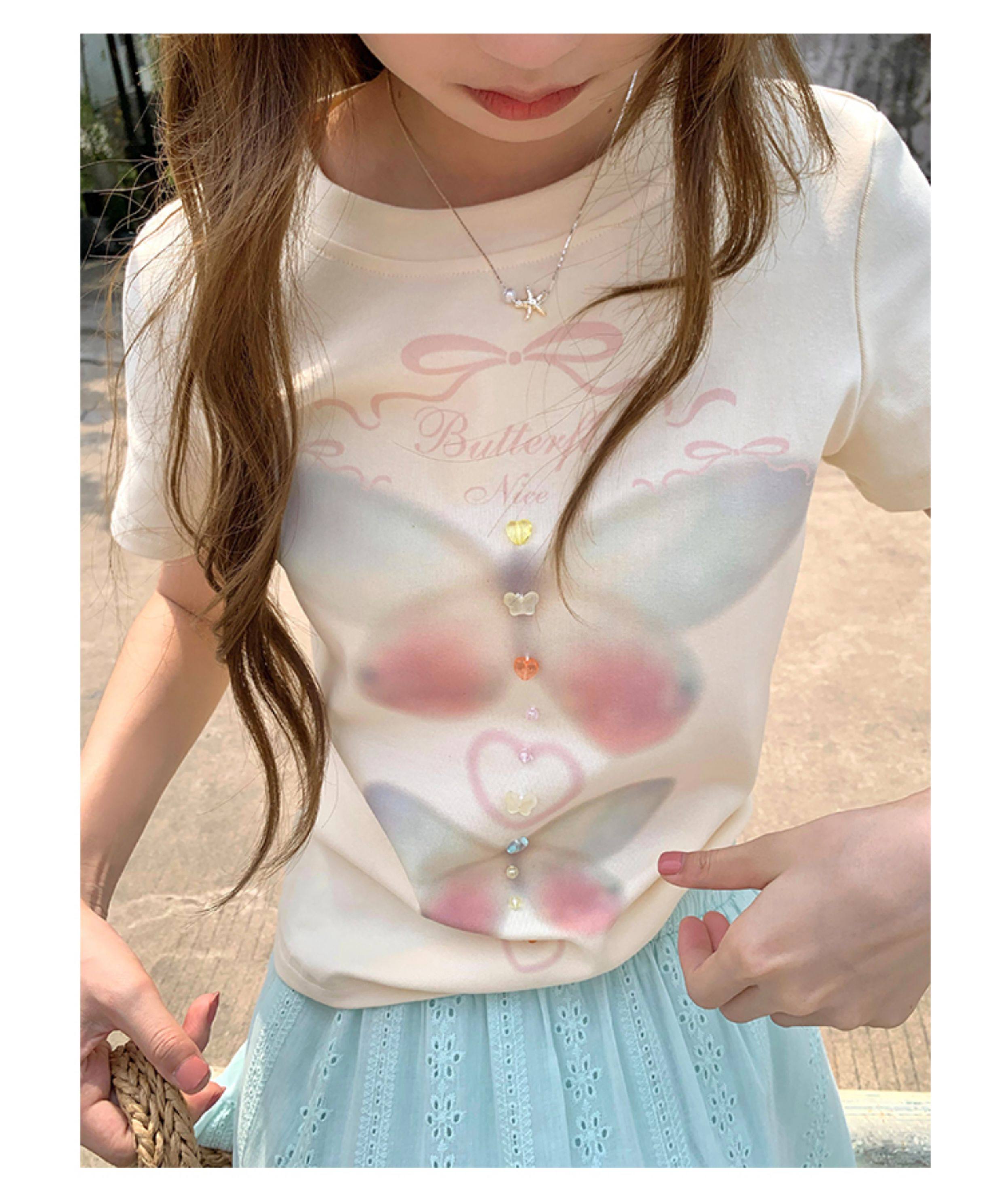 CCKOK Dream Butterfly Print Slim Shoulder T Shirt