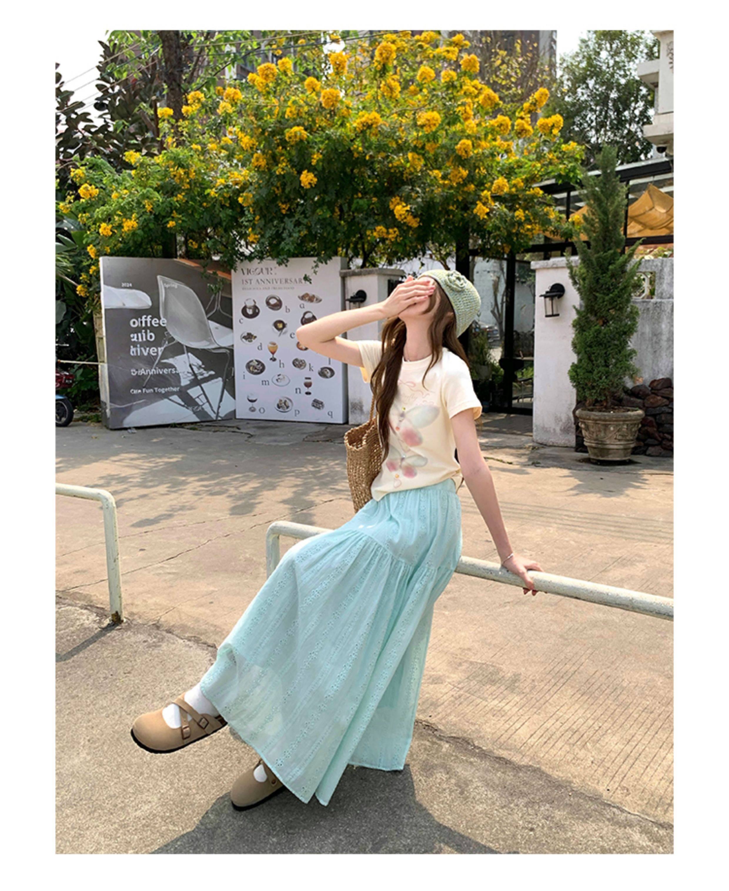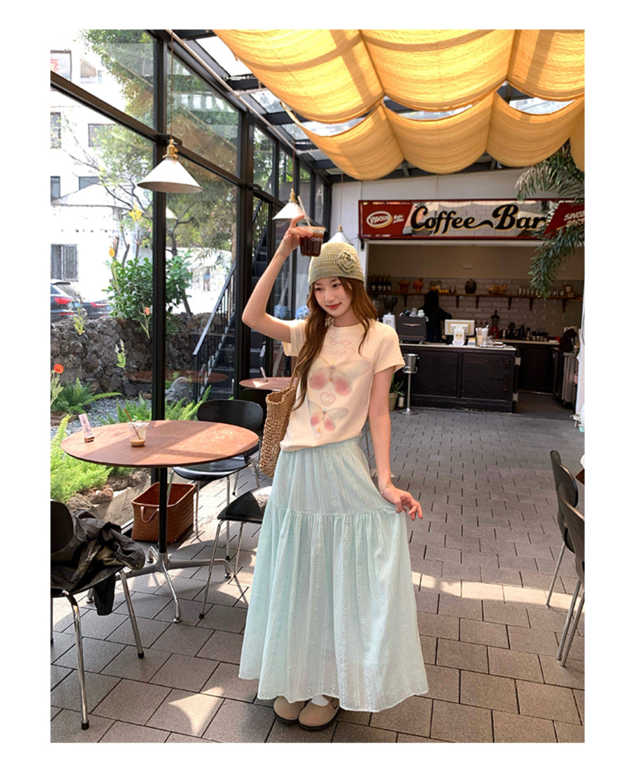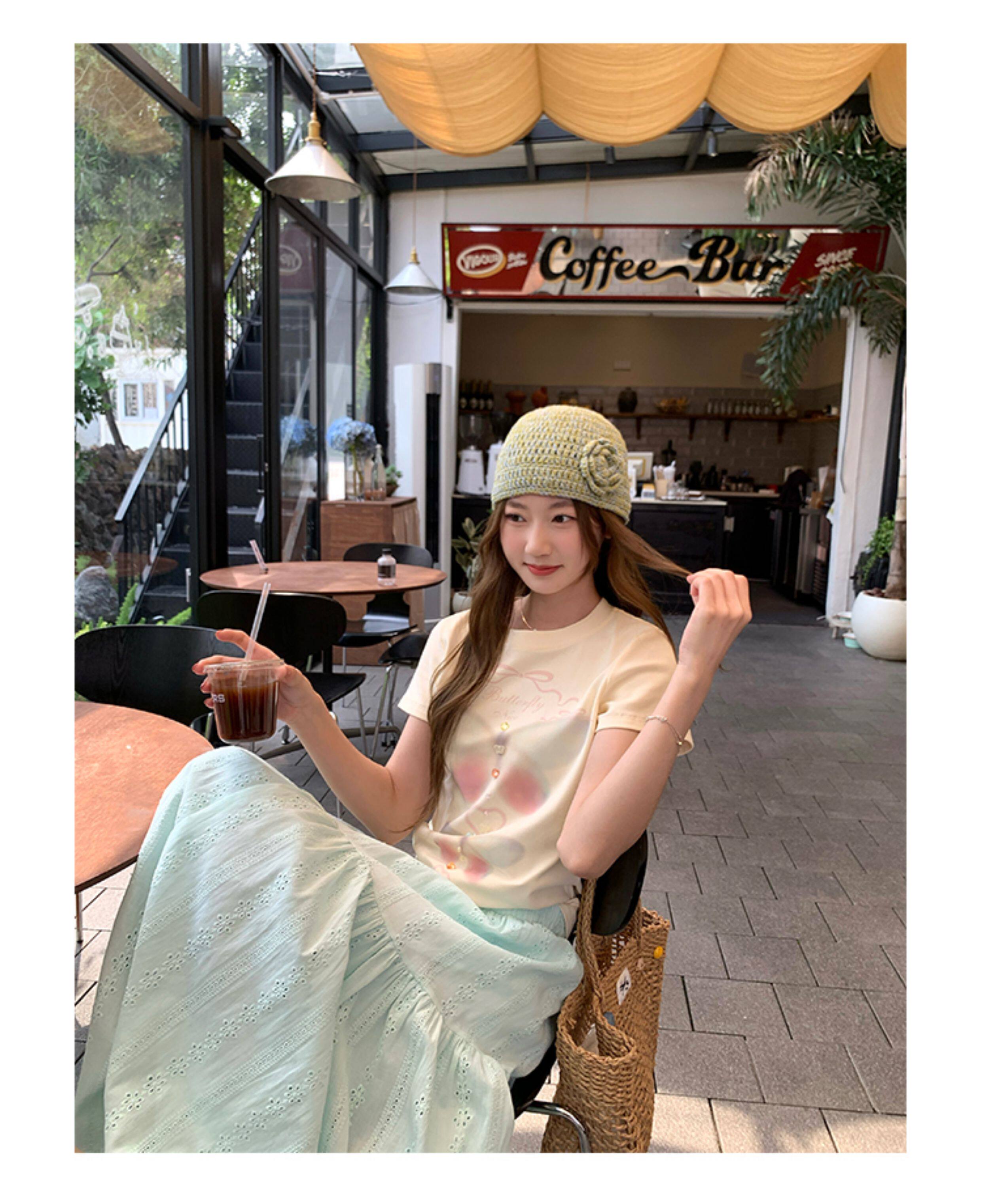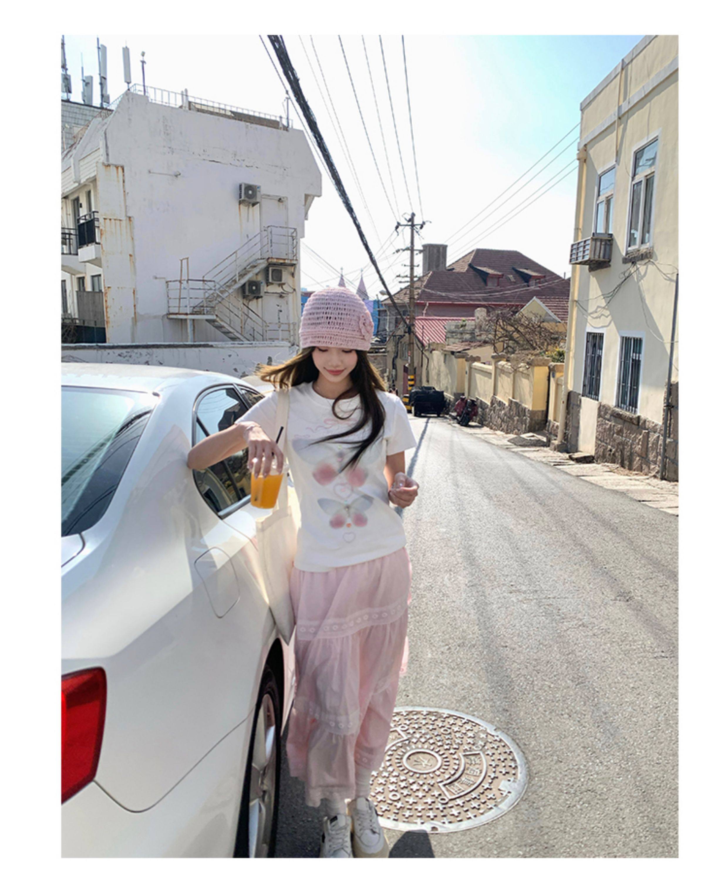 CCKOK Dream Butterfly Print Slim Shoulder T Shirt