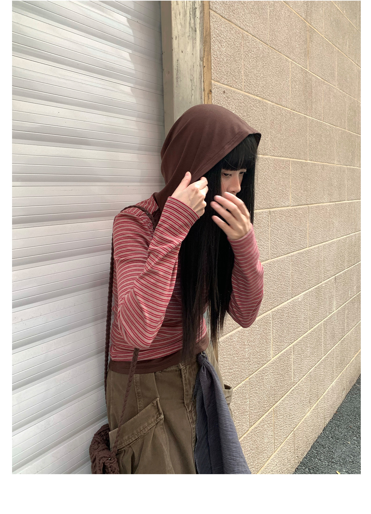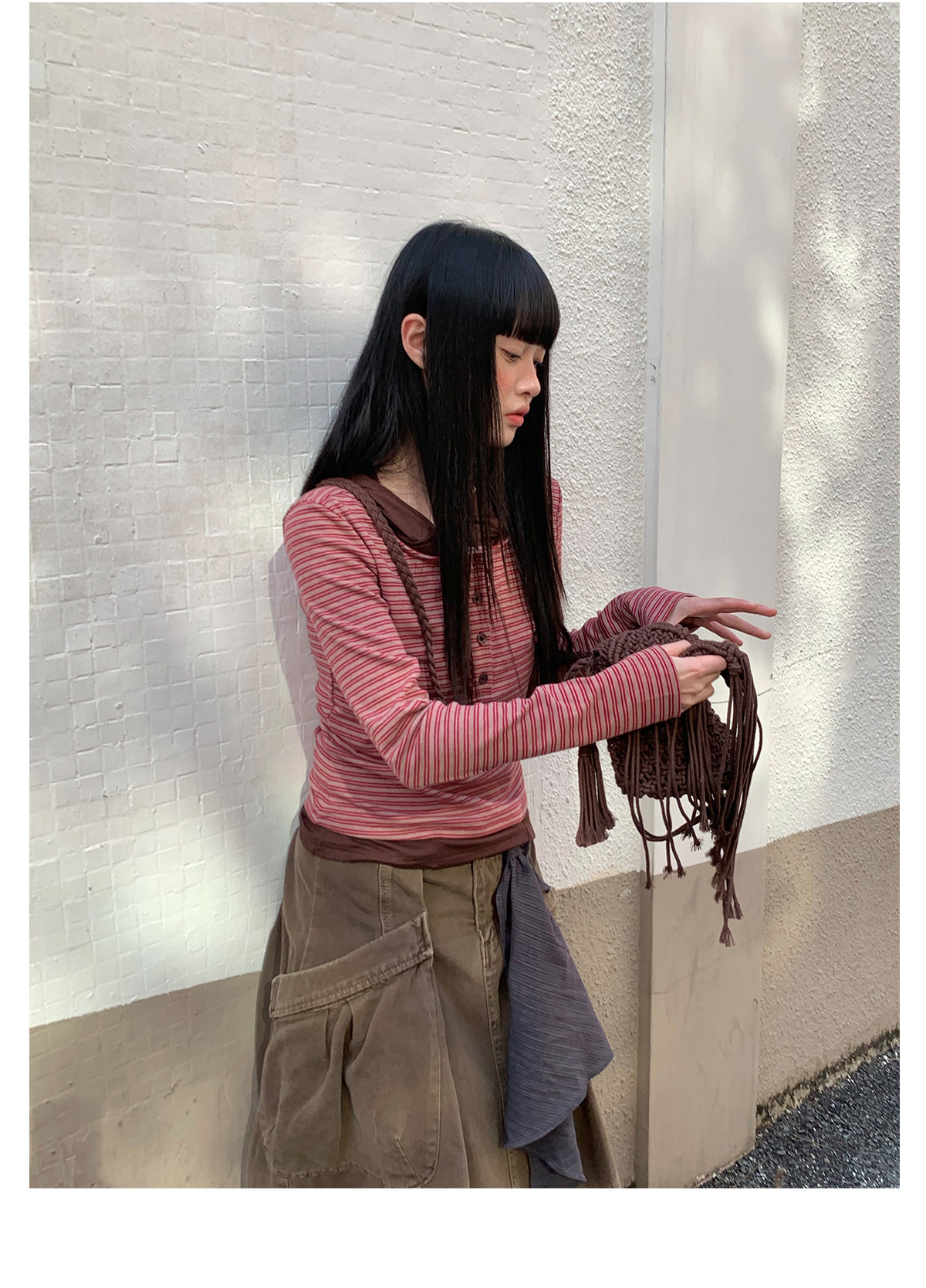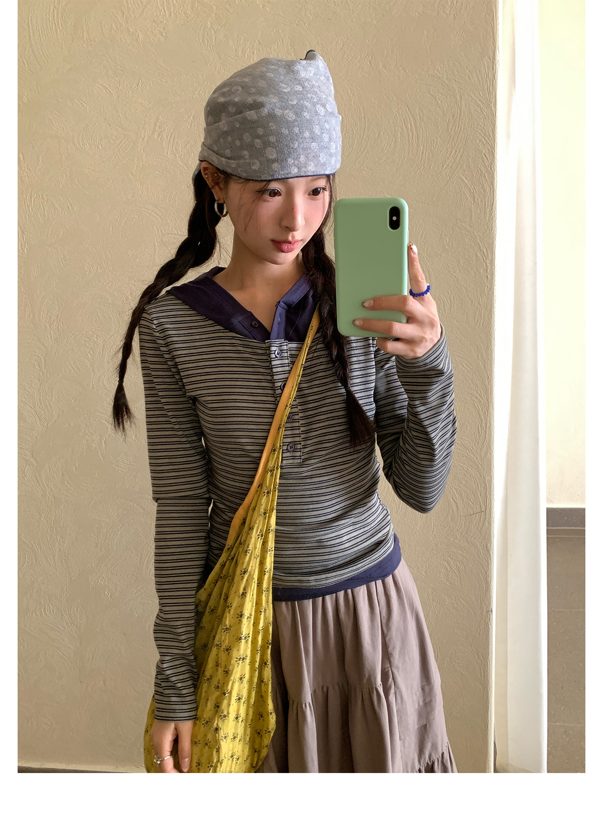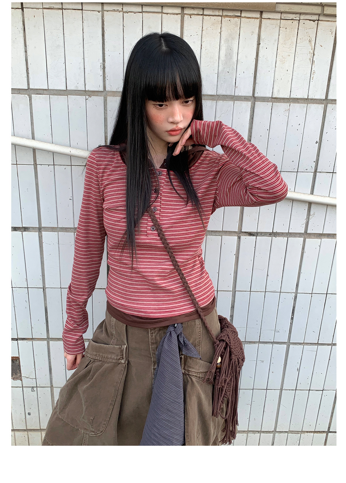 CCKOK Retro Stripe Splicing Fake Two Piece Hoodie