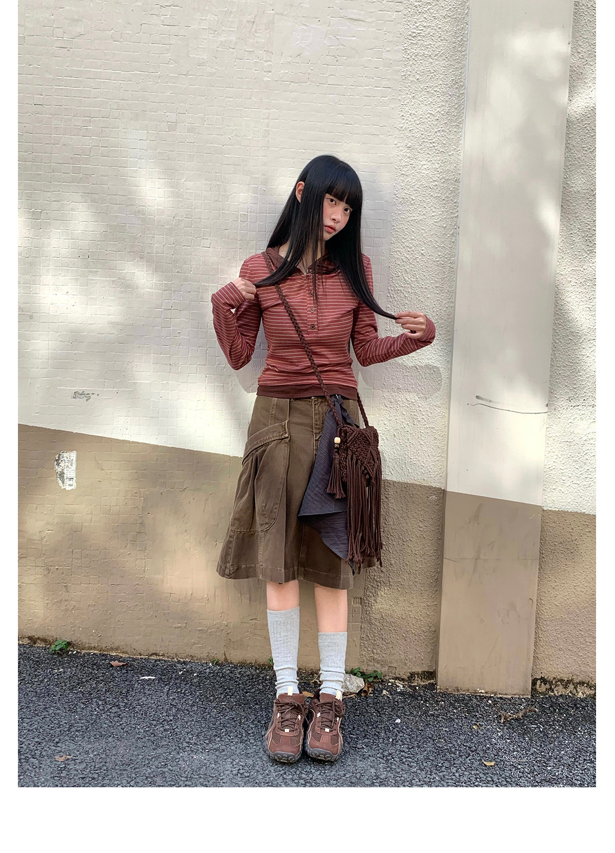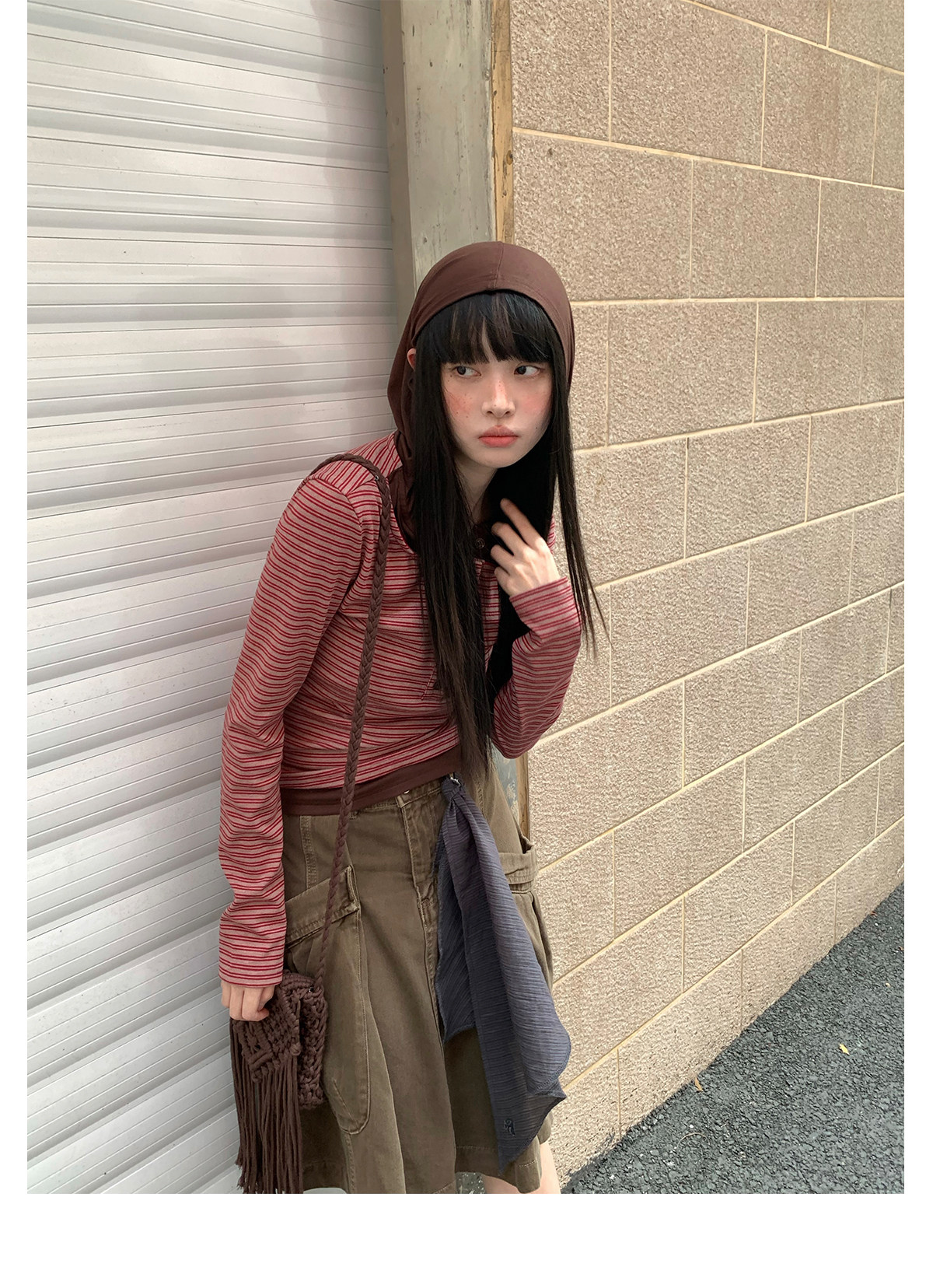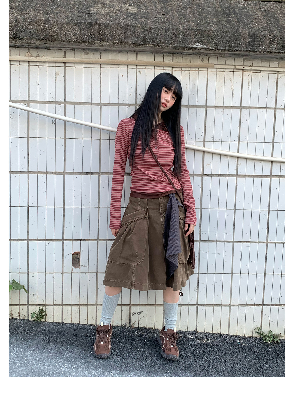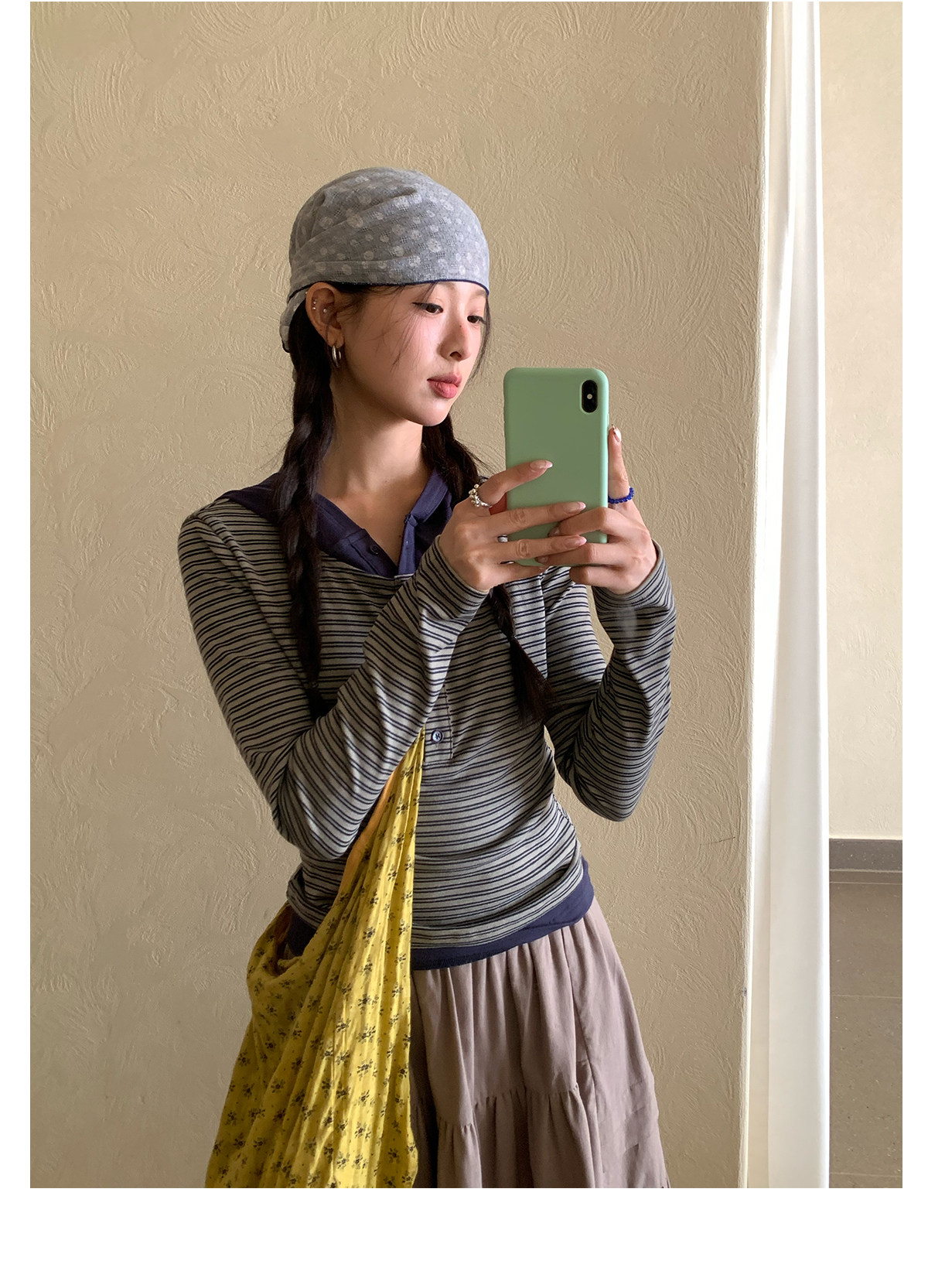 CCKOK Retro Stripe Splicing Fake Two Piece Hoodie