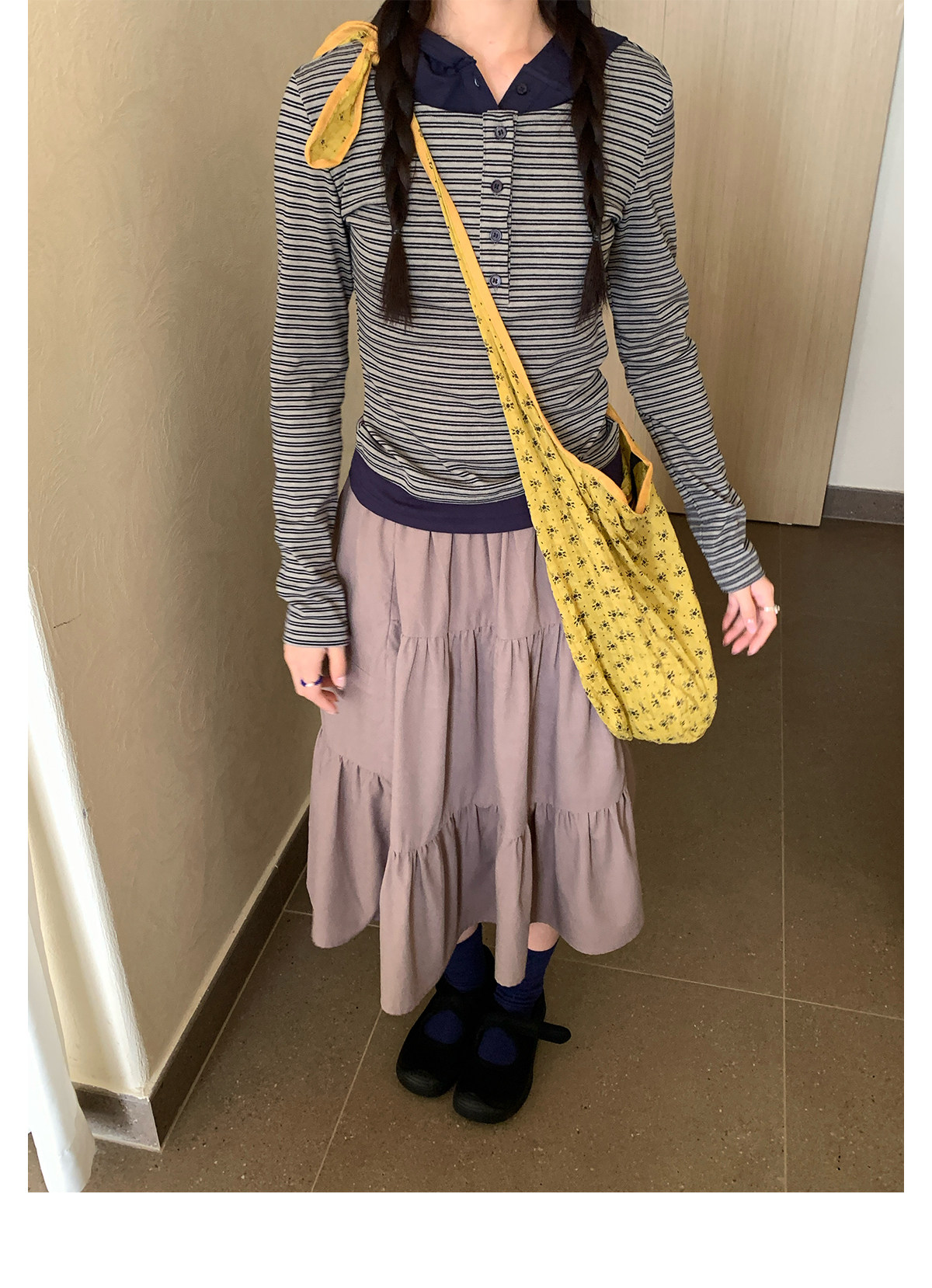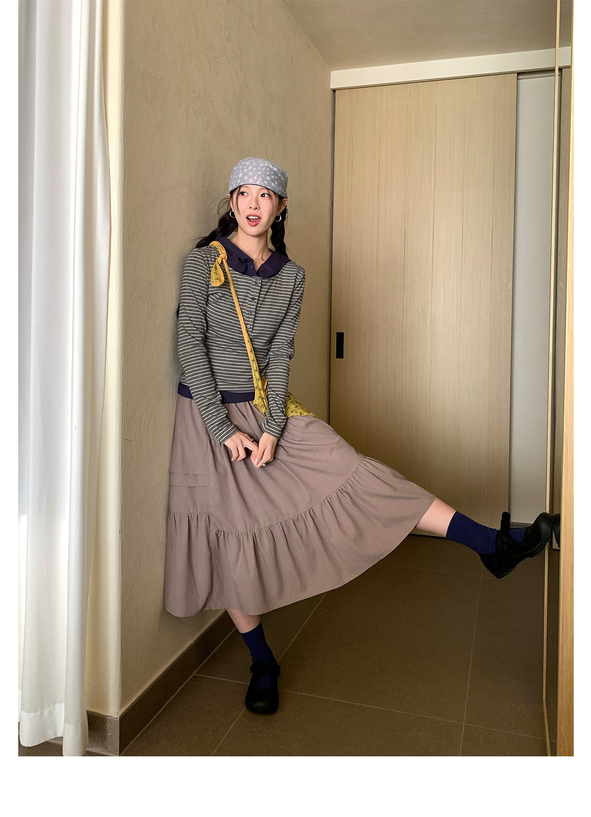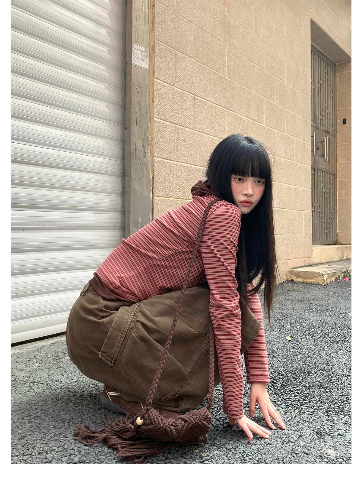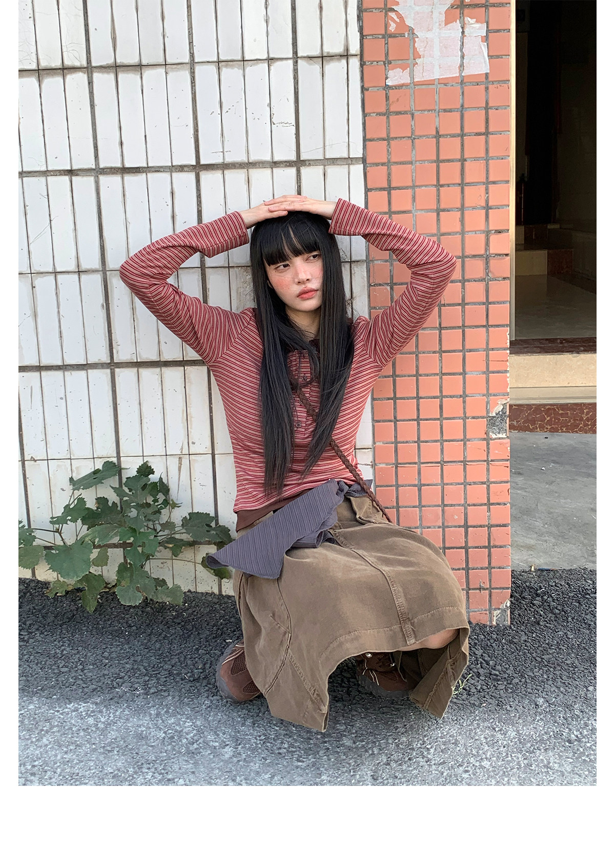 CCKOK Retro Stripe Splicing Fake Two Piece Hoodie
