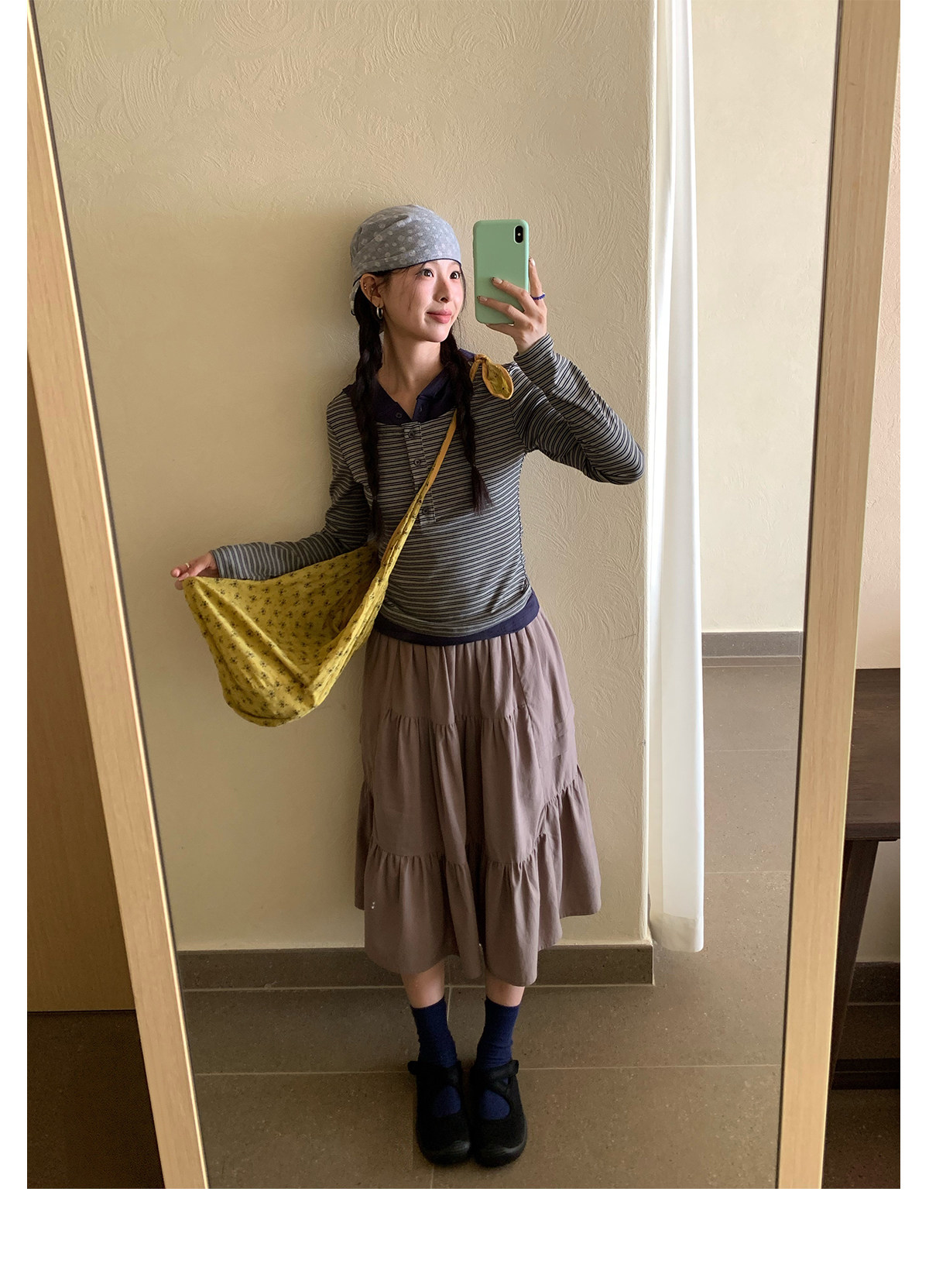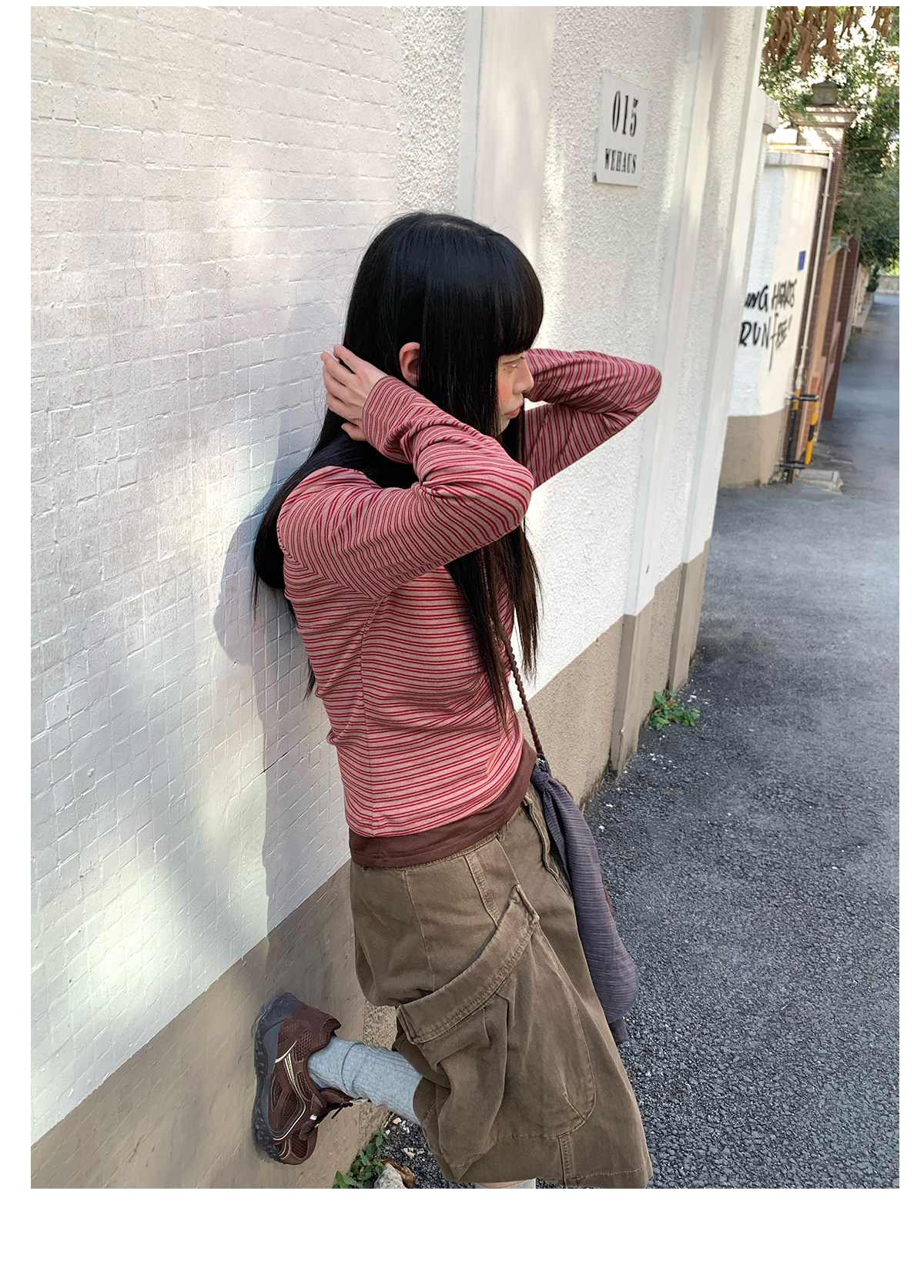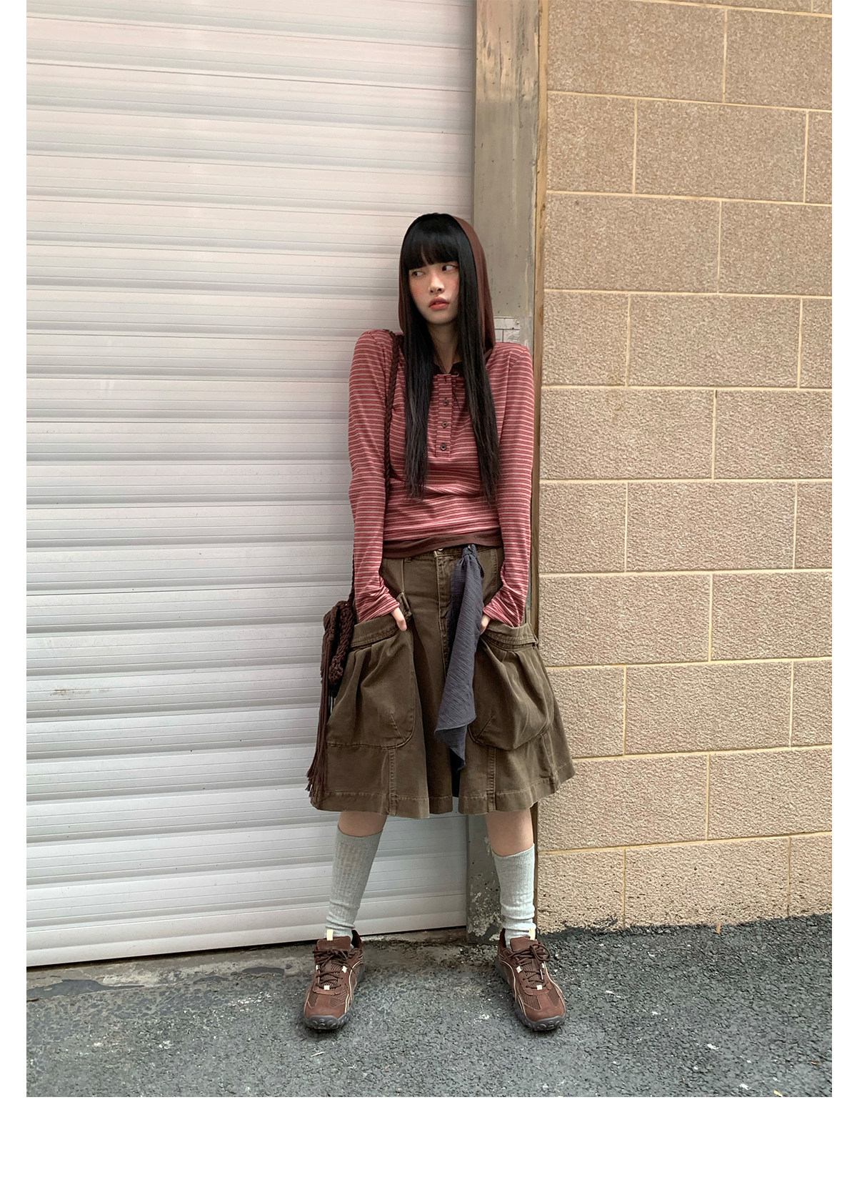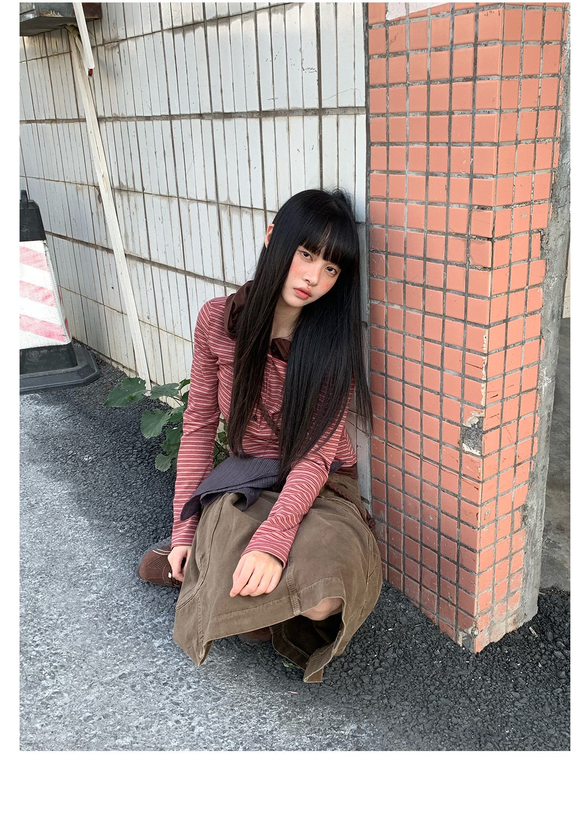 CCKOK Retro Stripe Splicing Fake Two Piece Hoodie