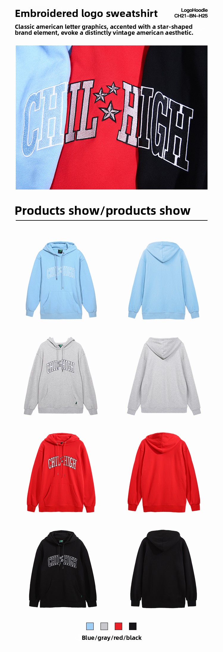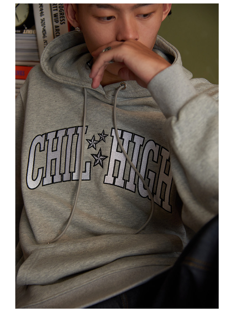 ChillHigh Loose Embroidery Hooded Pullover Sweater