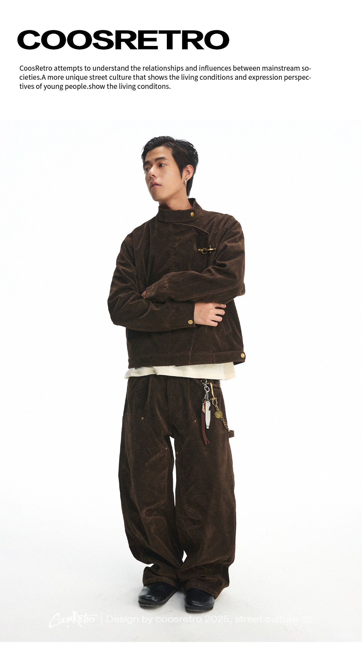CoosRetro Autumn Faux Suede Airplane Button Jacket