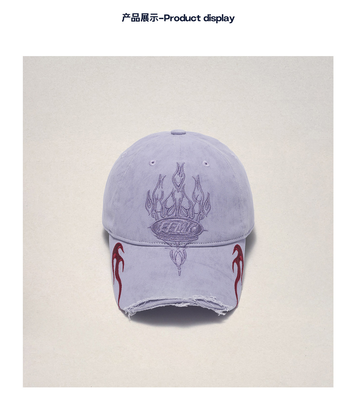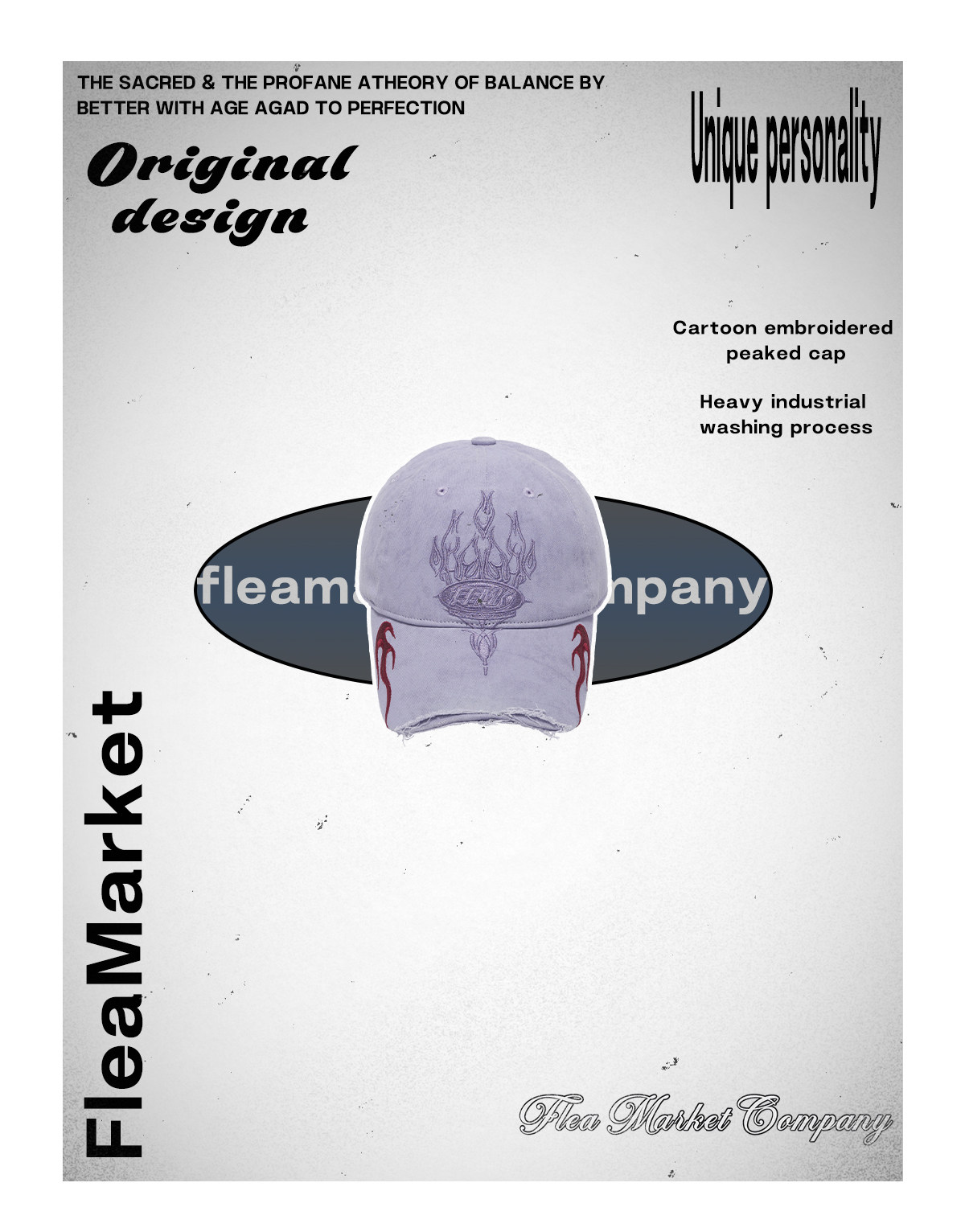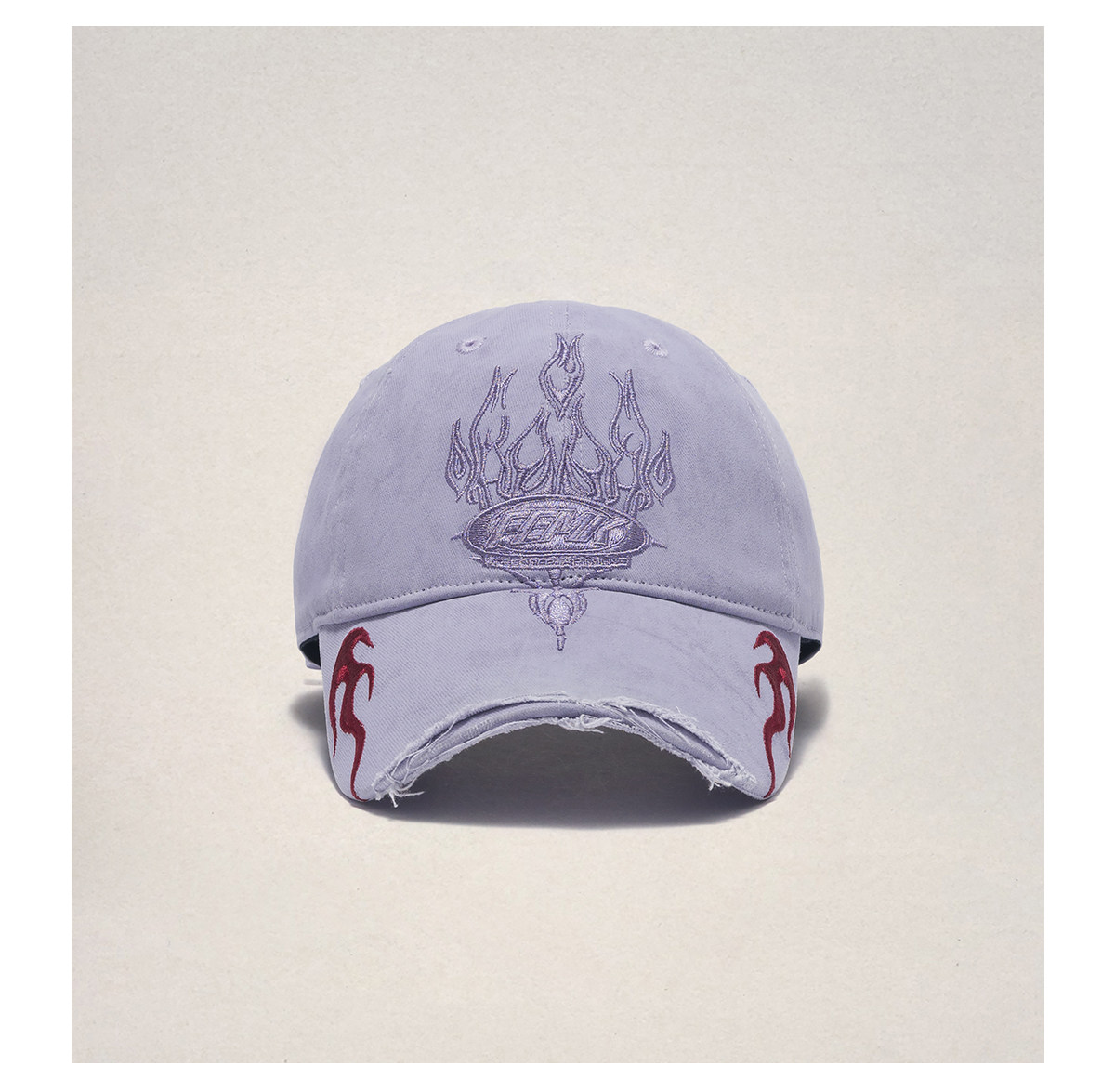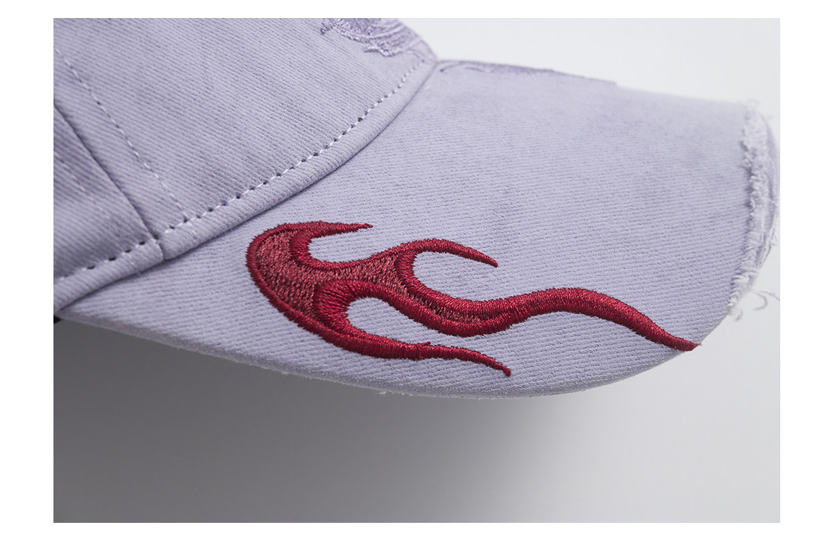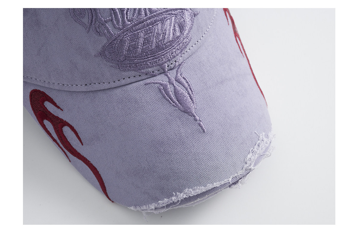 Fleamarket Retro Washed Destroyed Brim Flame Embroidered Baseball Cap