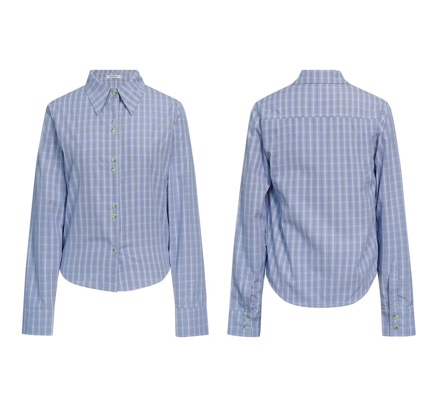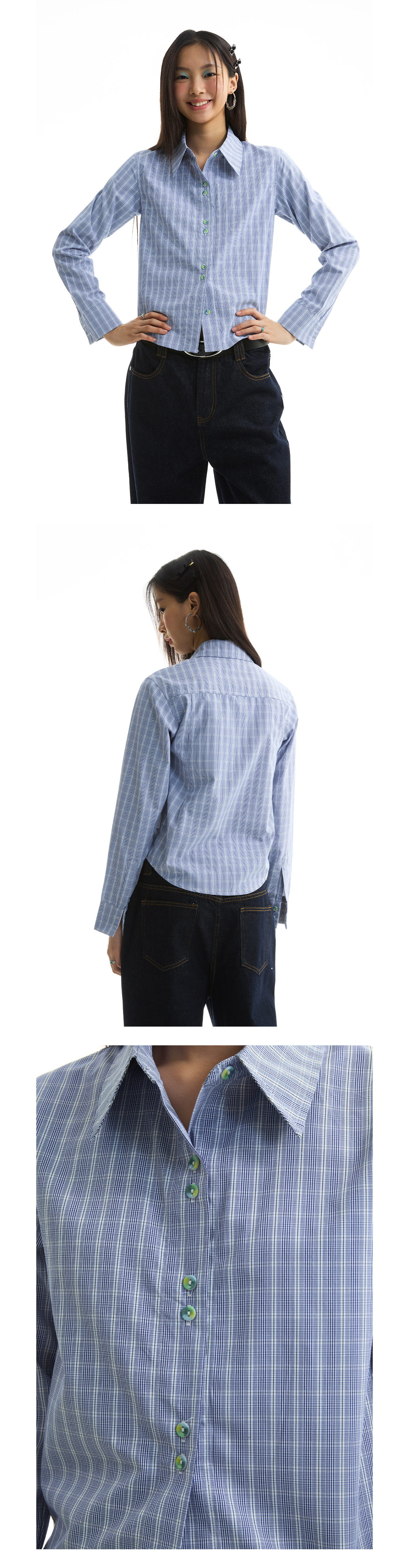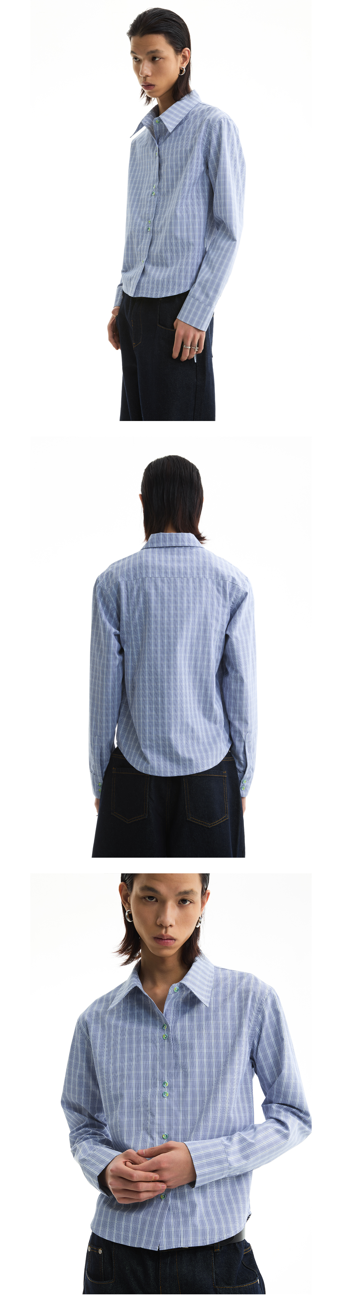 FUNKYFUN Checked Slim-fit Waist Long-sleeved Shirt