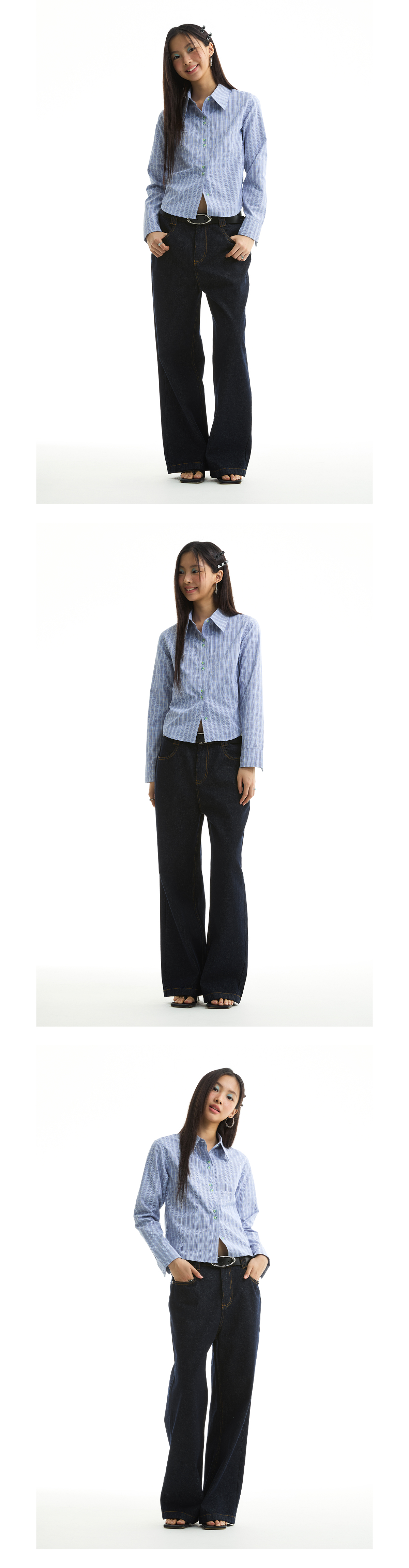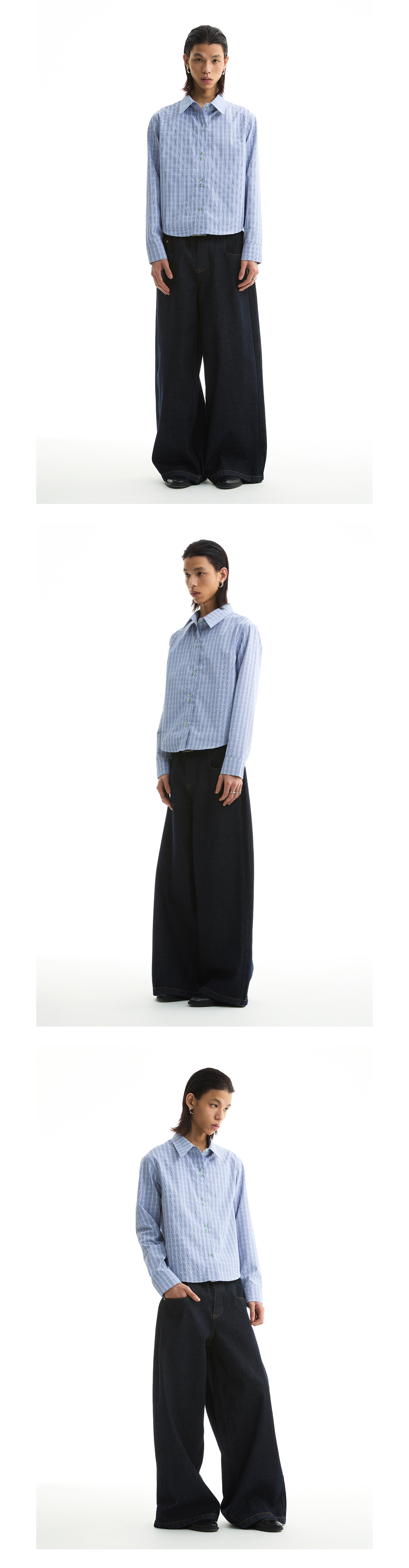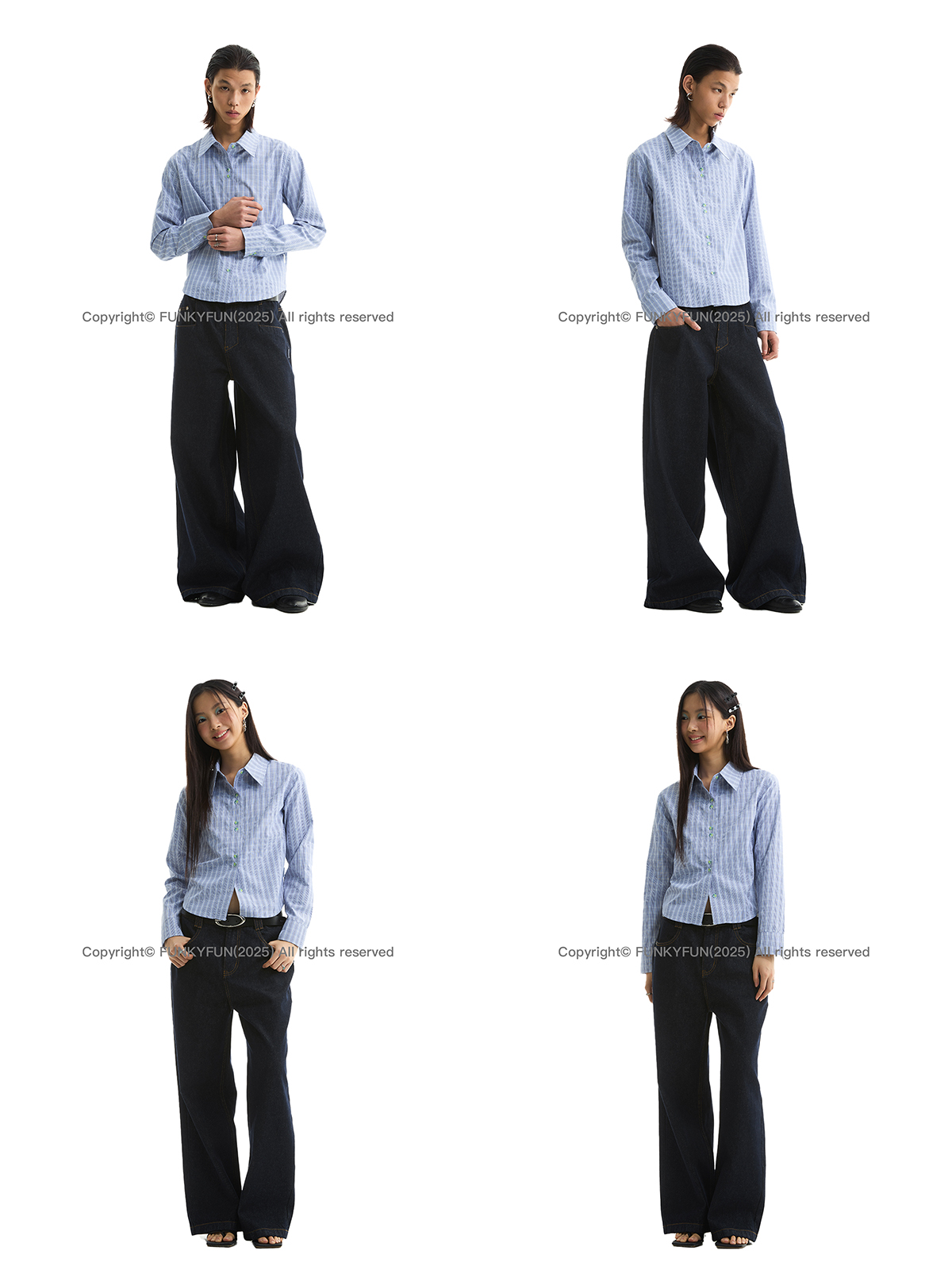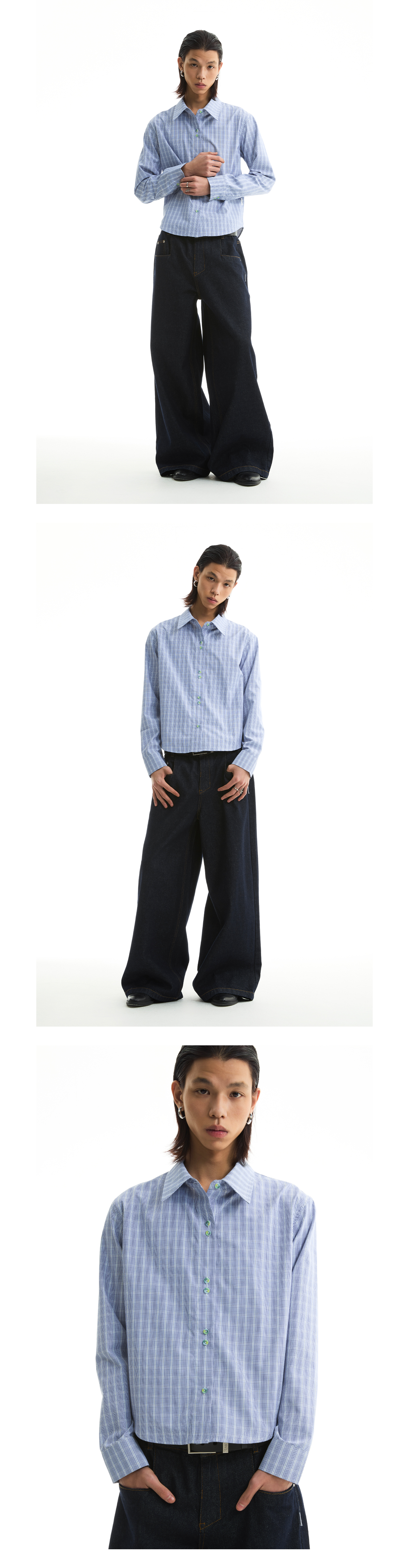 FUNKYFUN Checked Slim-fit Waist Long-sleeved Shirt