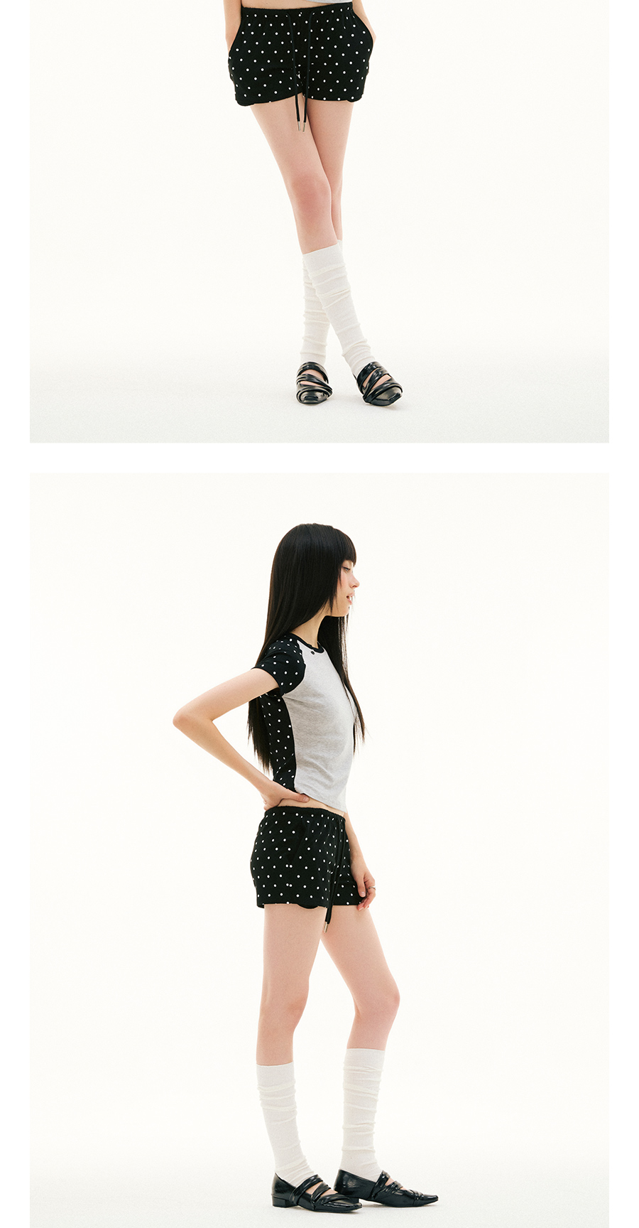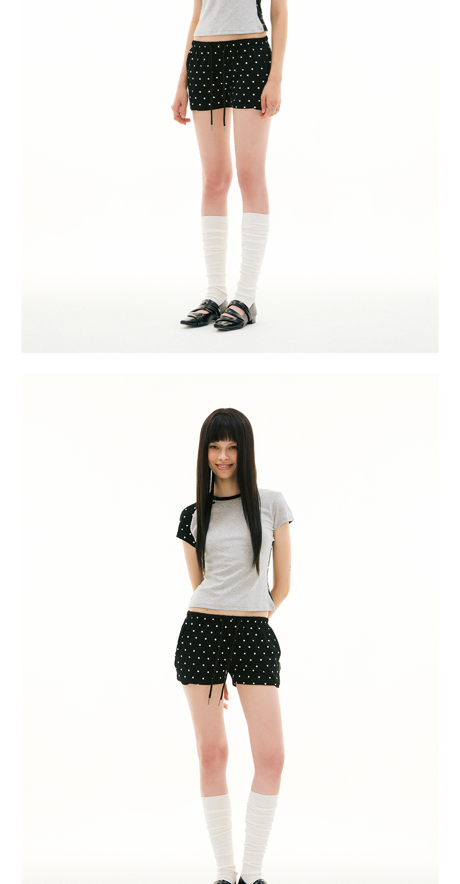 FUNKYFUN Full-printed Polka-dot Elastic Waist Three-point Casual Shorts