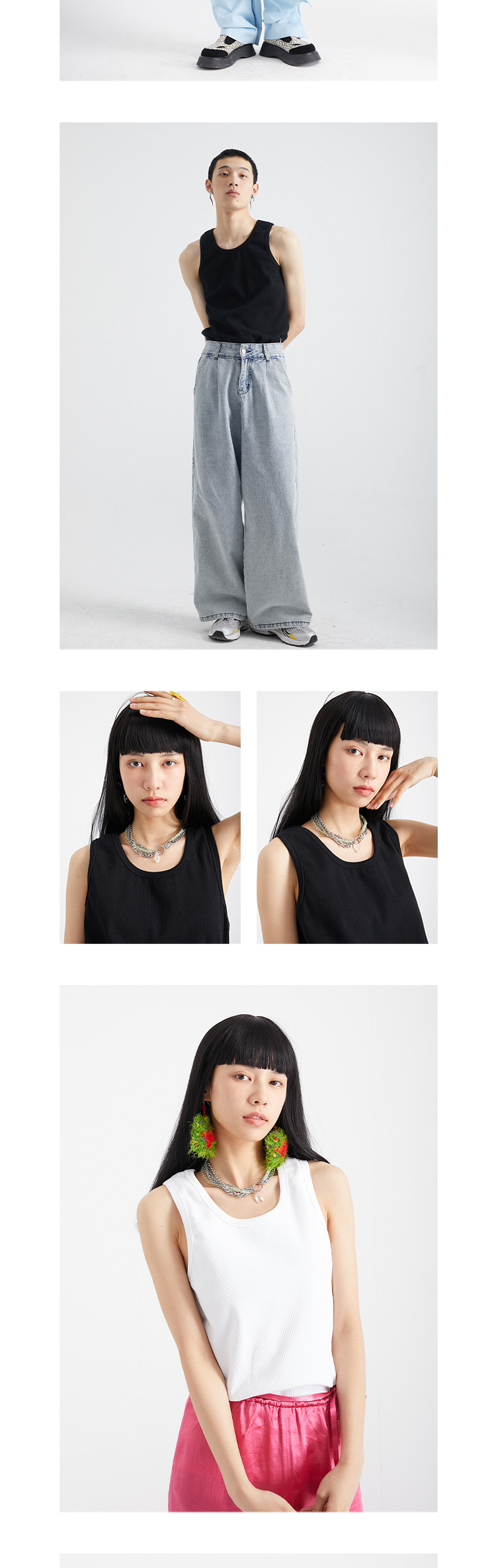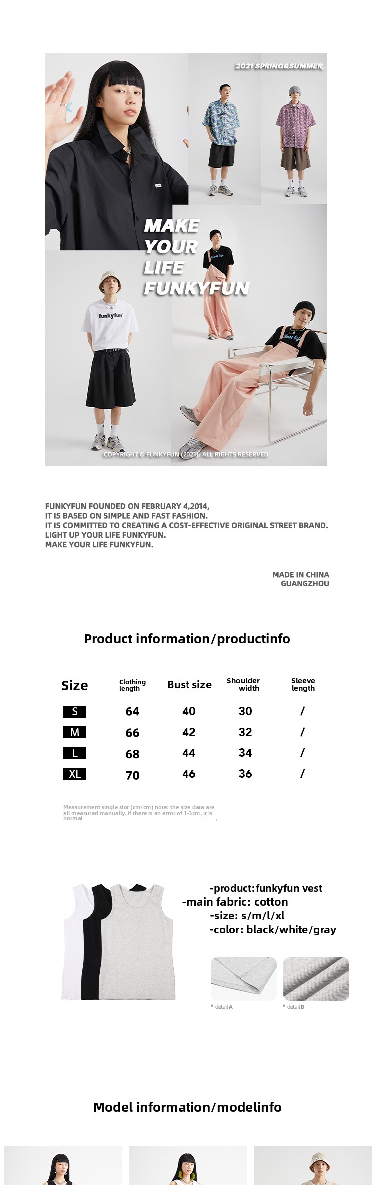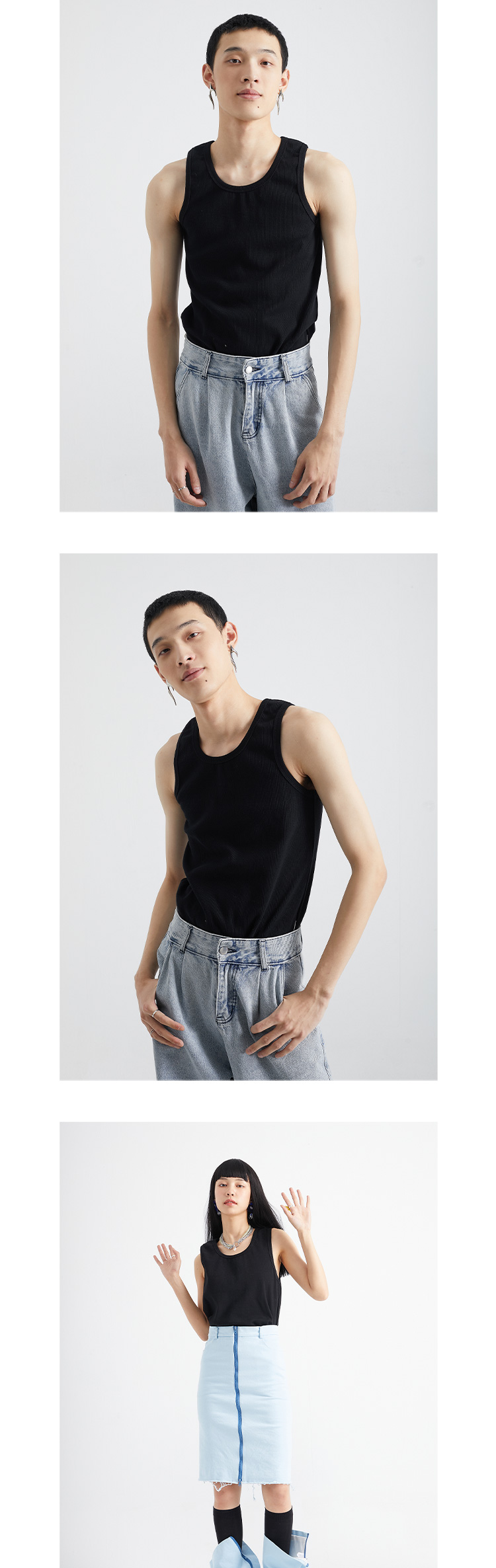 FUNKYFUN Ribbed Vest Fashionable Sleeveless Vest