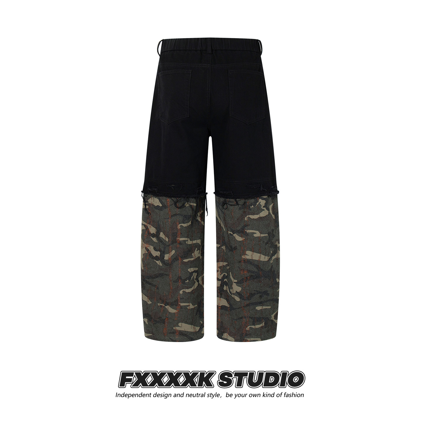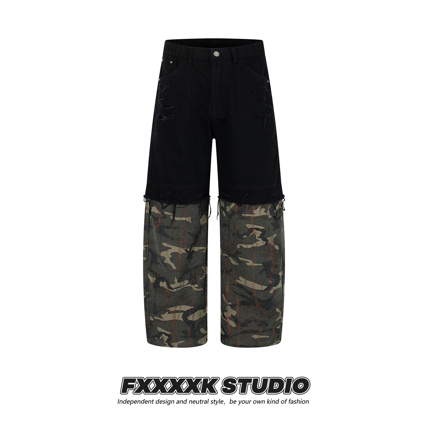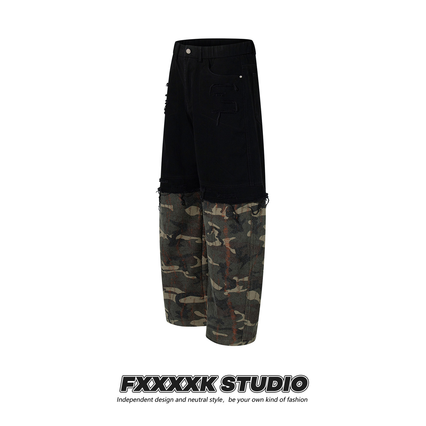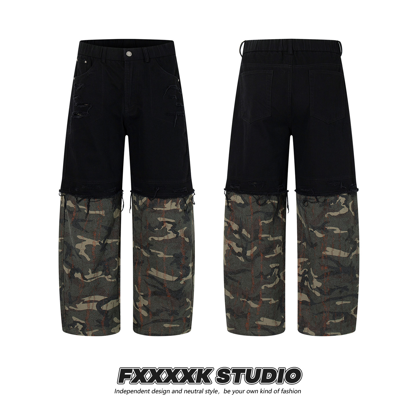 FXK Original Denim Splicing Camouflage Overalls
