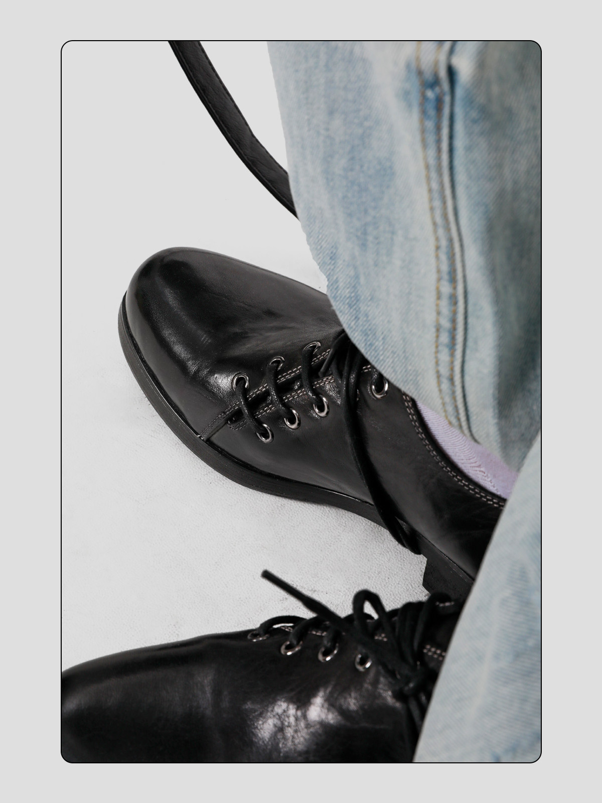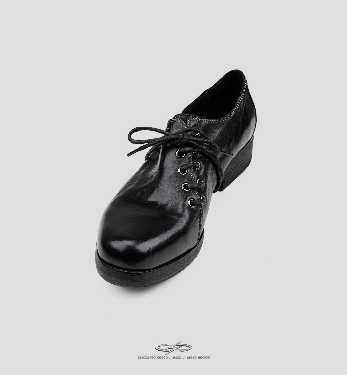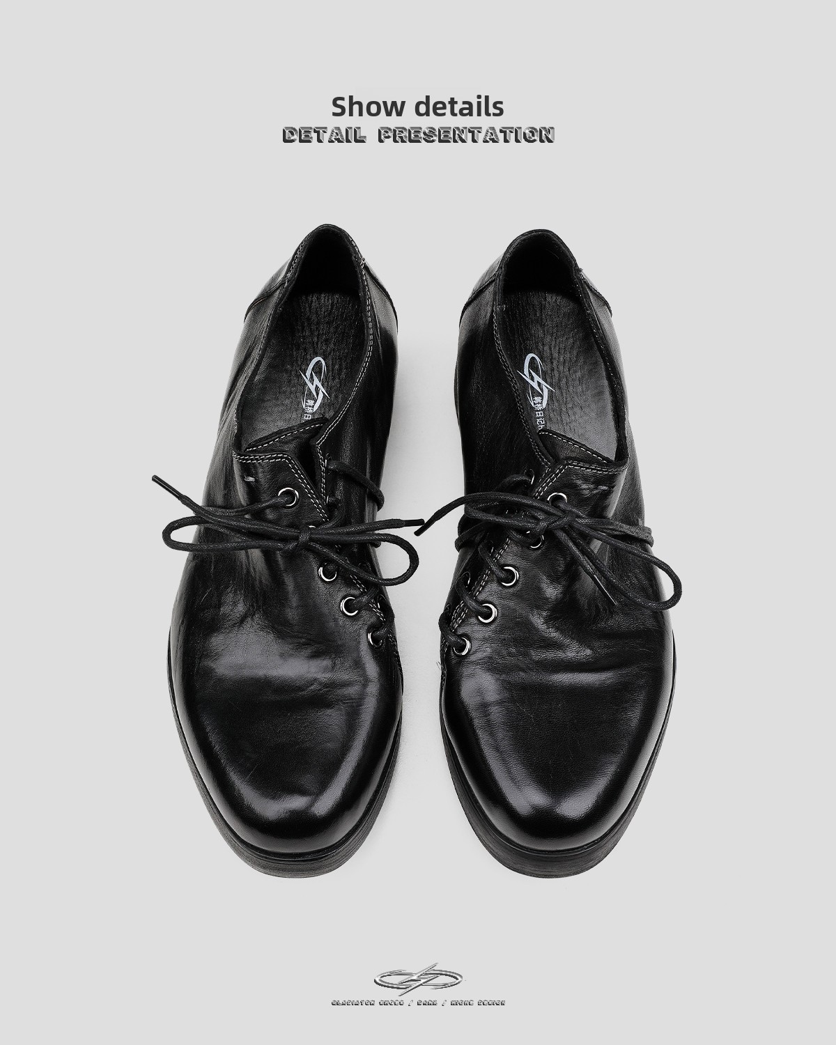 HANQIAORJI Diagonal Lace-up Horse Leather Pointed Leather Shoes