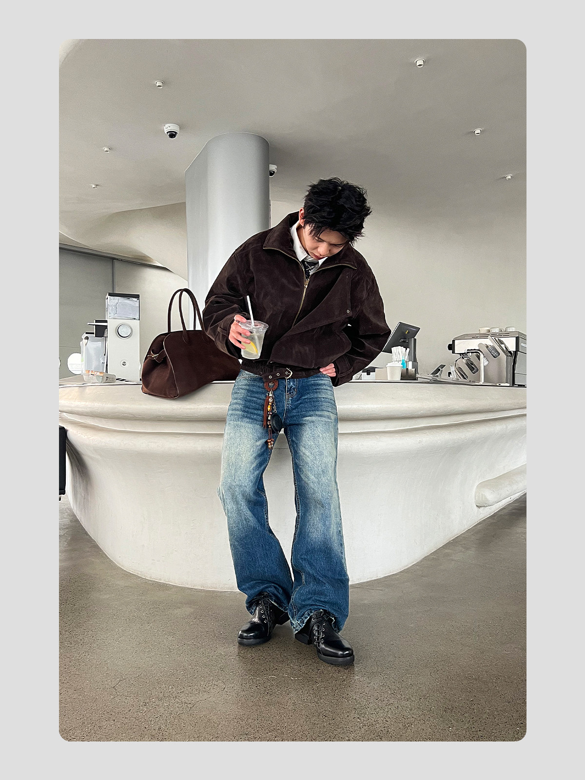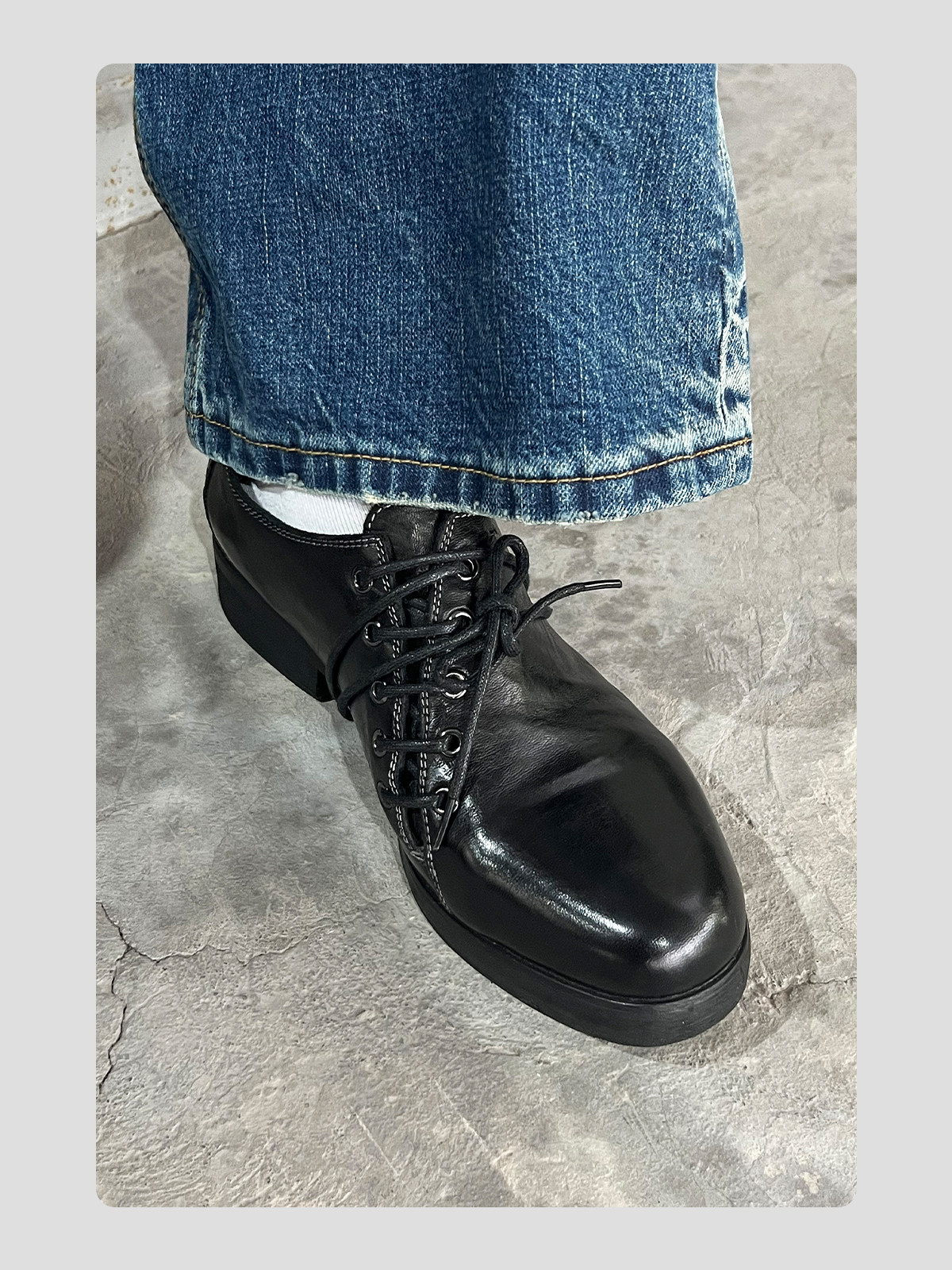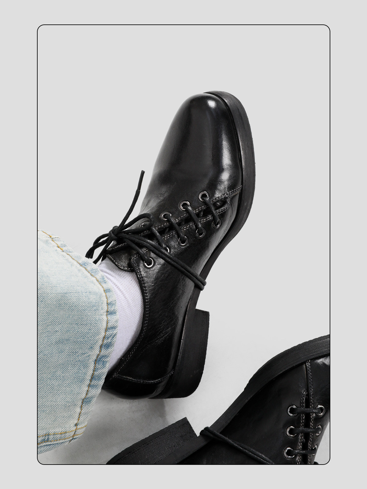 HANQIAORJI Diagonal Lace-up Horse Leather Pointed Leather Shoes