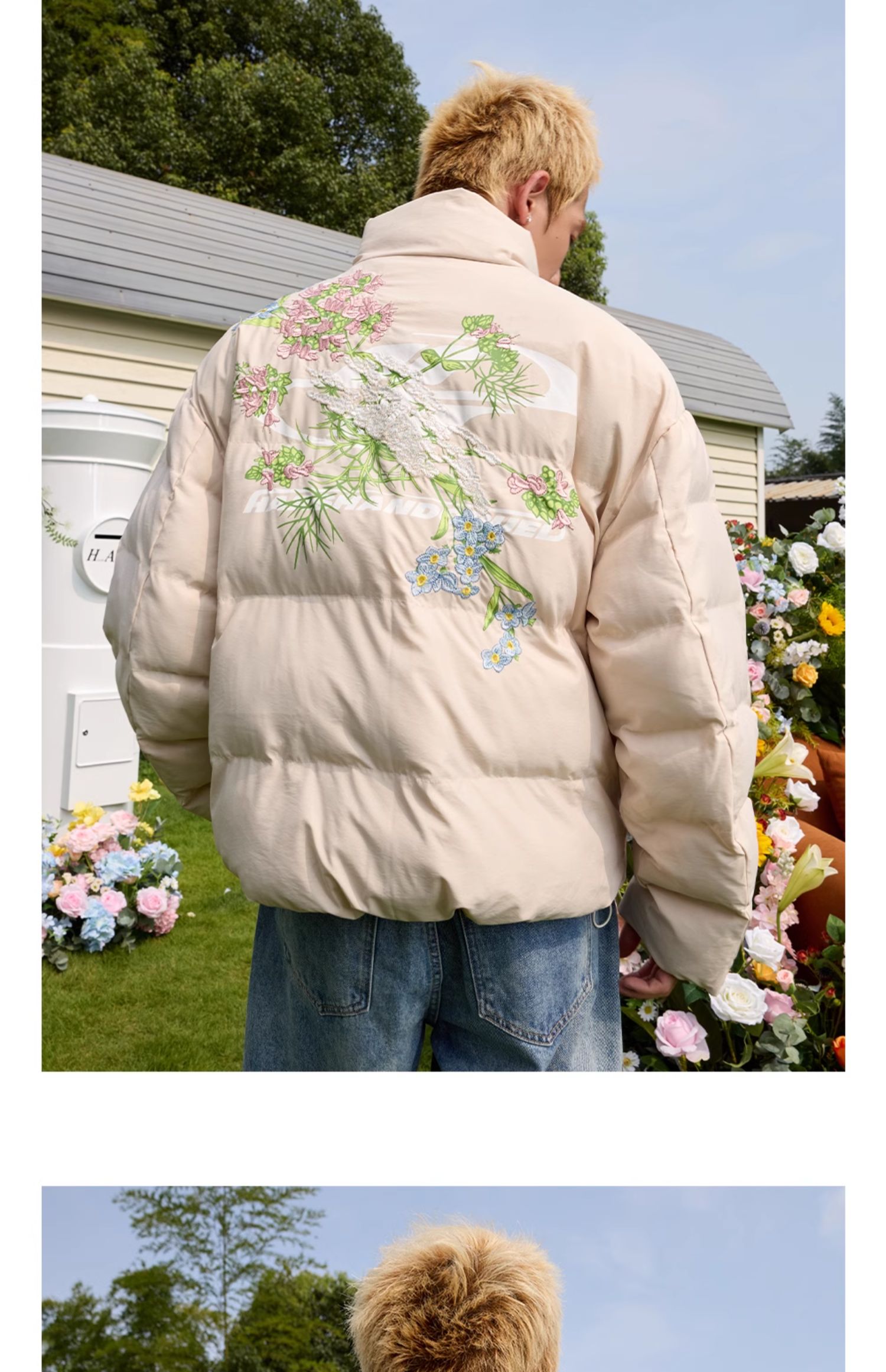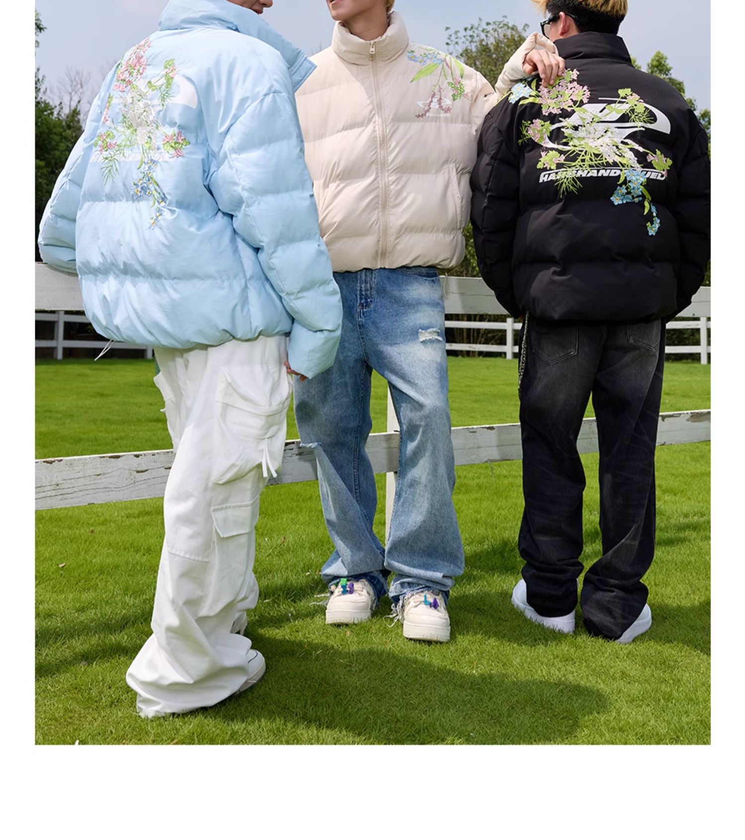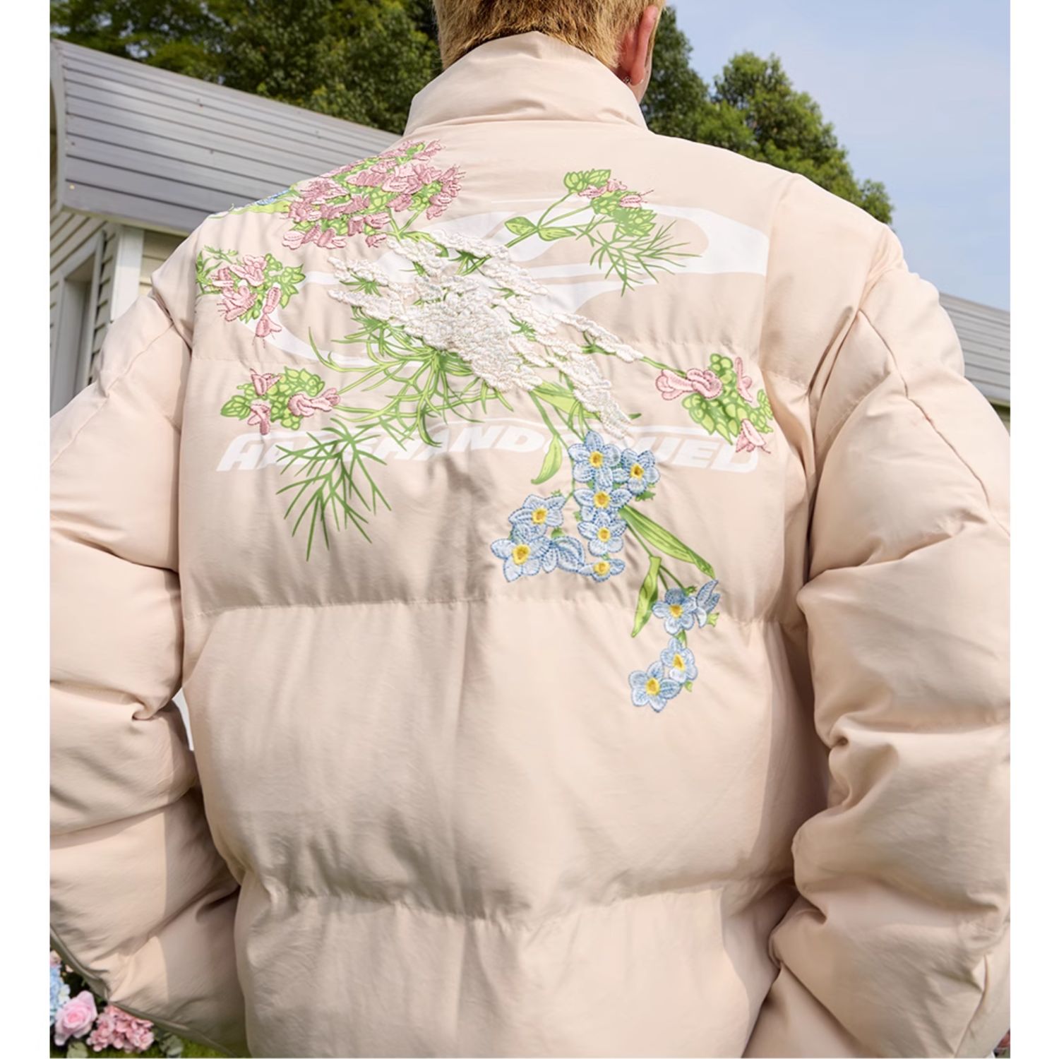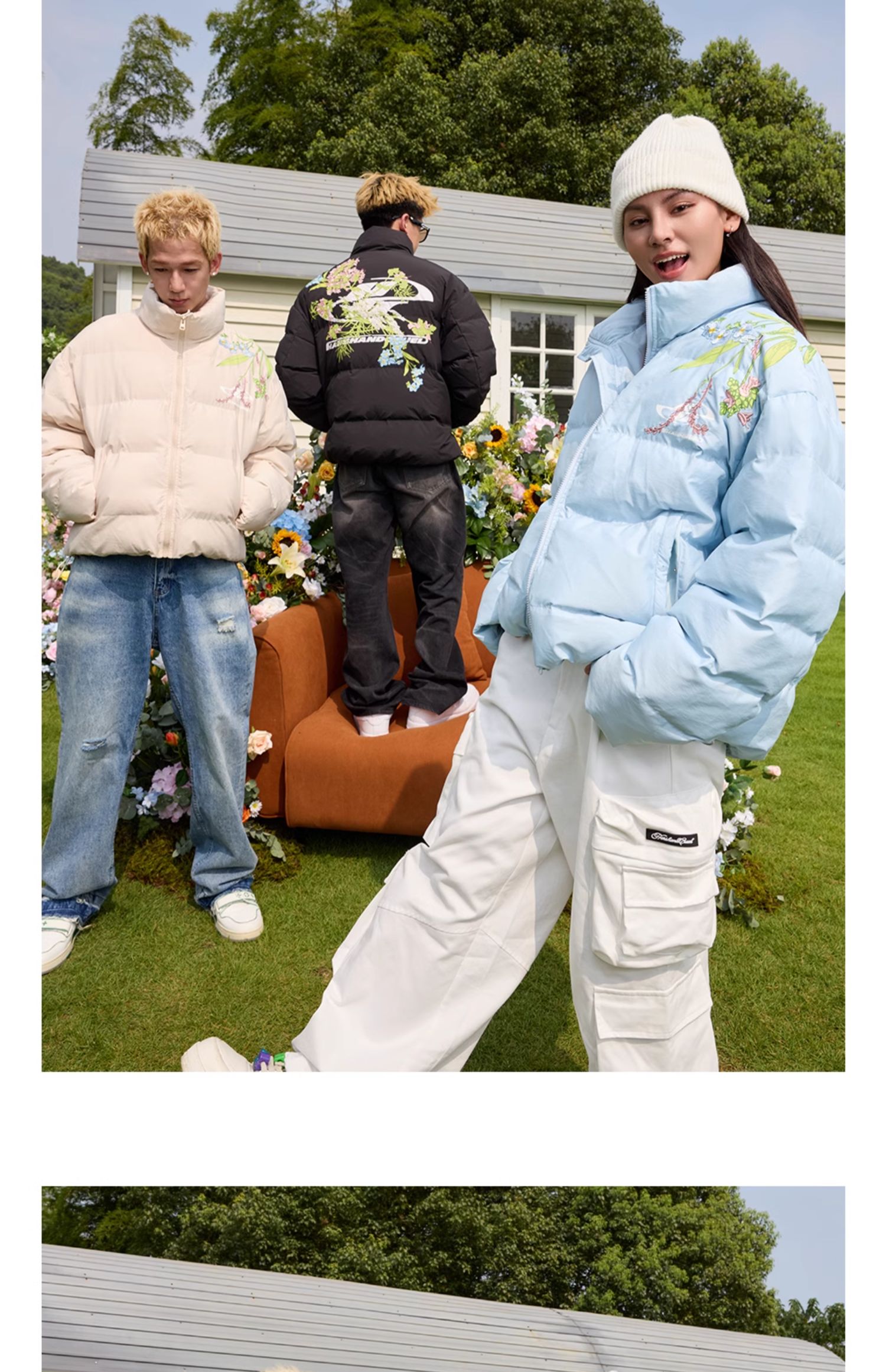 Harshandcruel Yoke Floral Embroidery Graphene Warm Bread Jacket