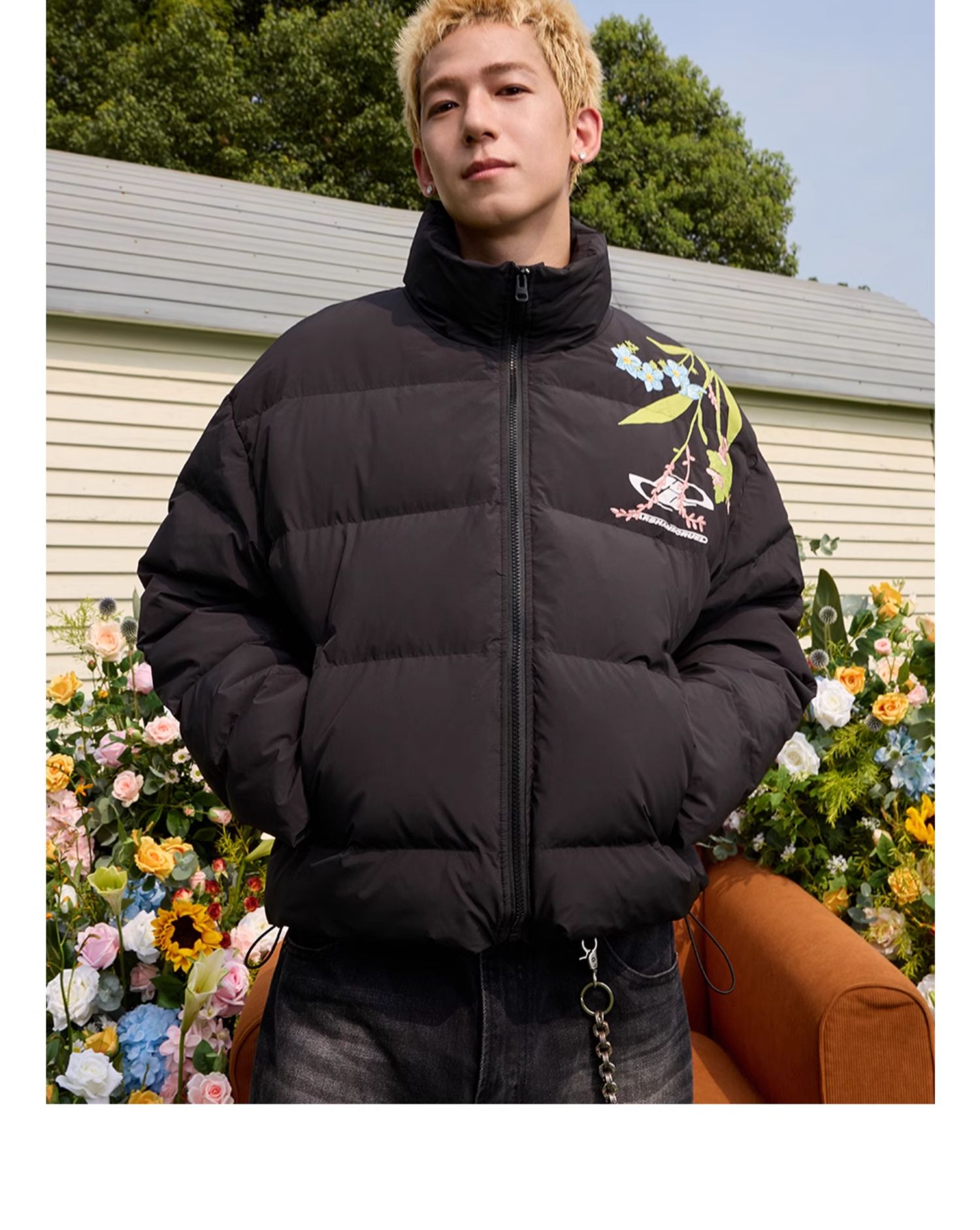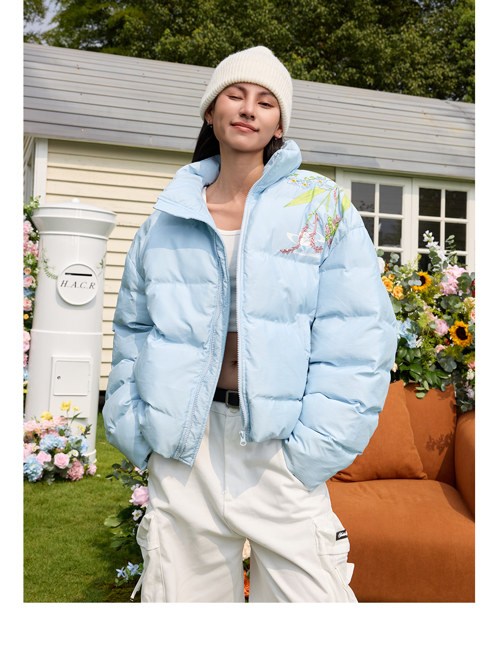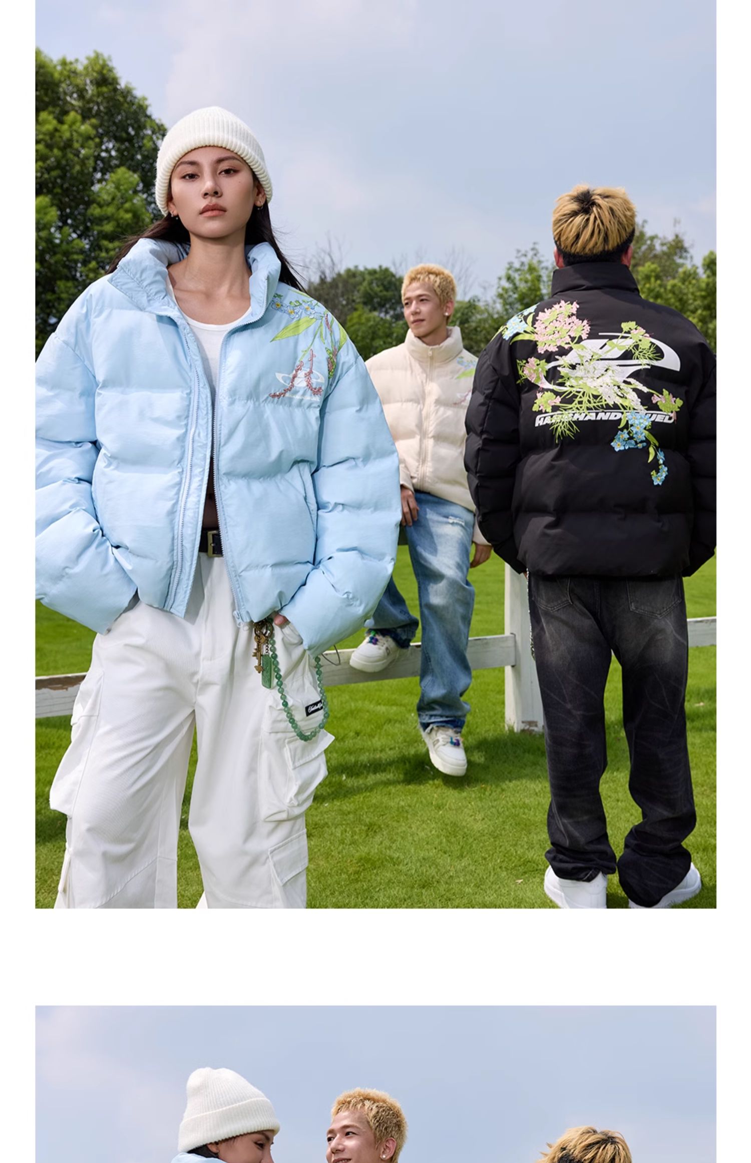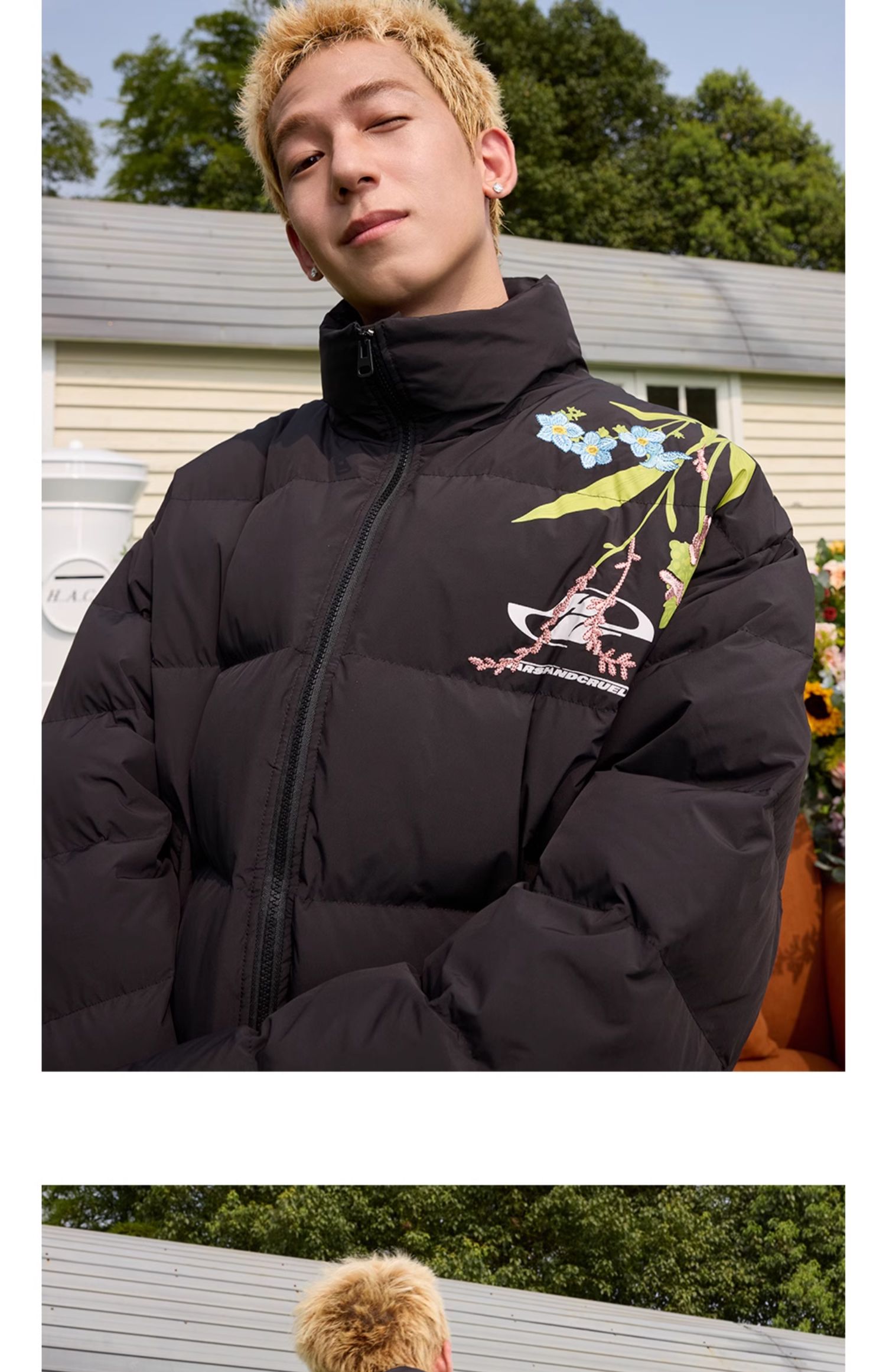 Harshandcruel Yoke Floral Embroidery Graphene Warm Bread Jacket