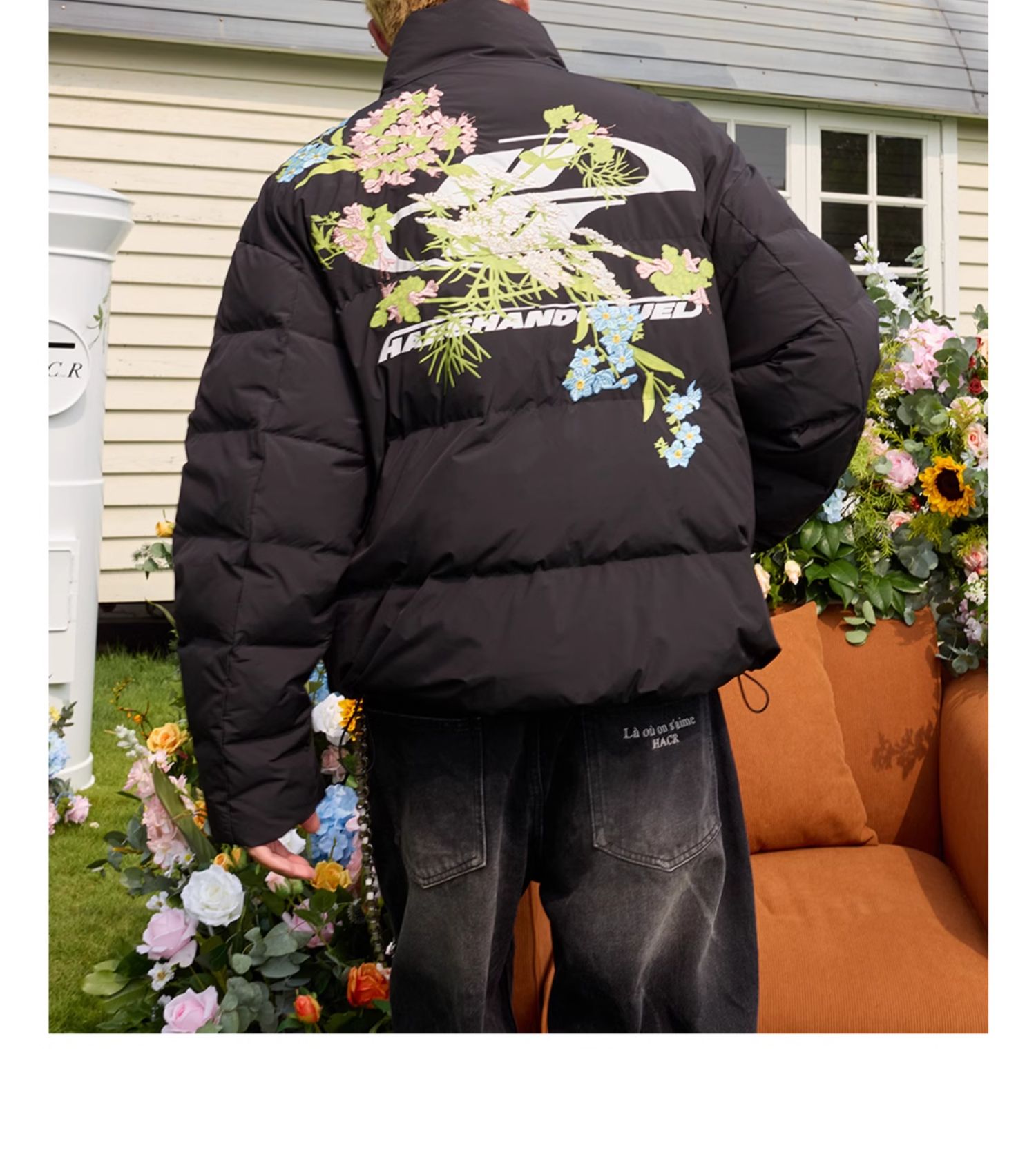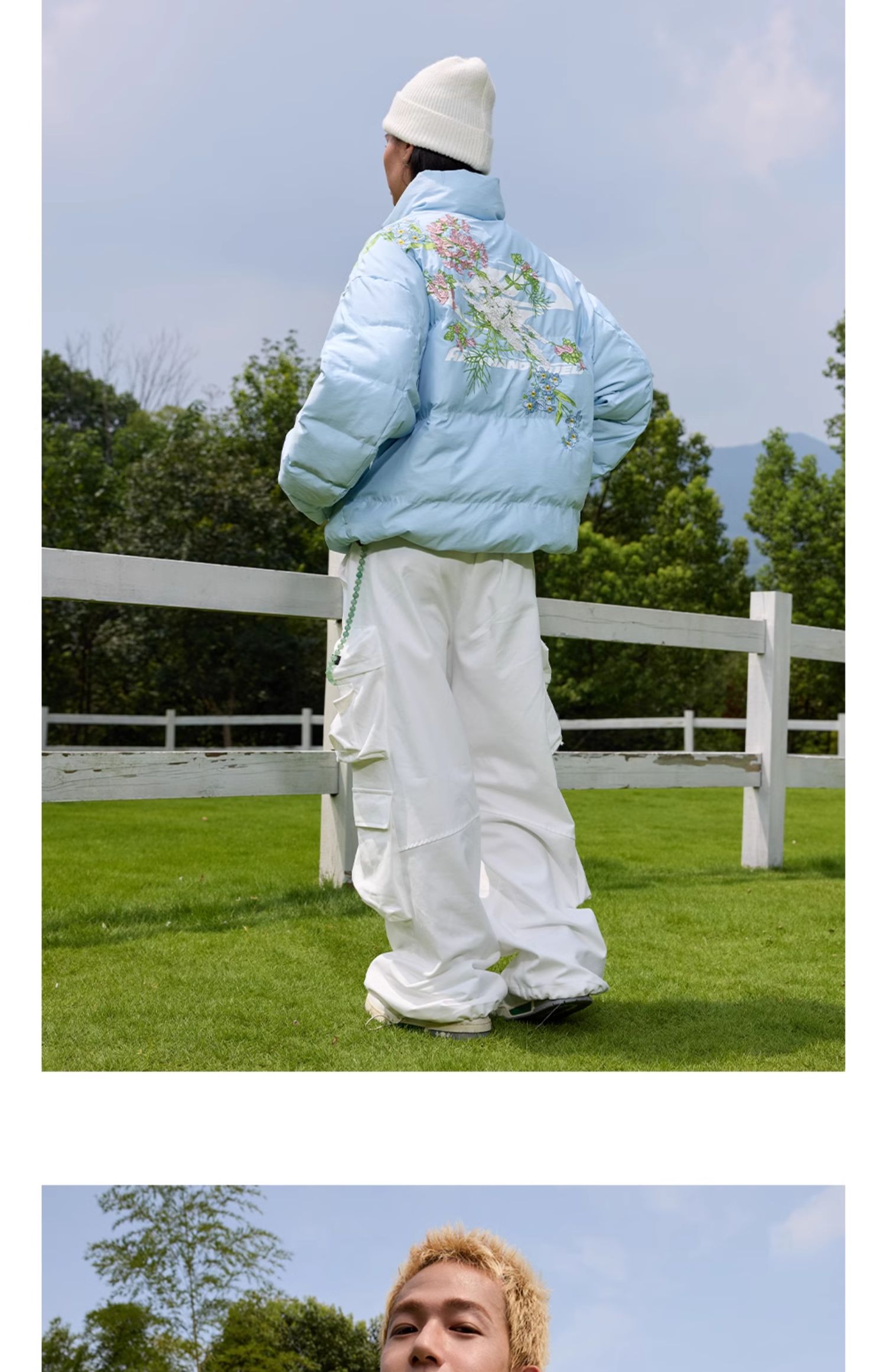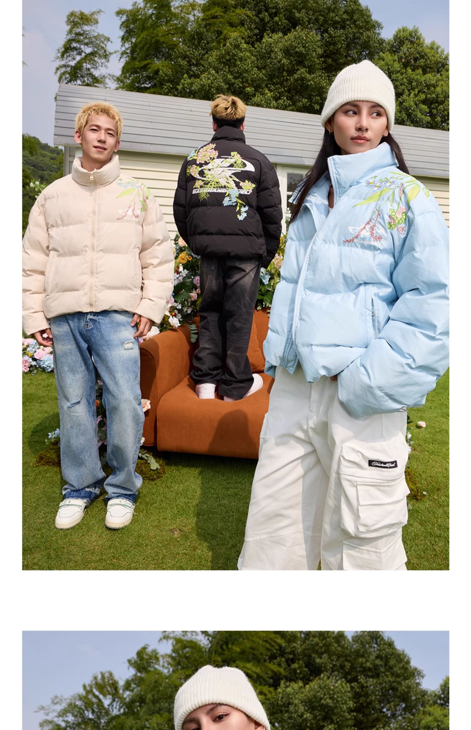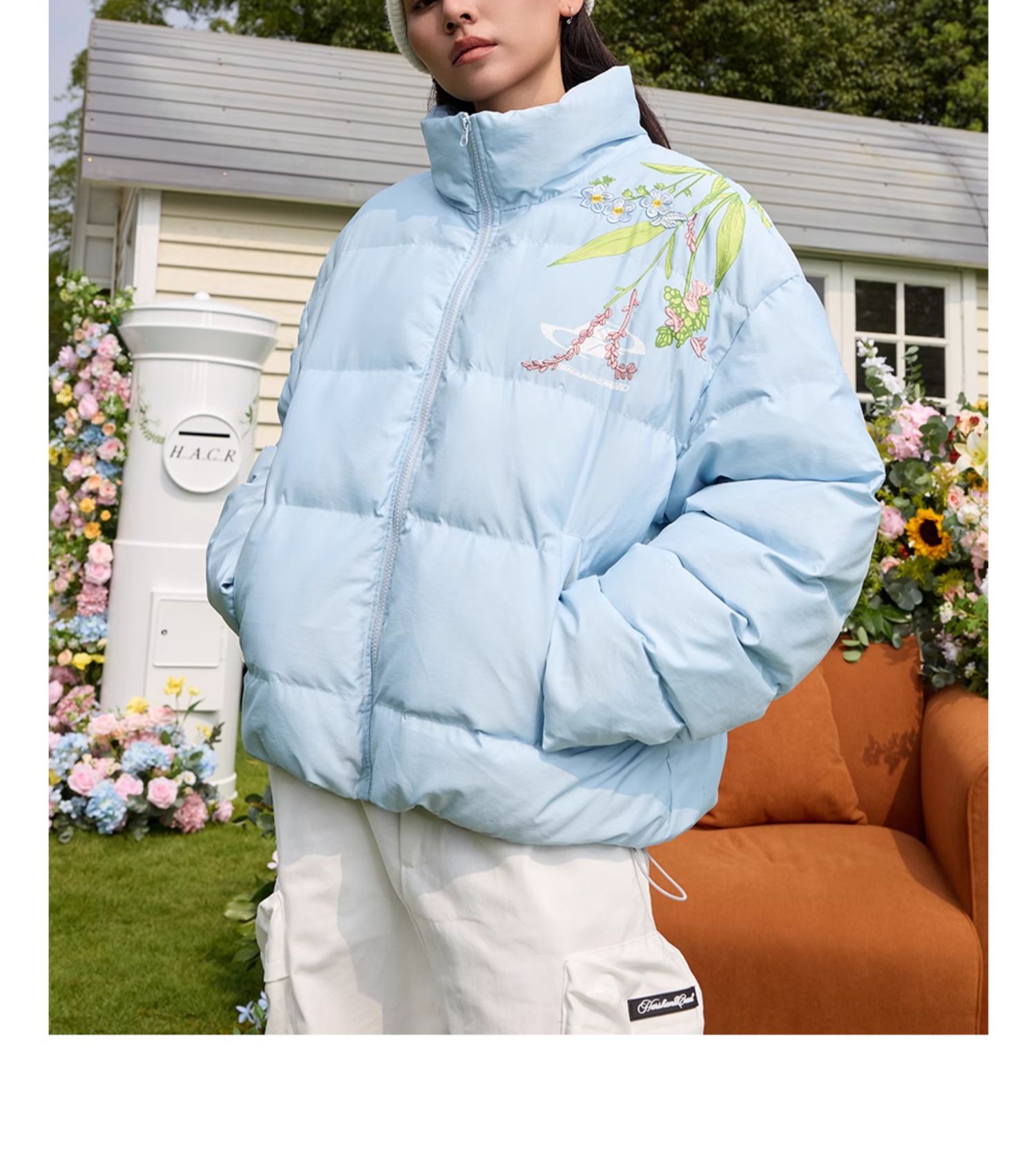 Harshandcruel Yoke Floral Embroidery Graphene Warm Bread Jacket