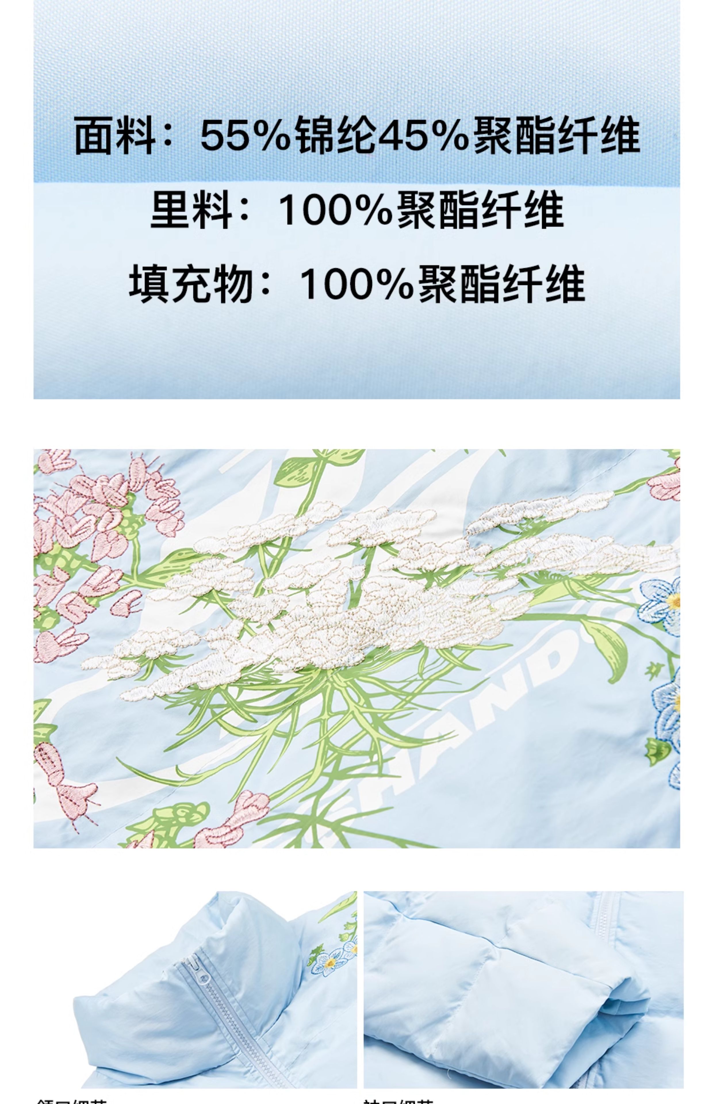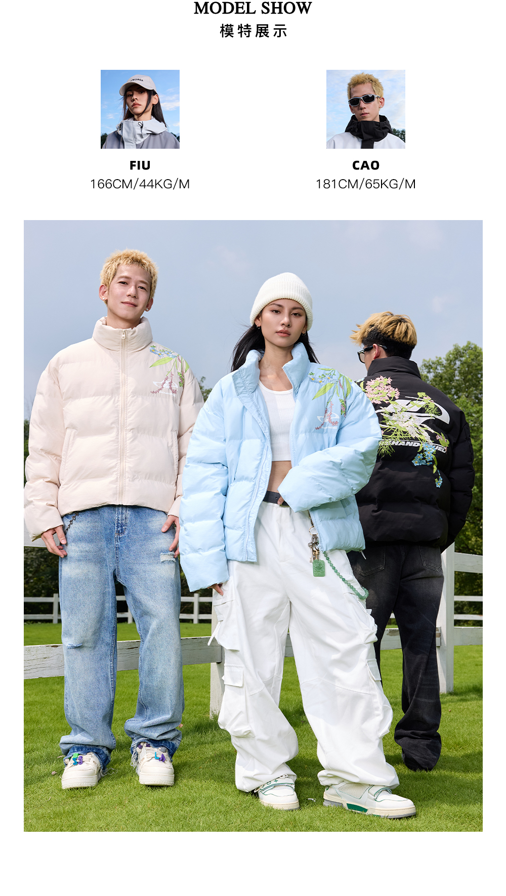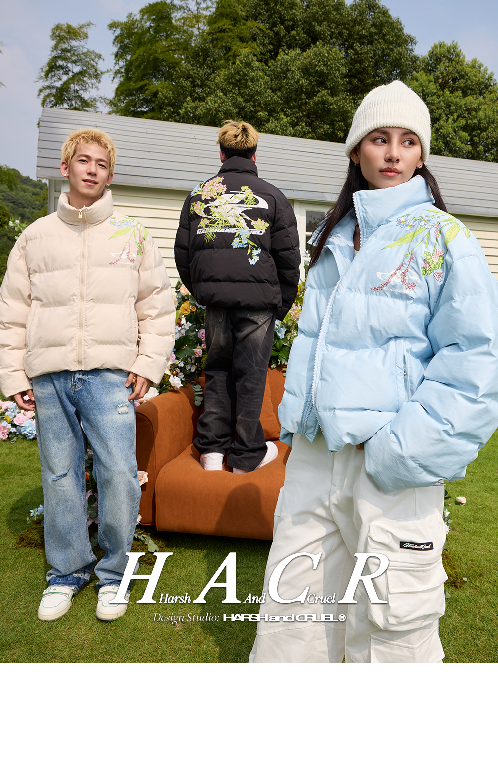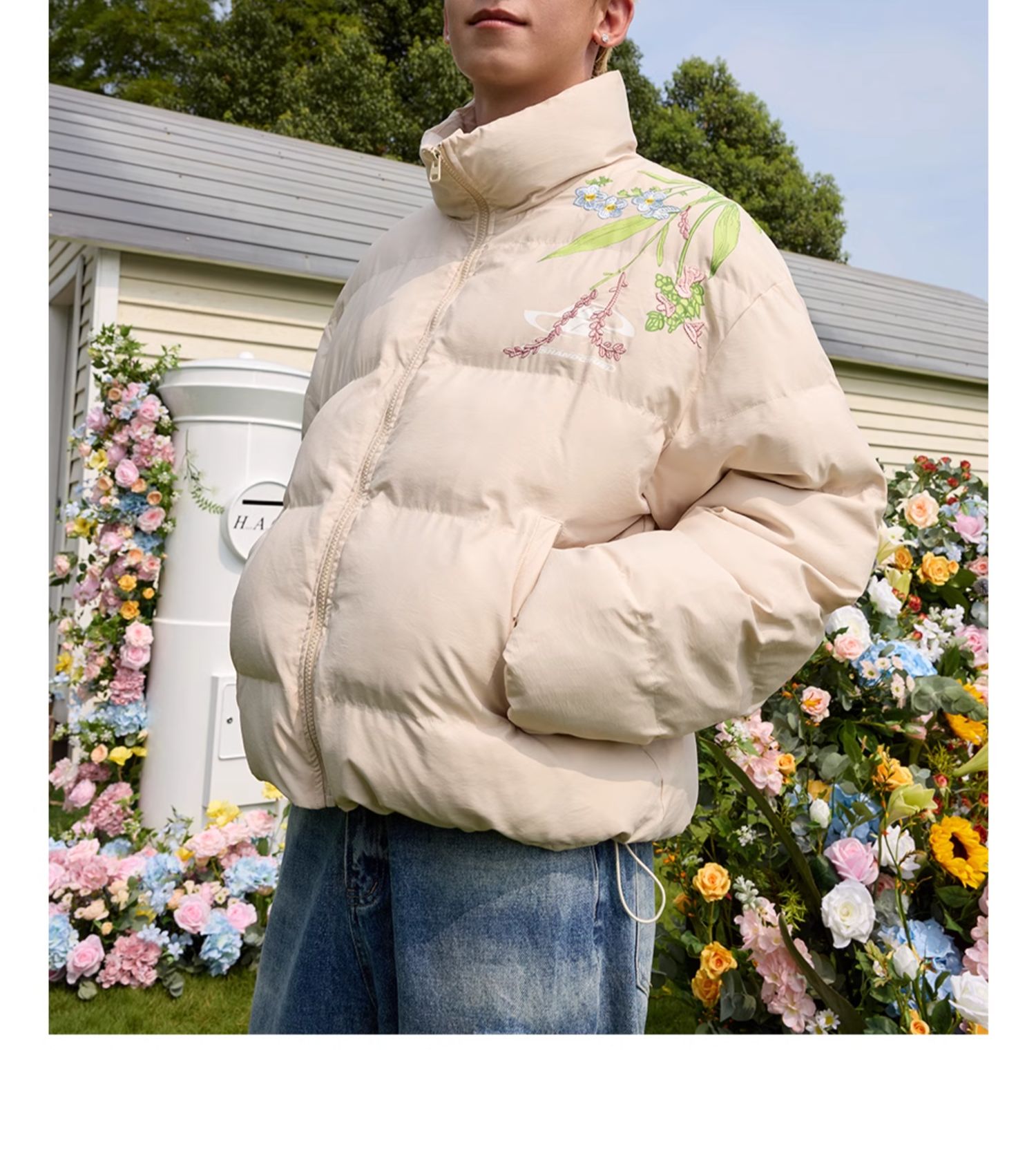 Harshandcruel Yoke Floral Embroidery Graphene Warm Bread Jacket
