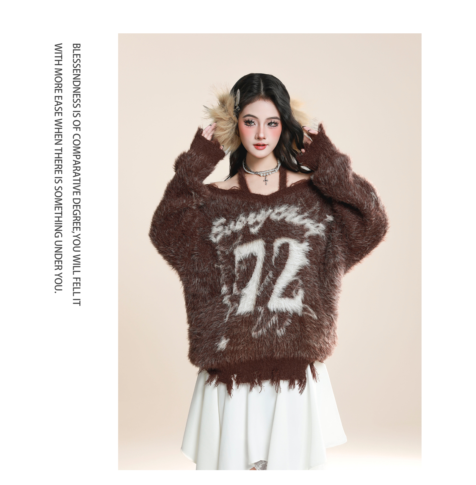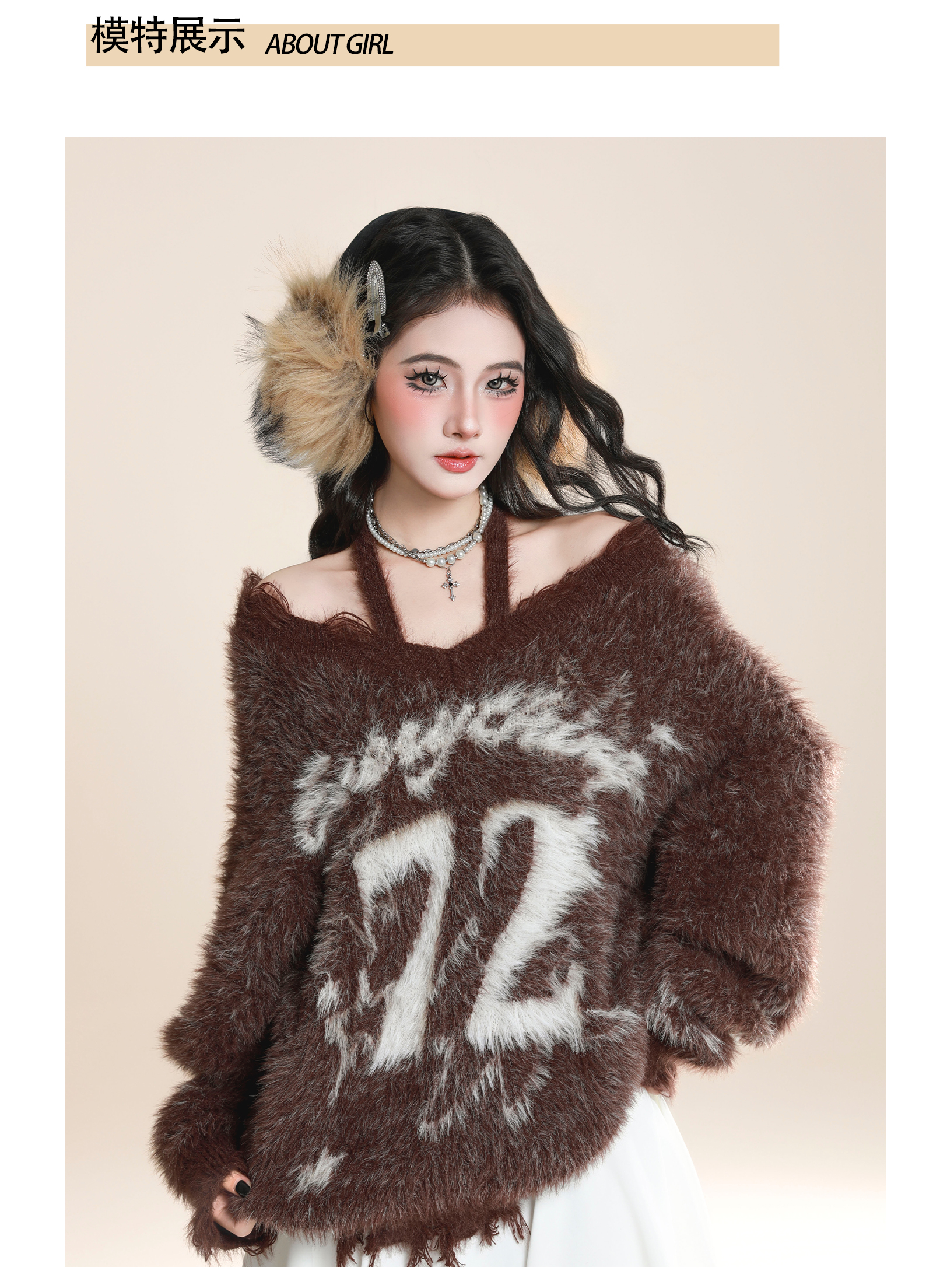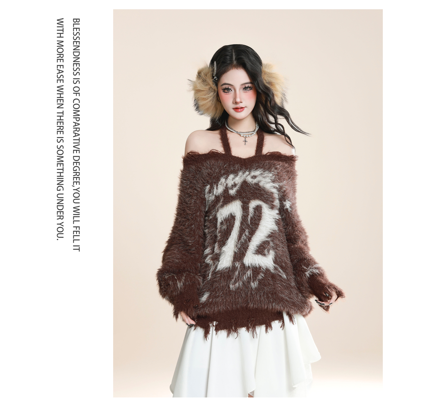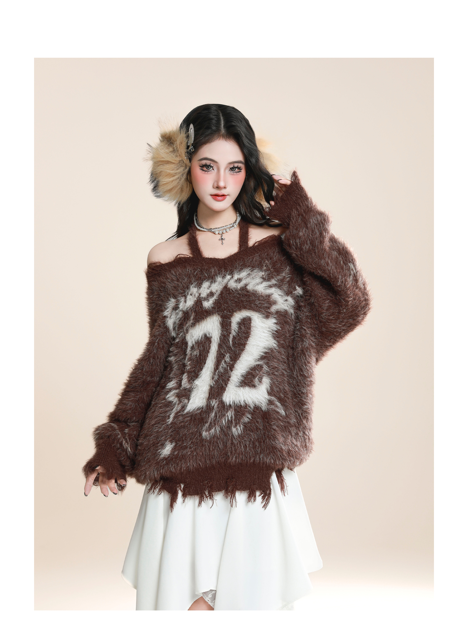 HTYM Halter One-Shoulder Mohair Sweater for Women