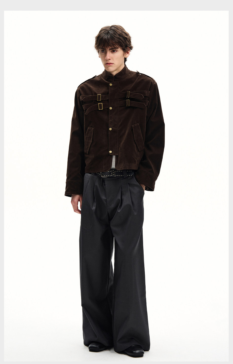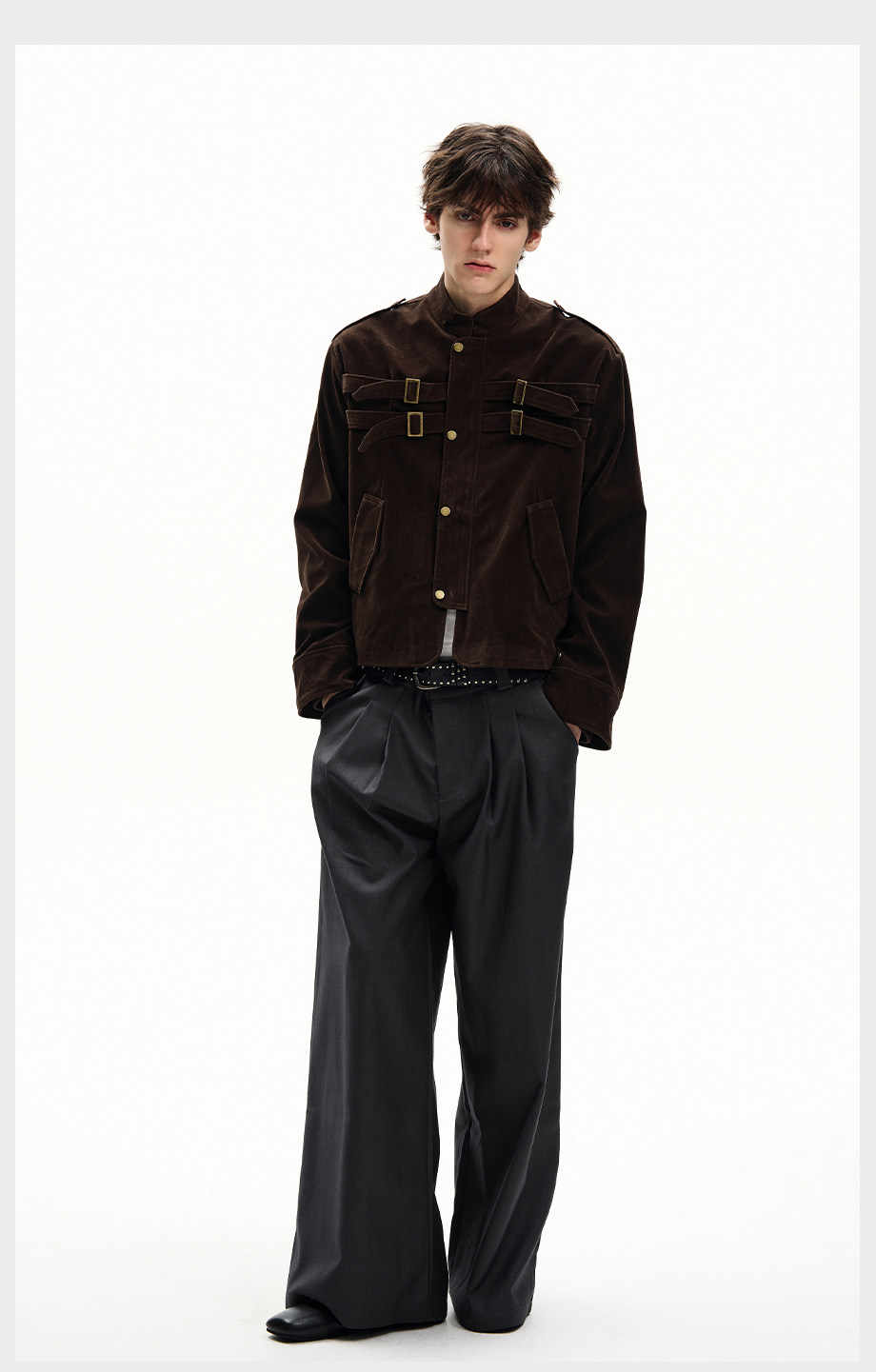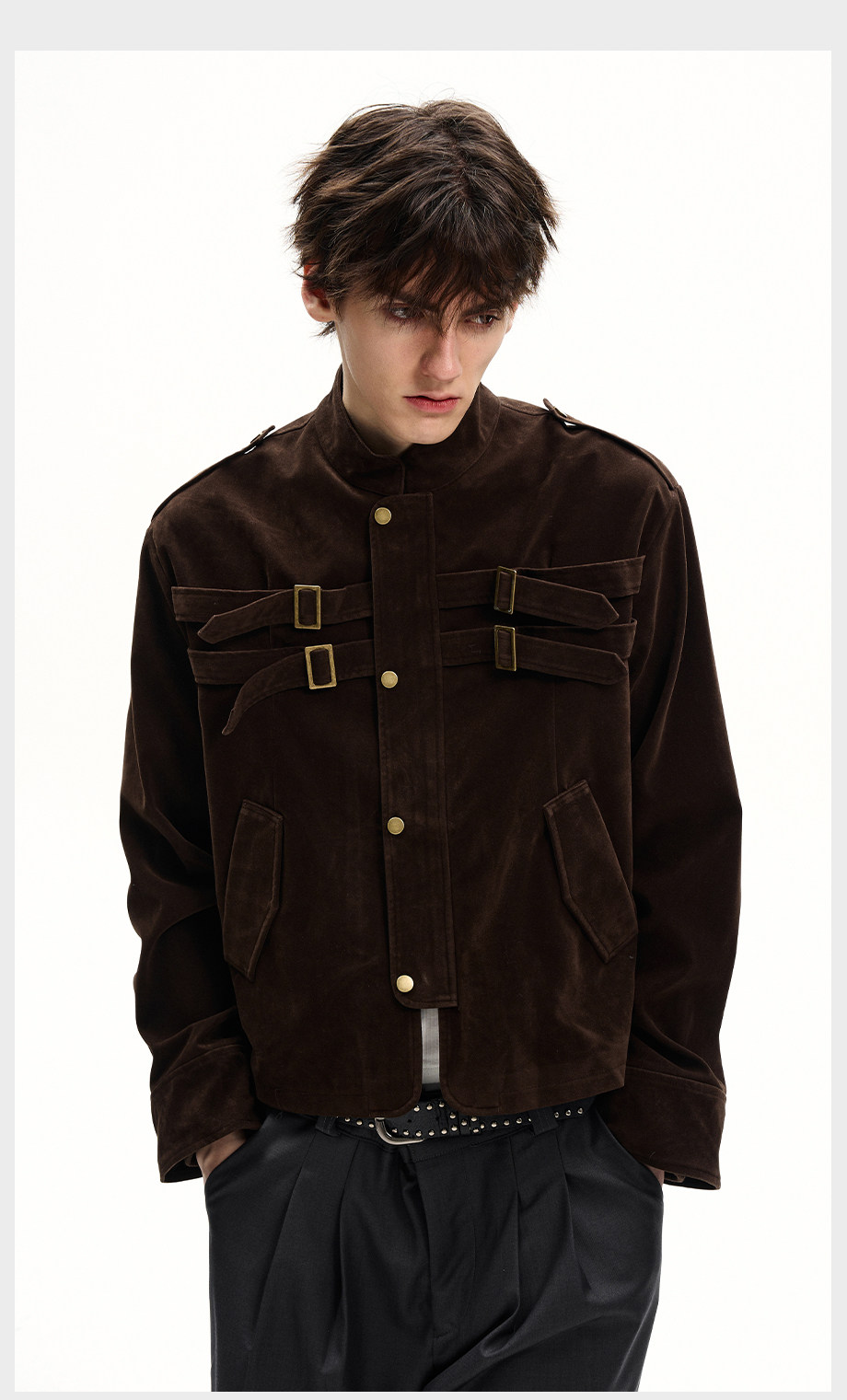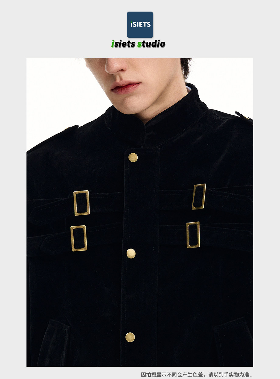 ISIETS Harrington Stand Collar Suede Work Jacket