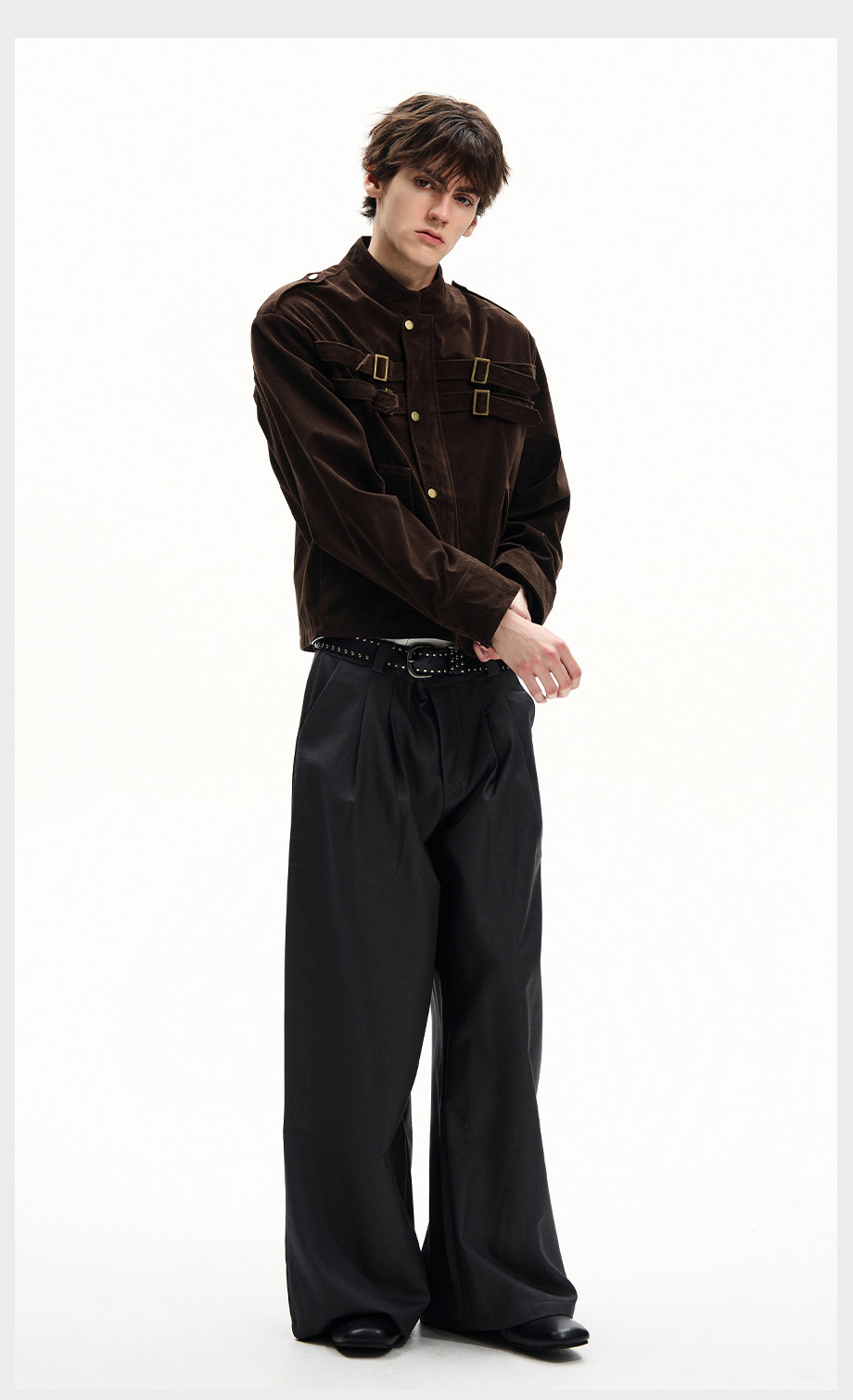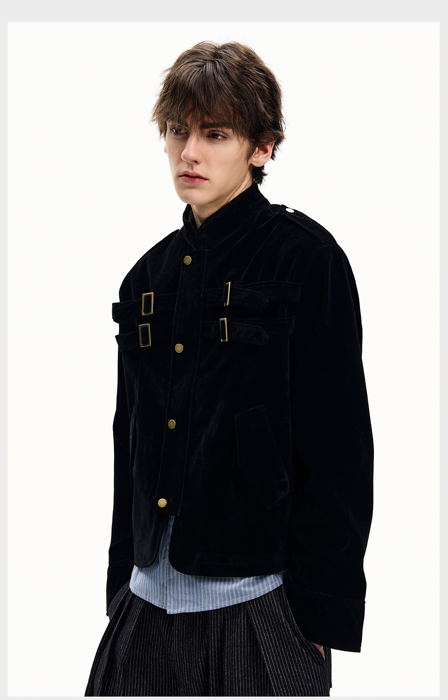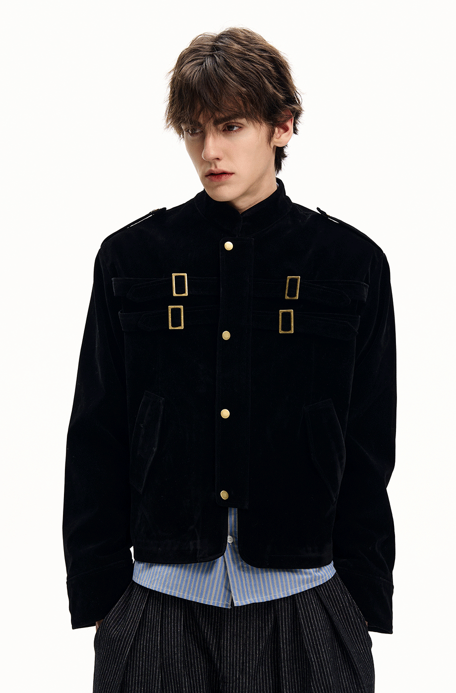 ISIETS Harrington Stand Collar Suede Work Jacket