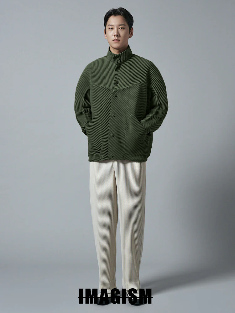 IMAGISM Japanese Non Miyake Pleated Short Stand Collar Jacket JC110