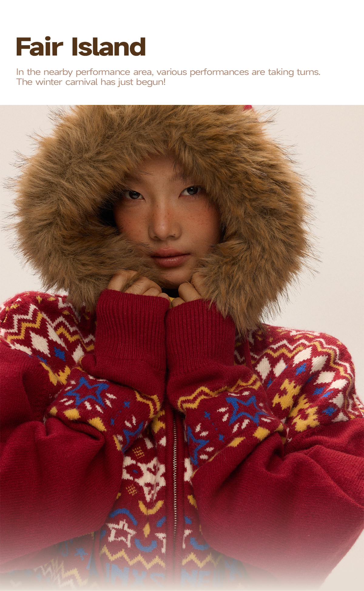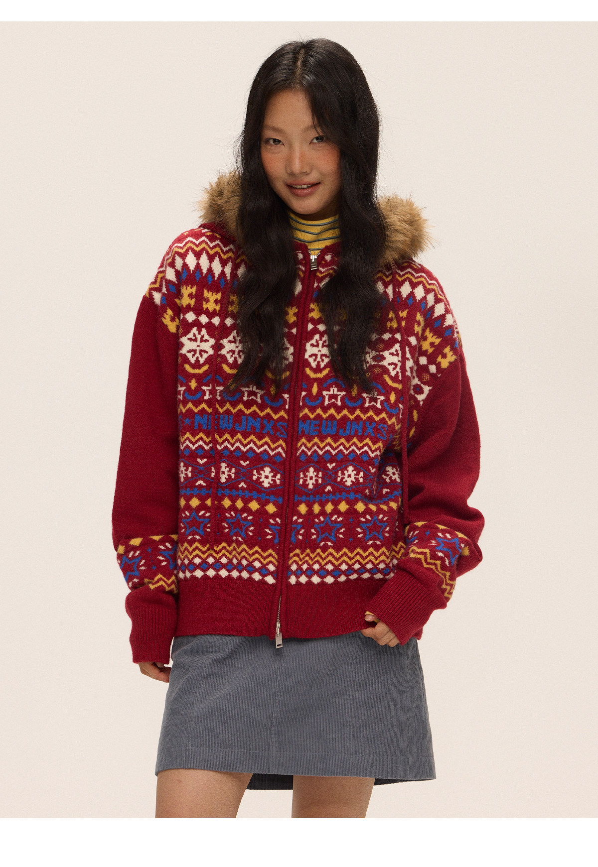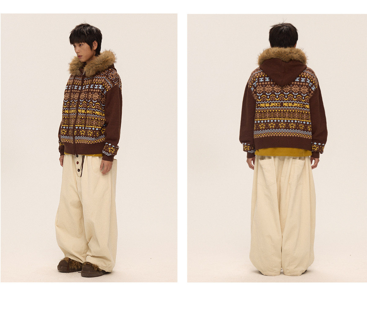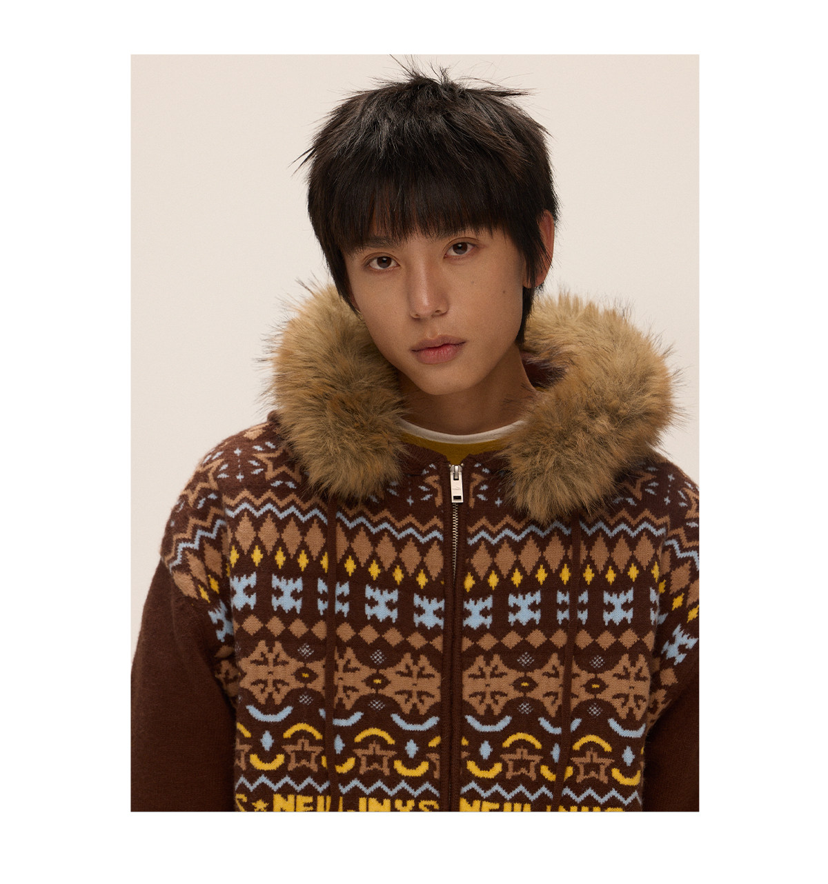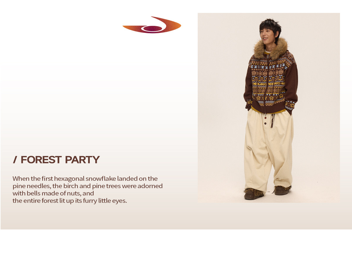 Mr. Jiangnan & andall Fair Isle Detachable Fur Collar Knit Cardigan