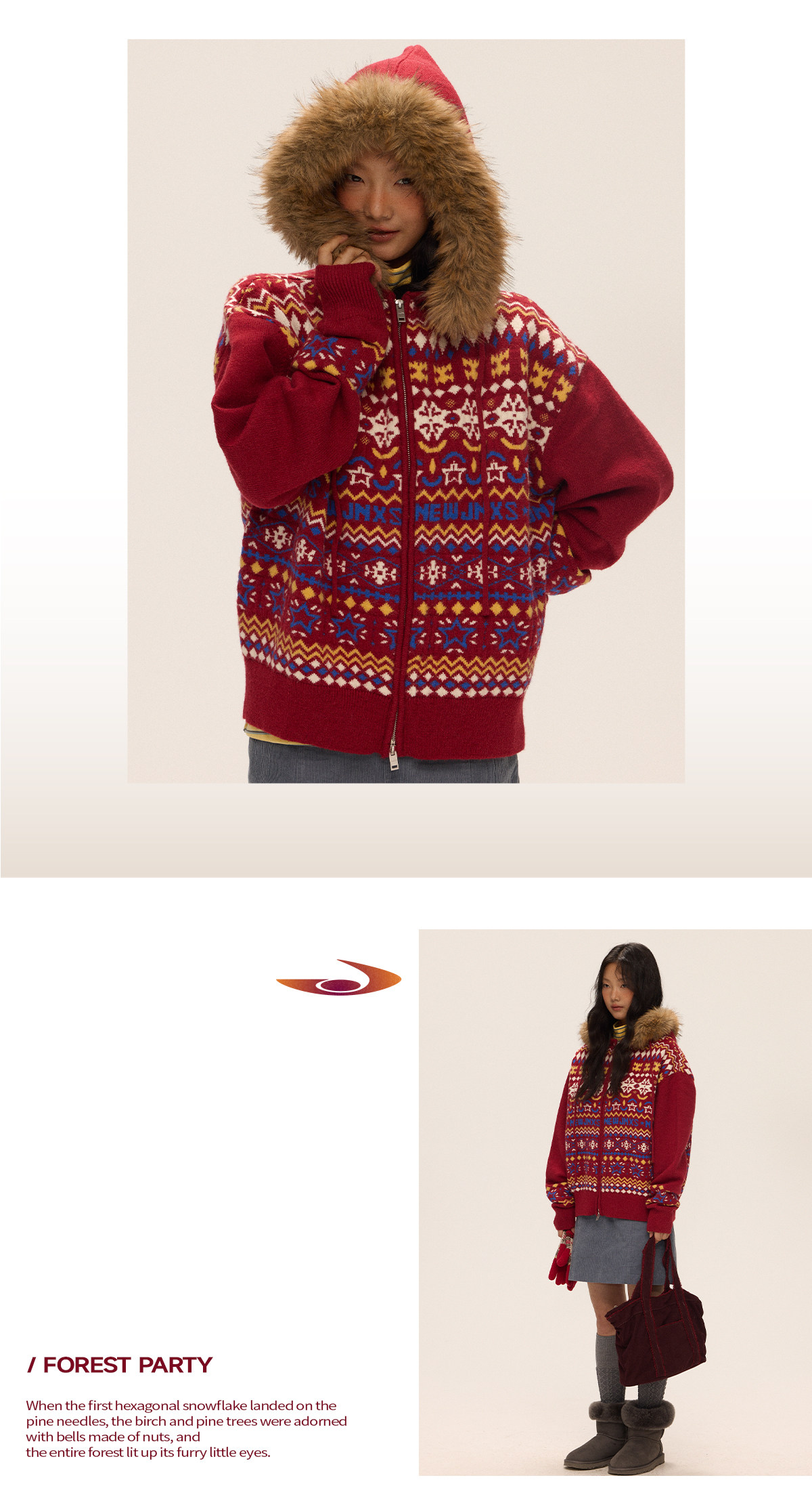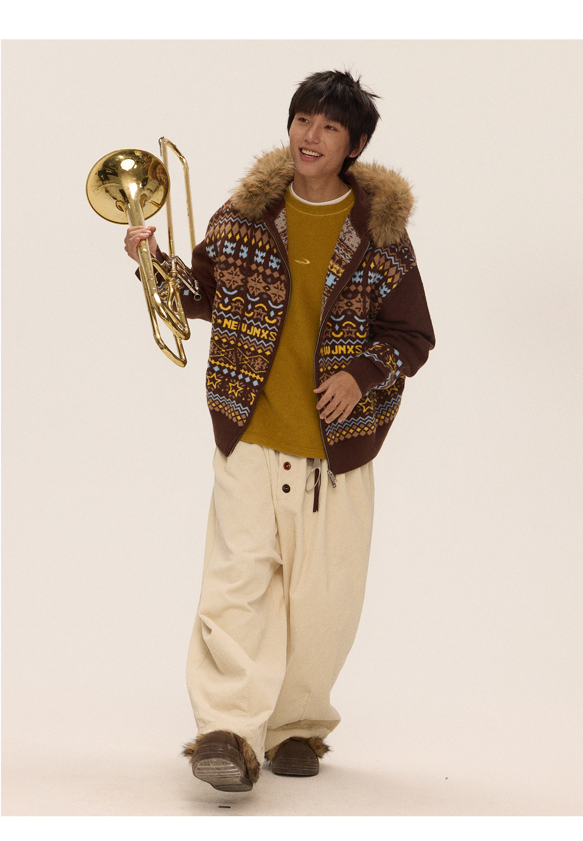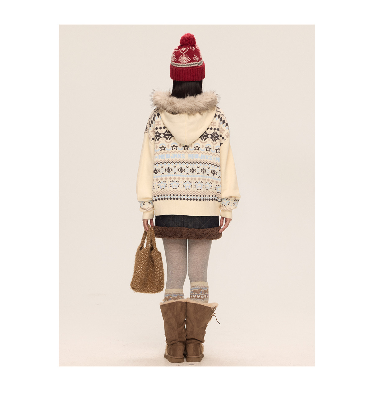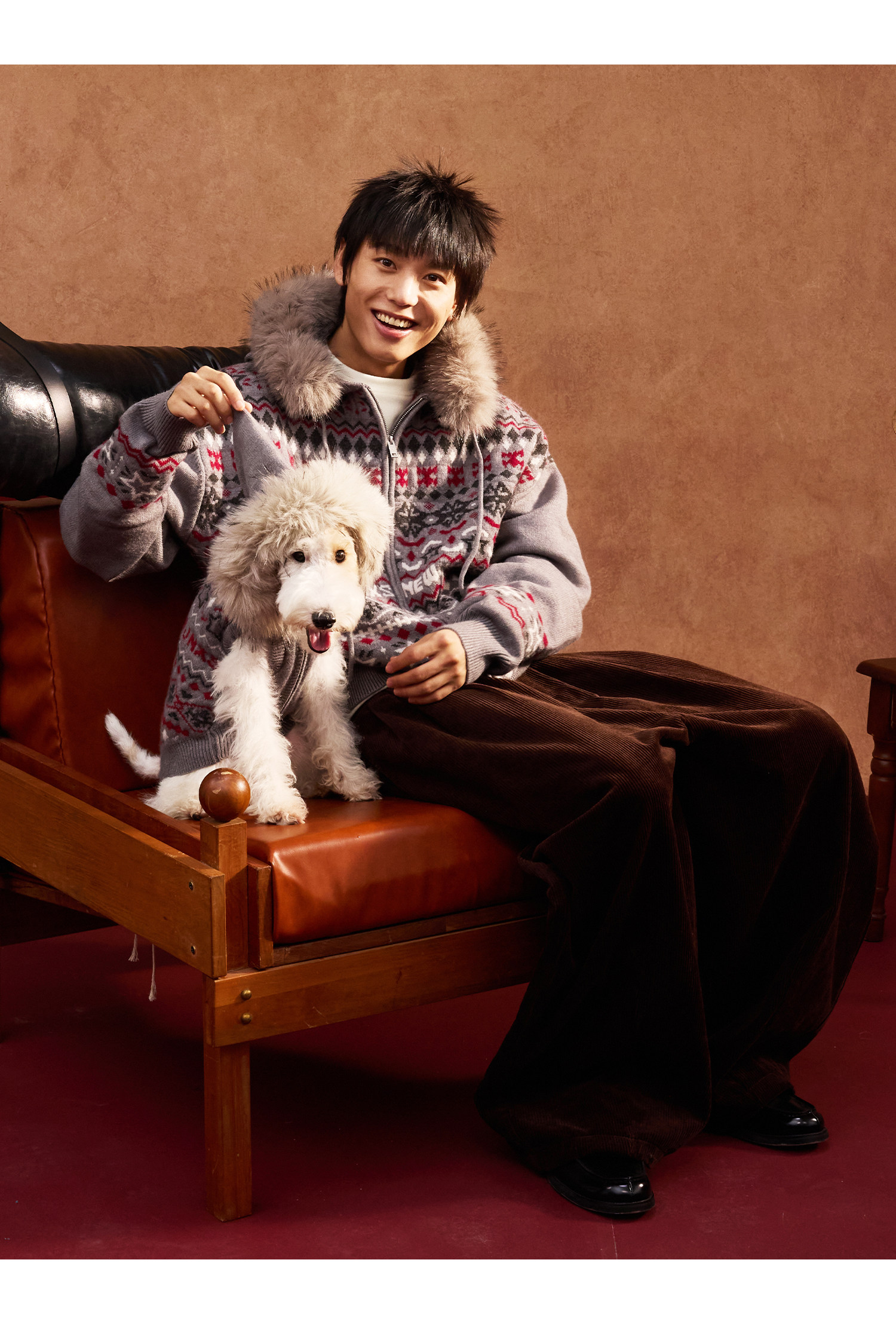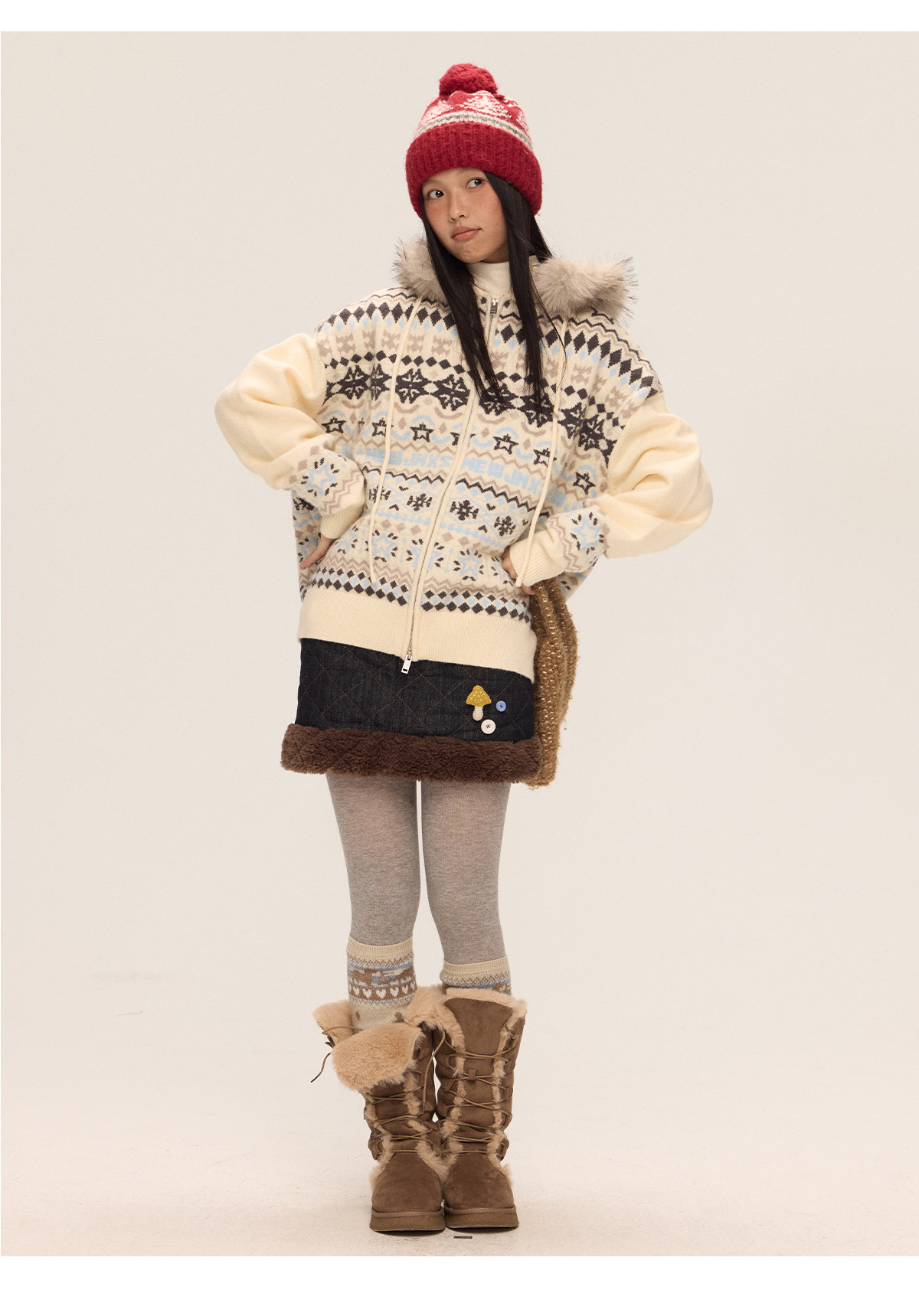Mr. Jiangnan & andall Fair Isle Detachable Fur Collar Knit Cardigan