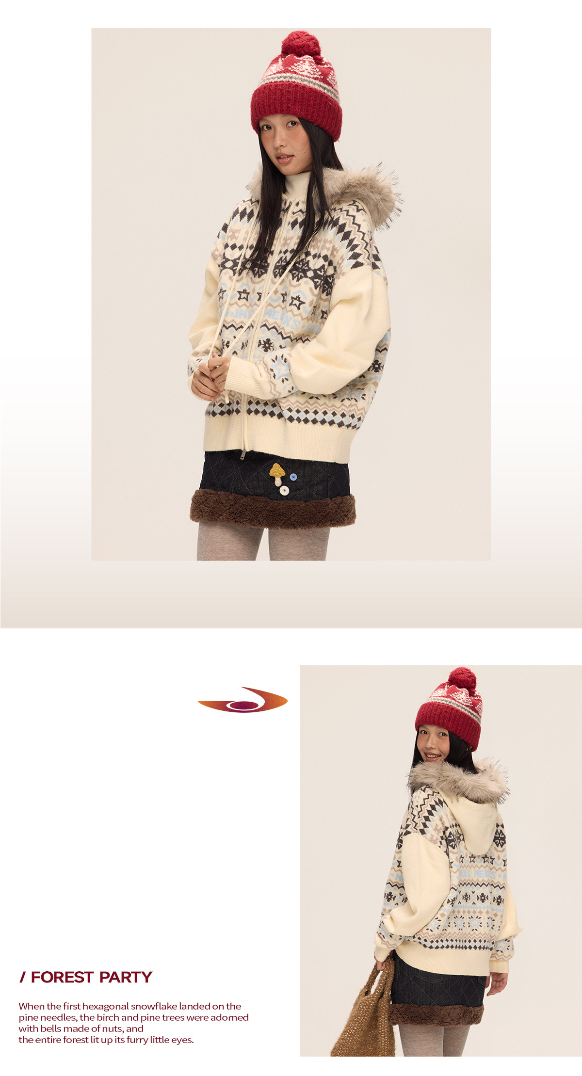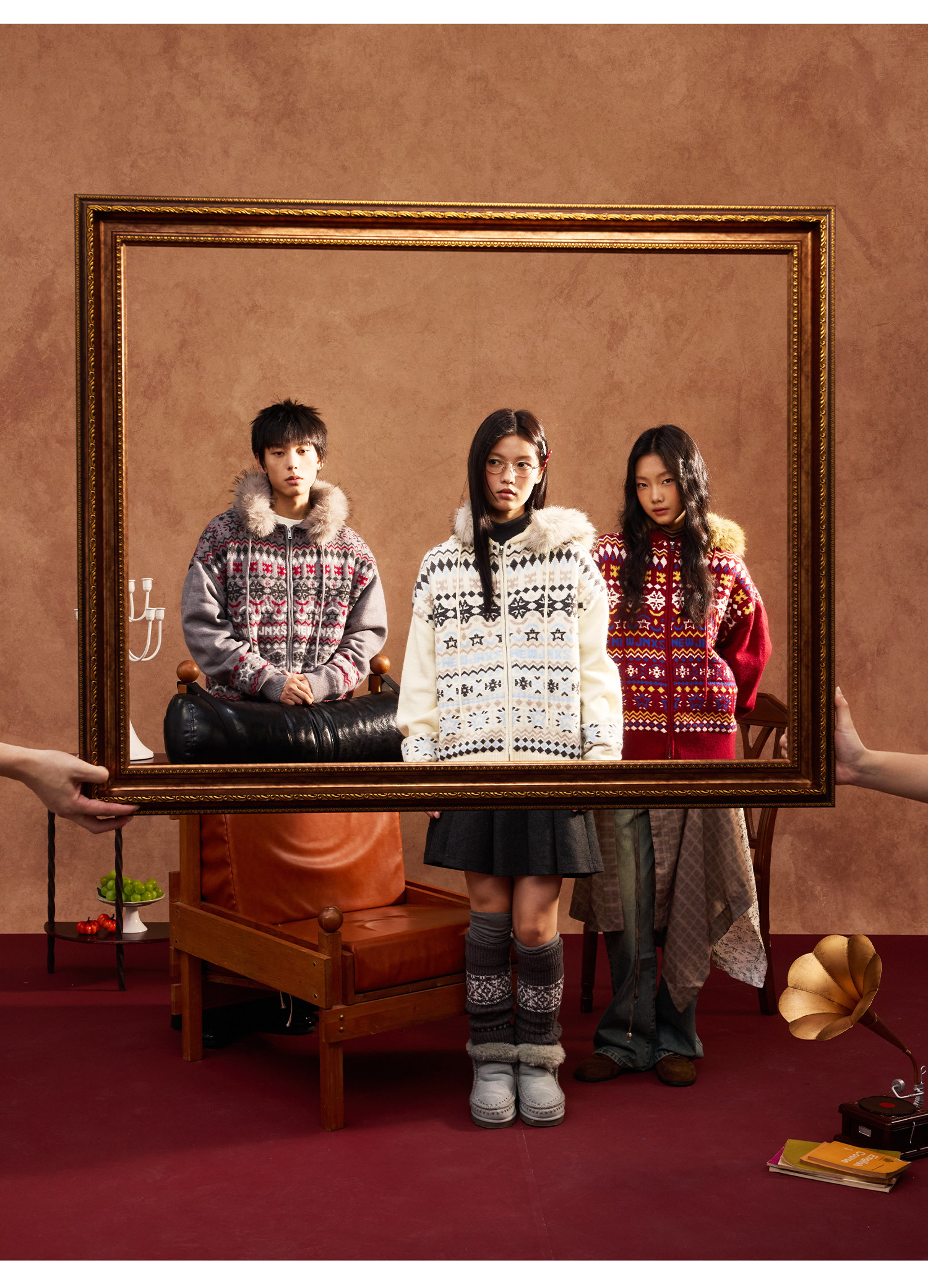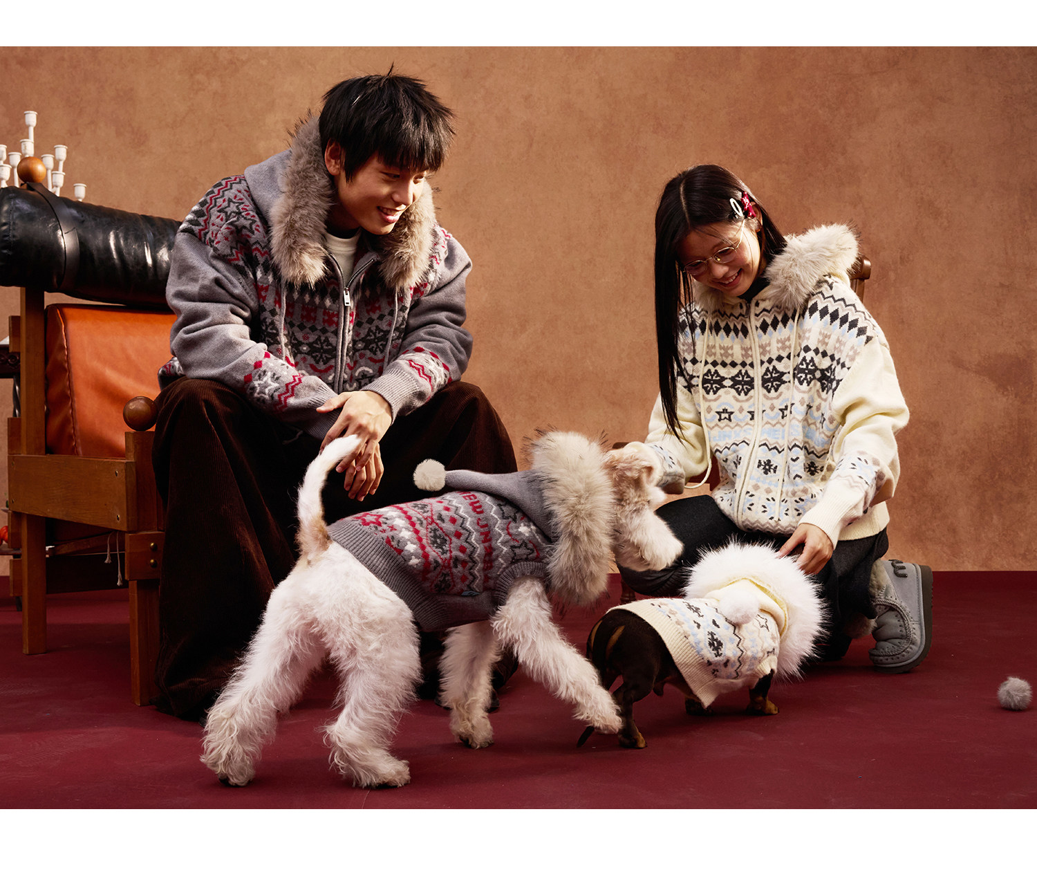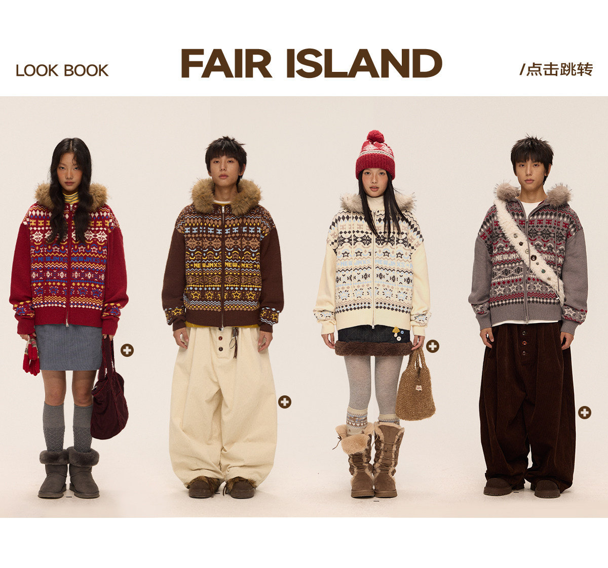 Mr. Jiangnan & andall Fair Isle Detachable Fur Collar Knit Cardigan