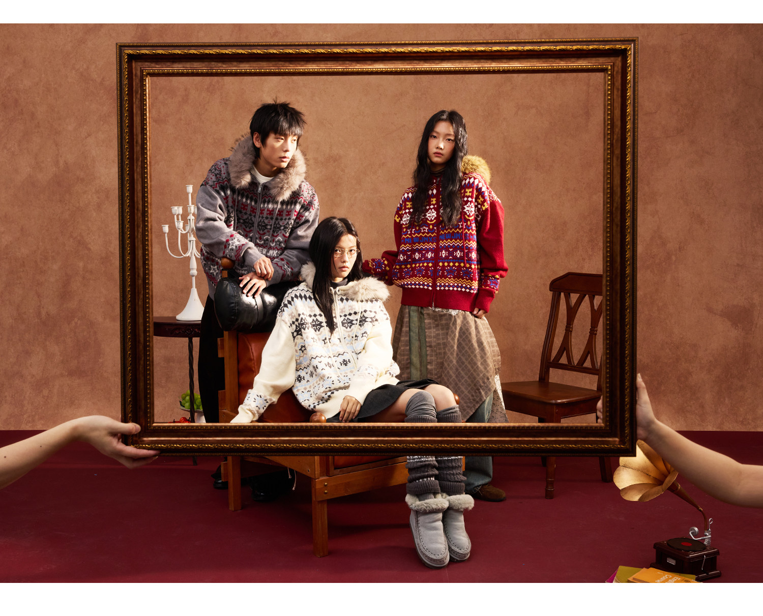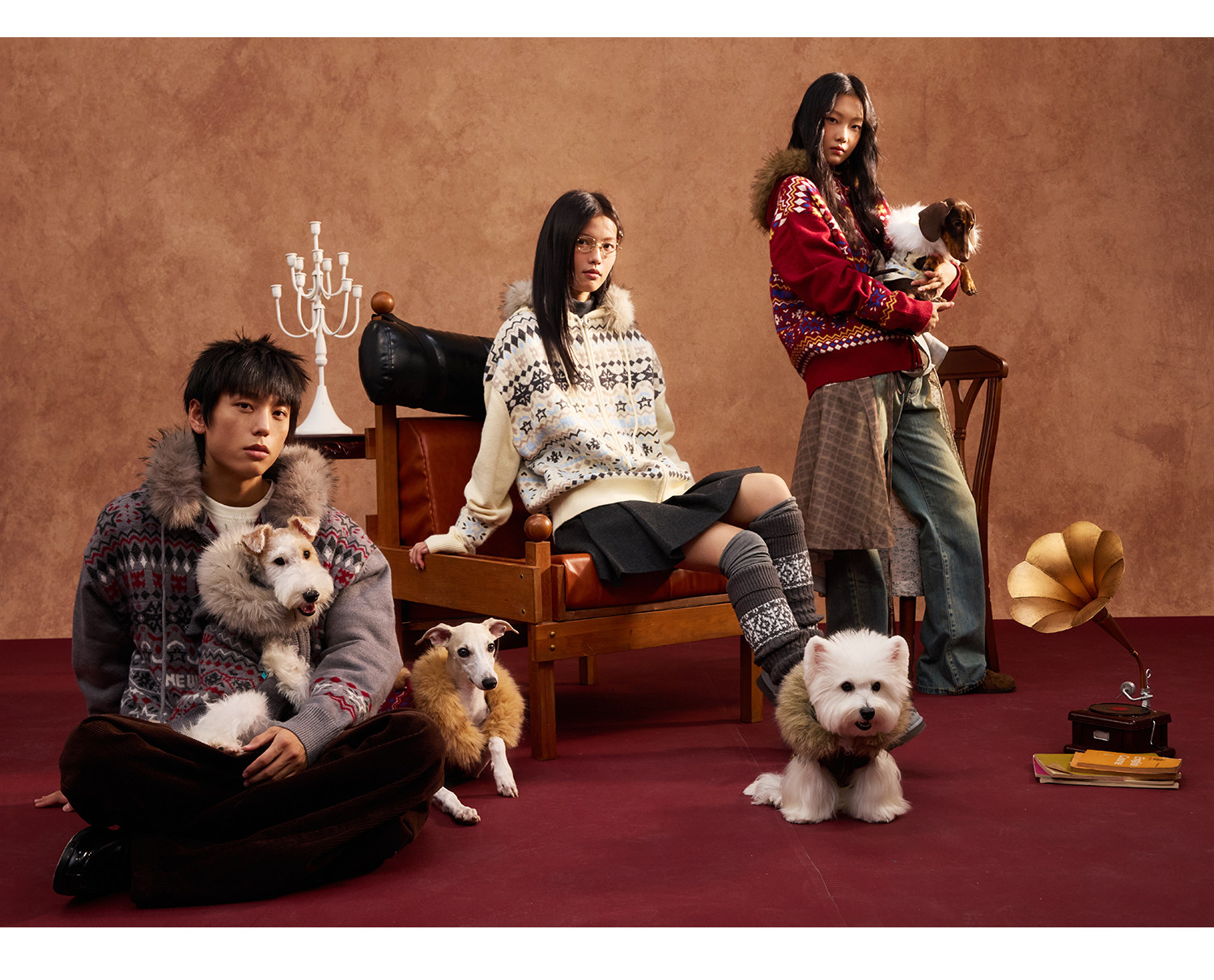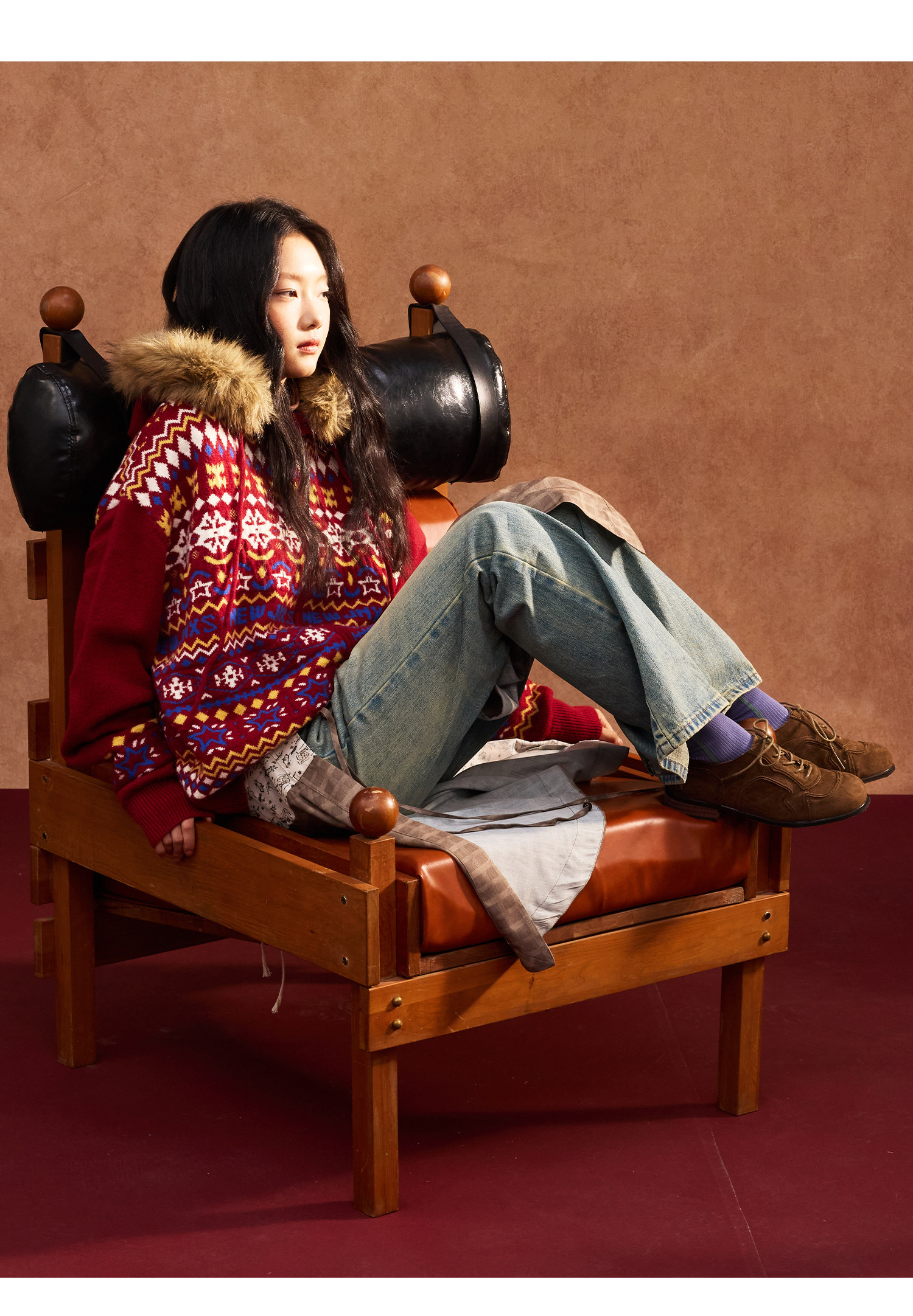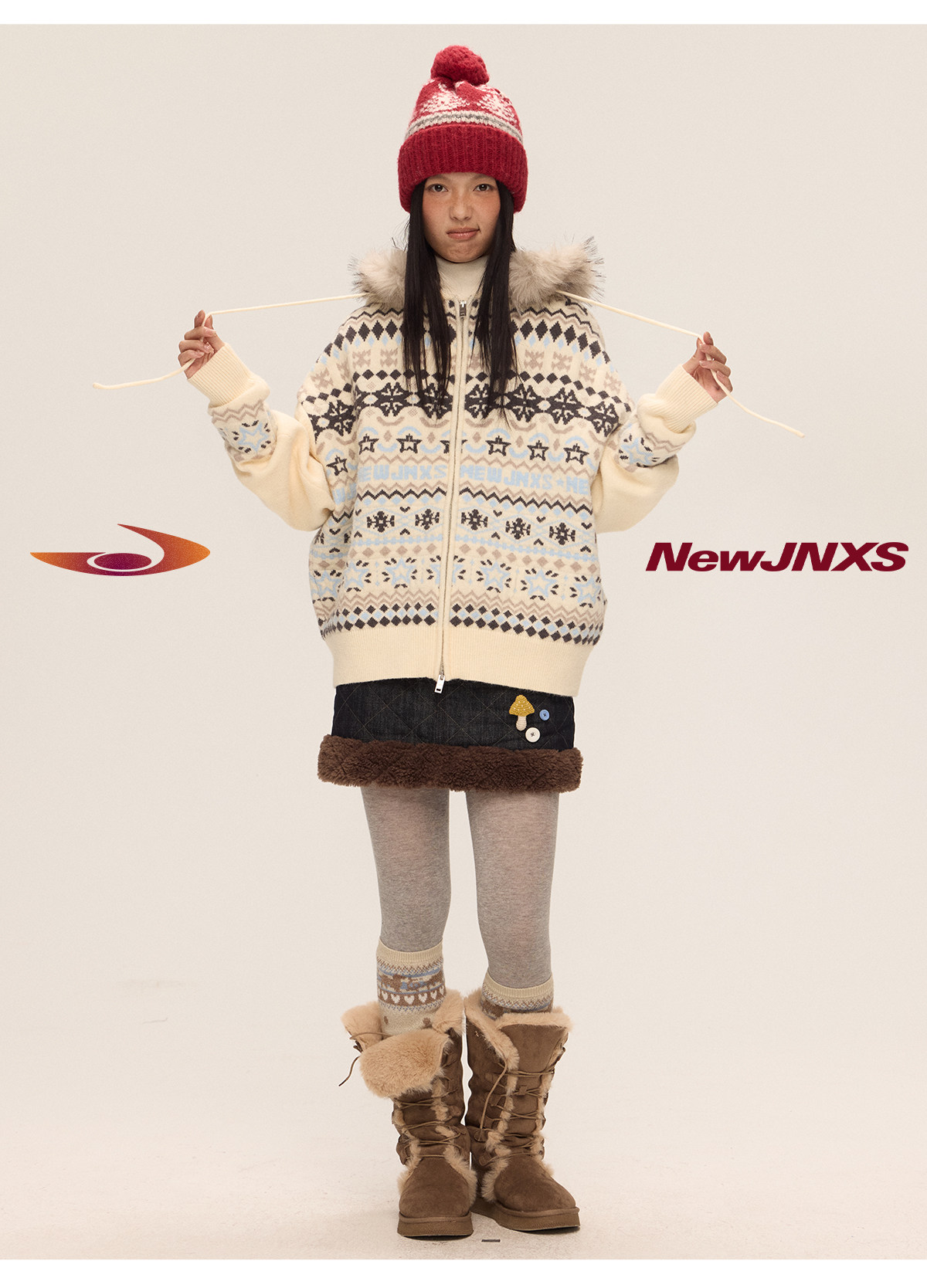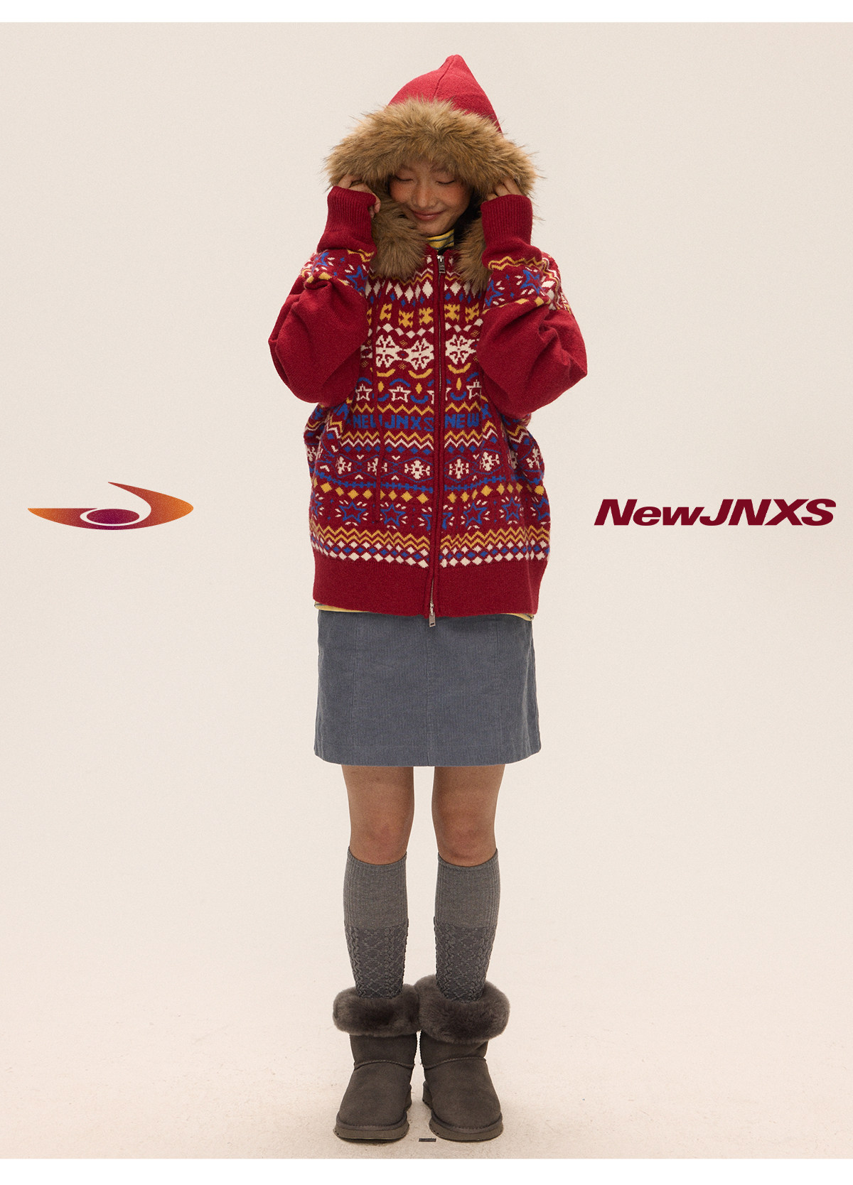 Mr. Jiangnan & andall Fair Isle Detachable Fur Collar Knit Cardigan