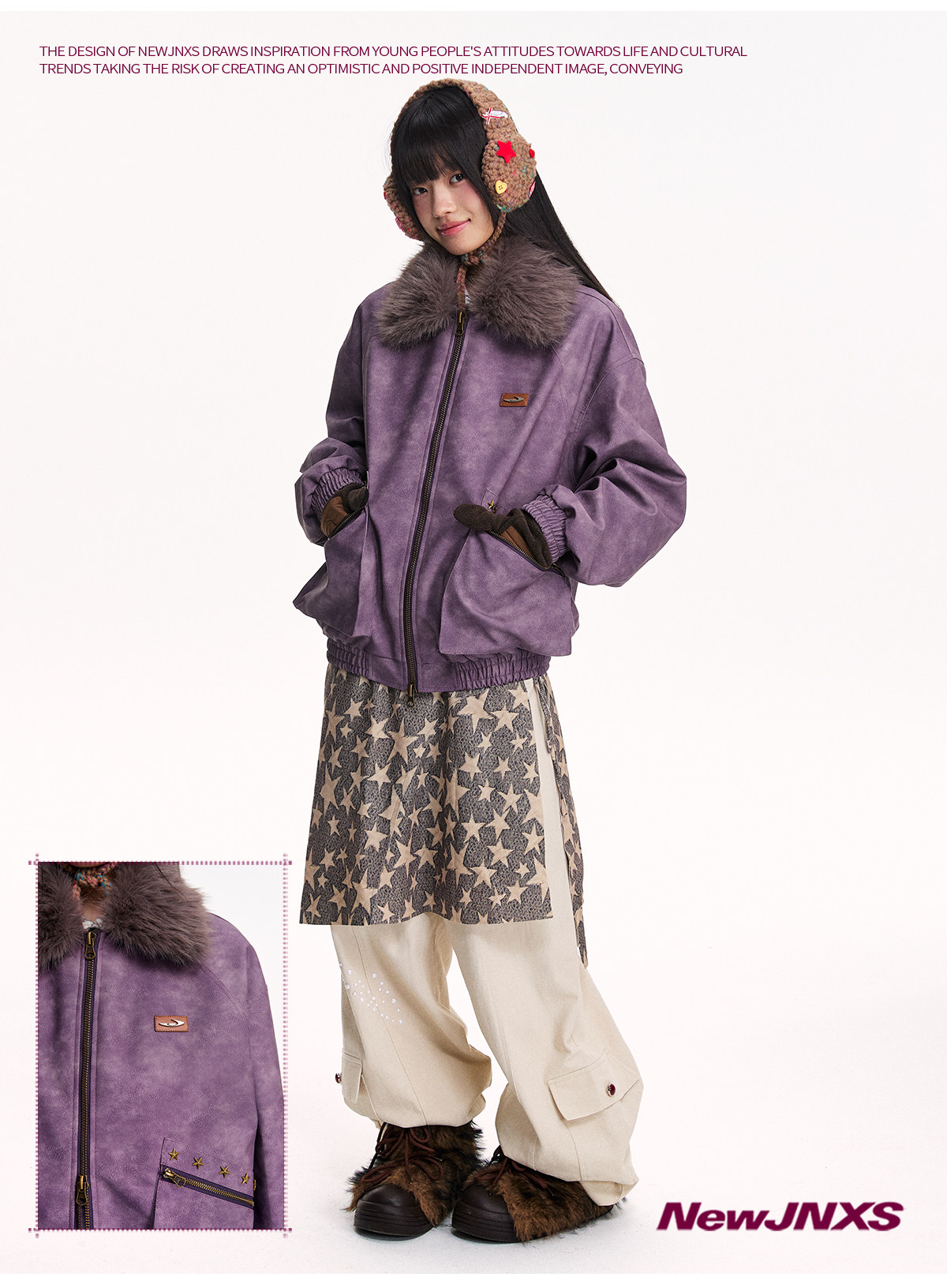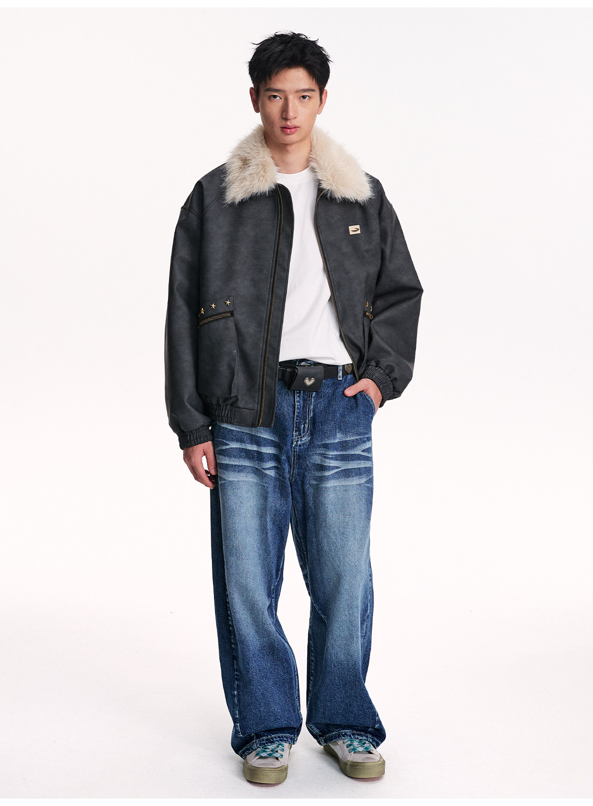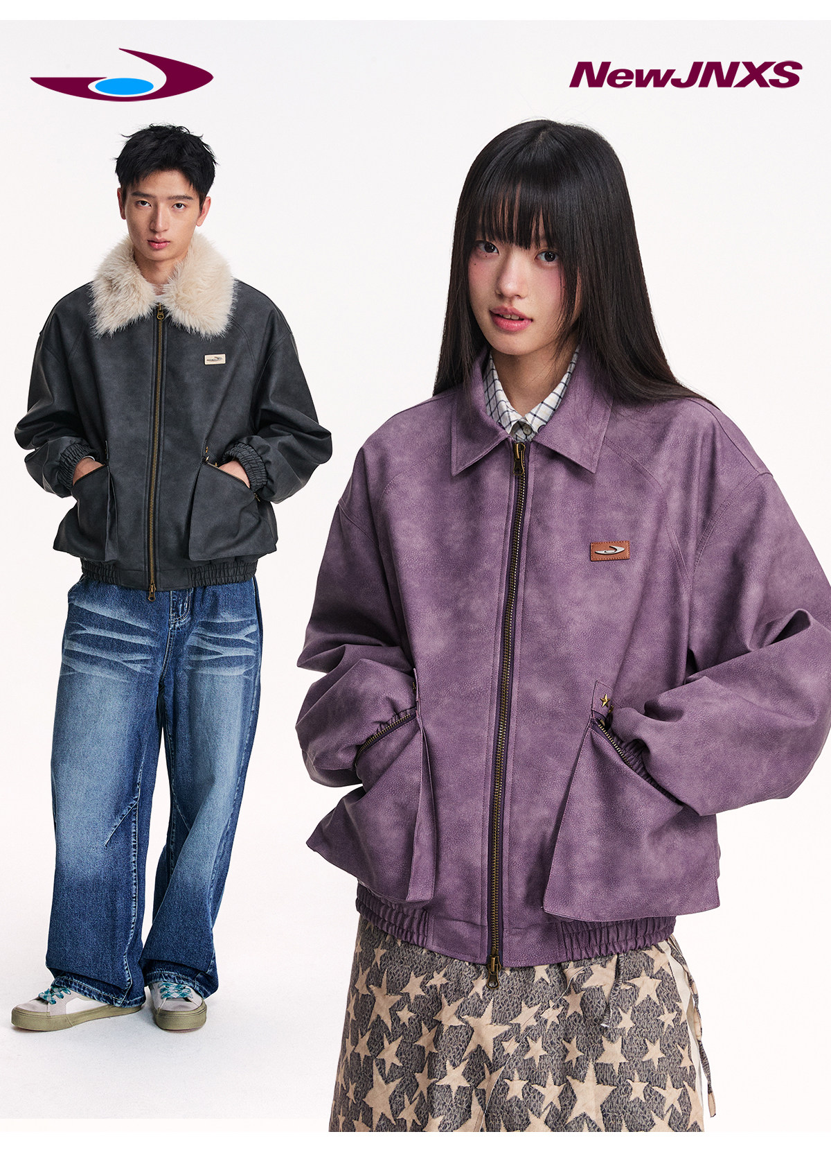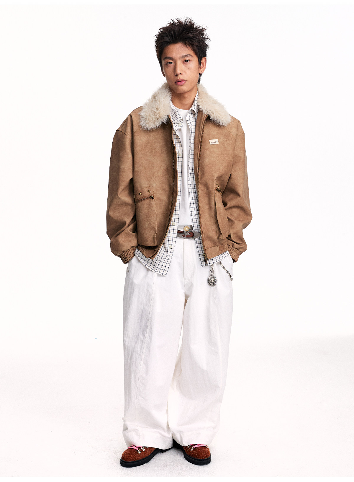 Mr. Jiangnan NewJNXS Retro PU Leather Jacket with Detachable Fur Collar