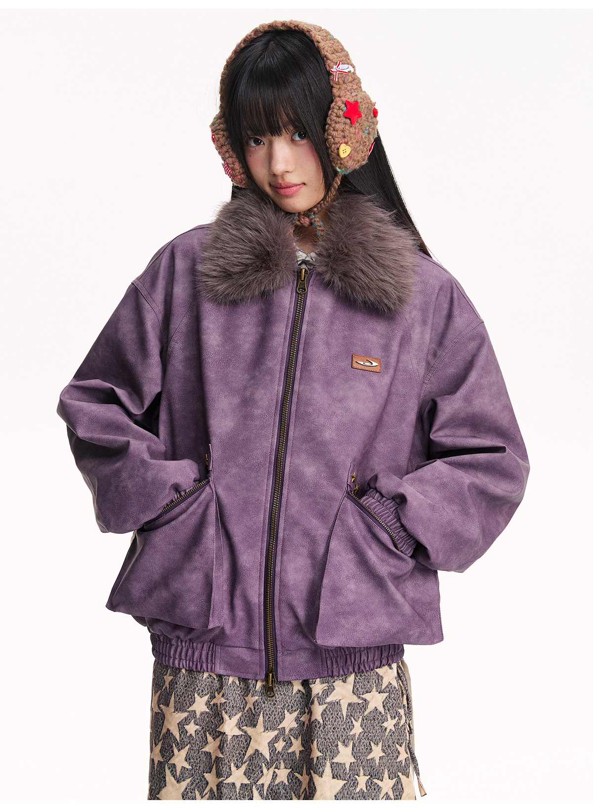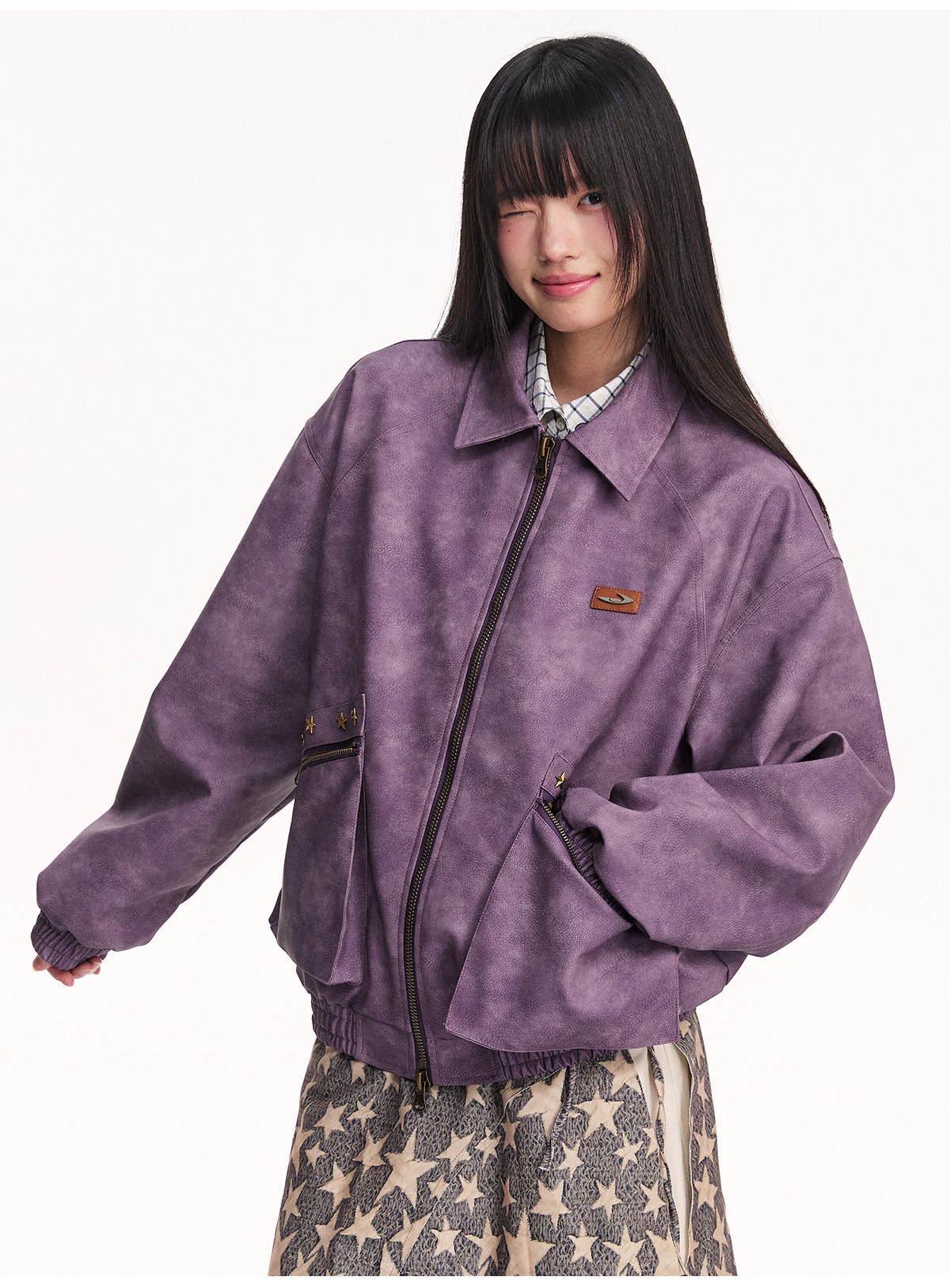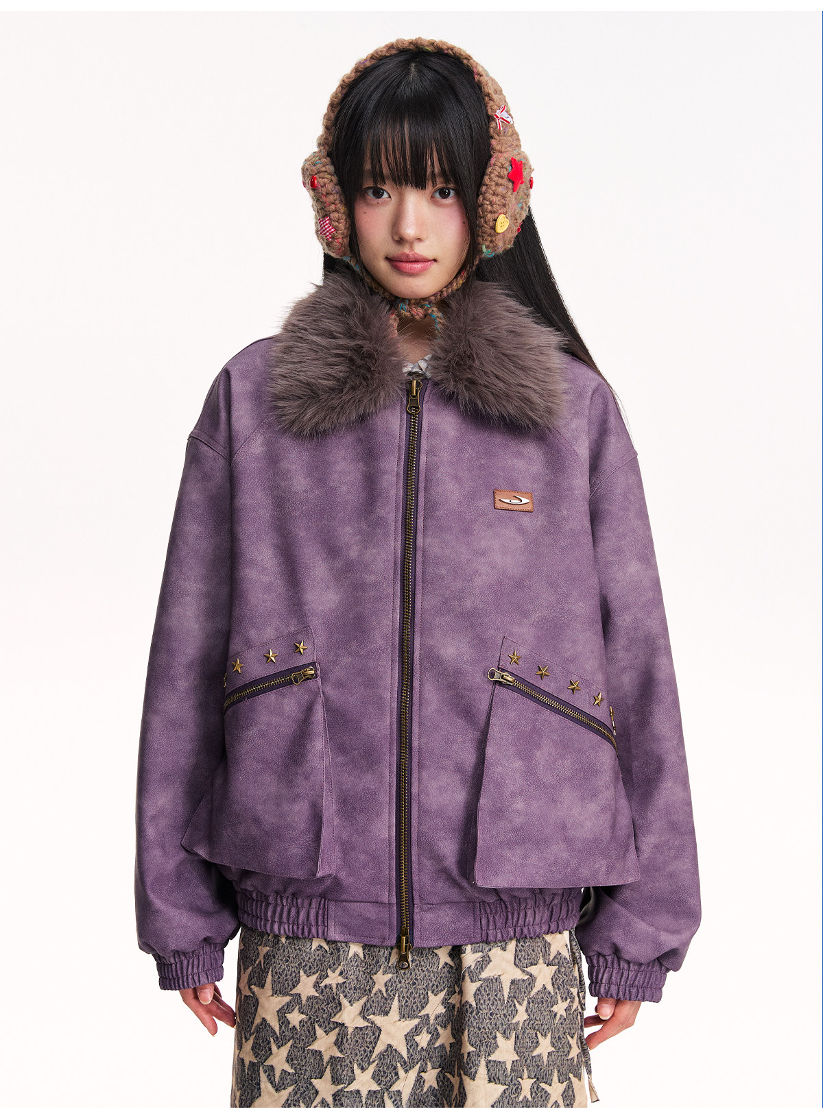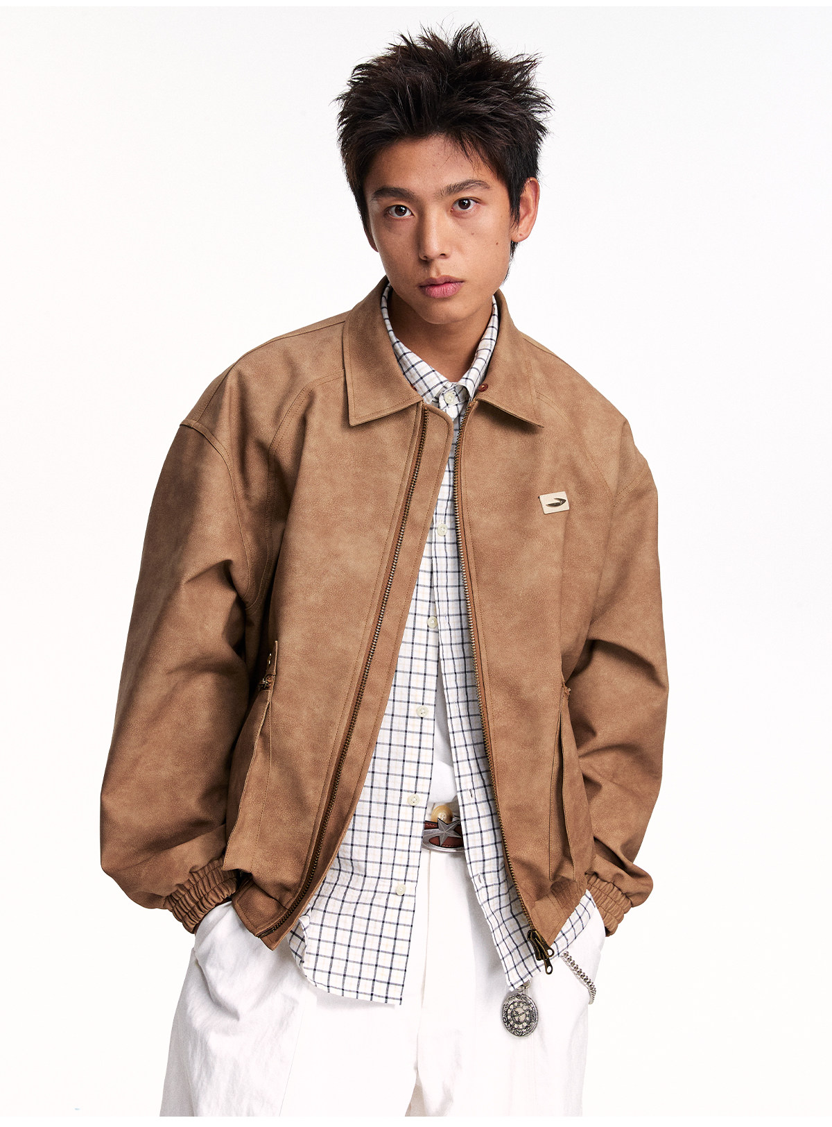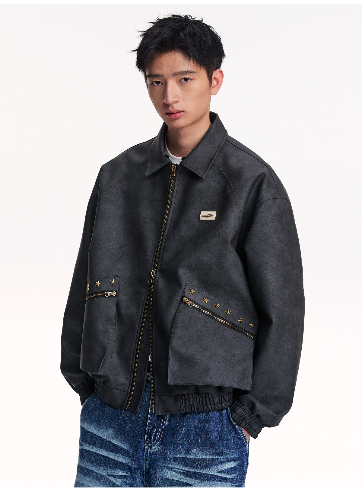 Mr. Jiangnan NewJNXS Retro PU Leather Jacket with Detachable Fur Collar