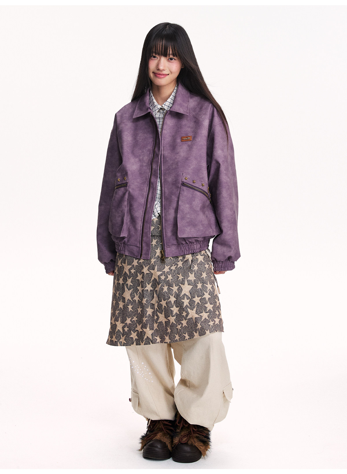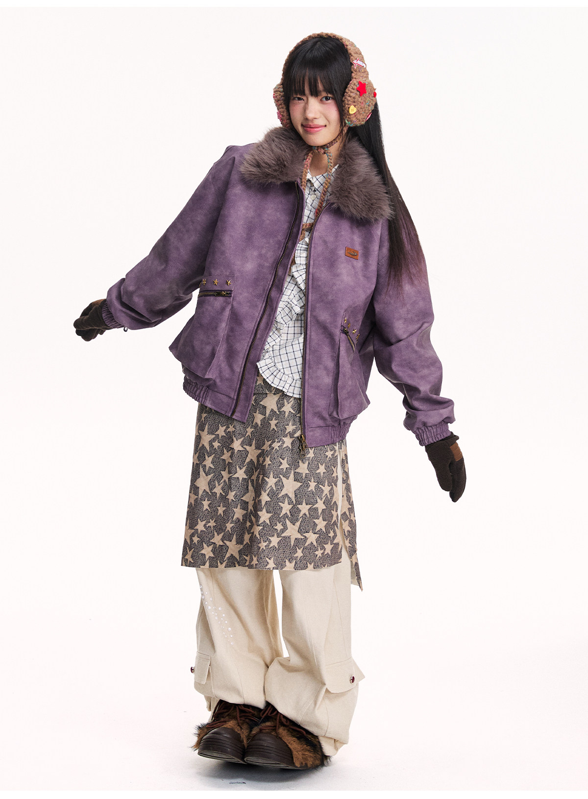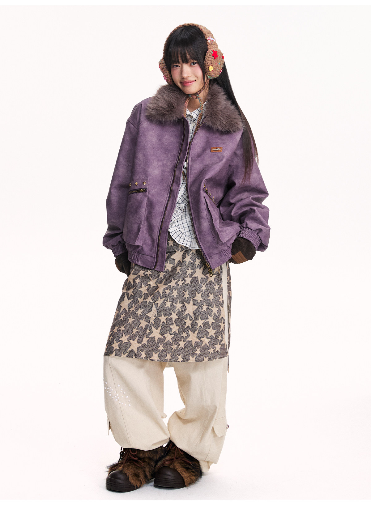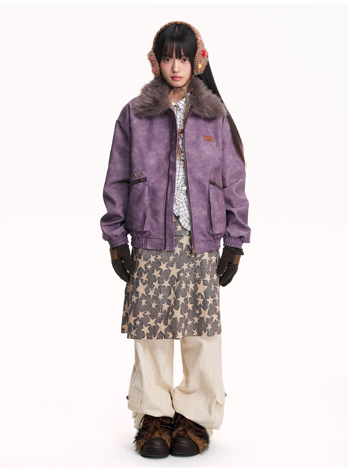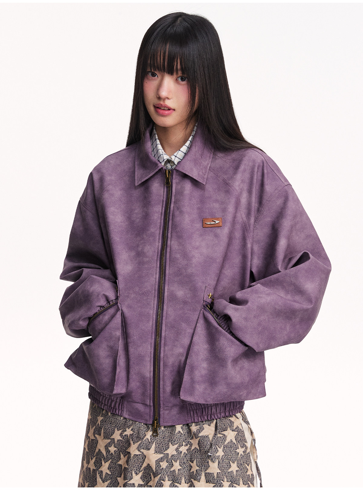 Mr. Jiangnan NewJNXS Retro PU Leather Jacket with Detachable Fur Collar