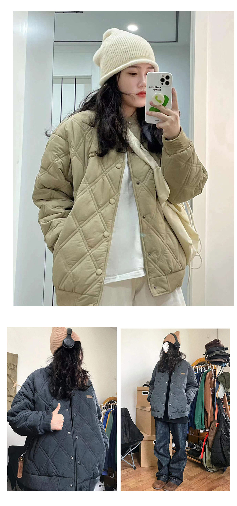Mr. Jiangnan NewJNXS Japanese Diamond Quilted Cotton Baseball Jacket