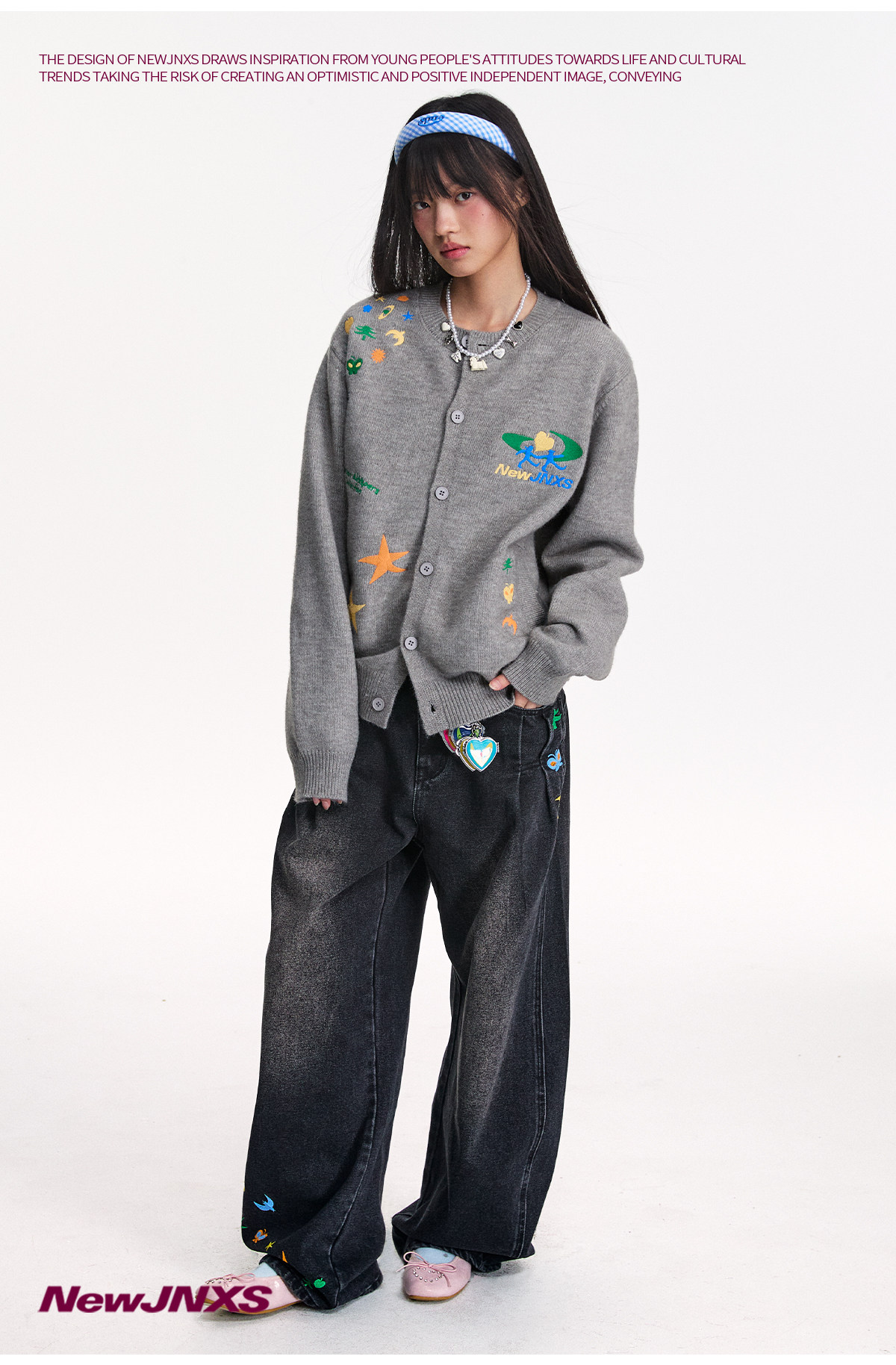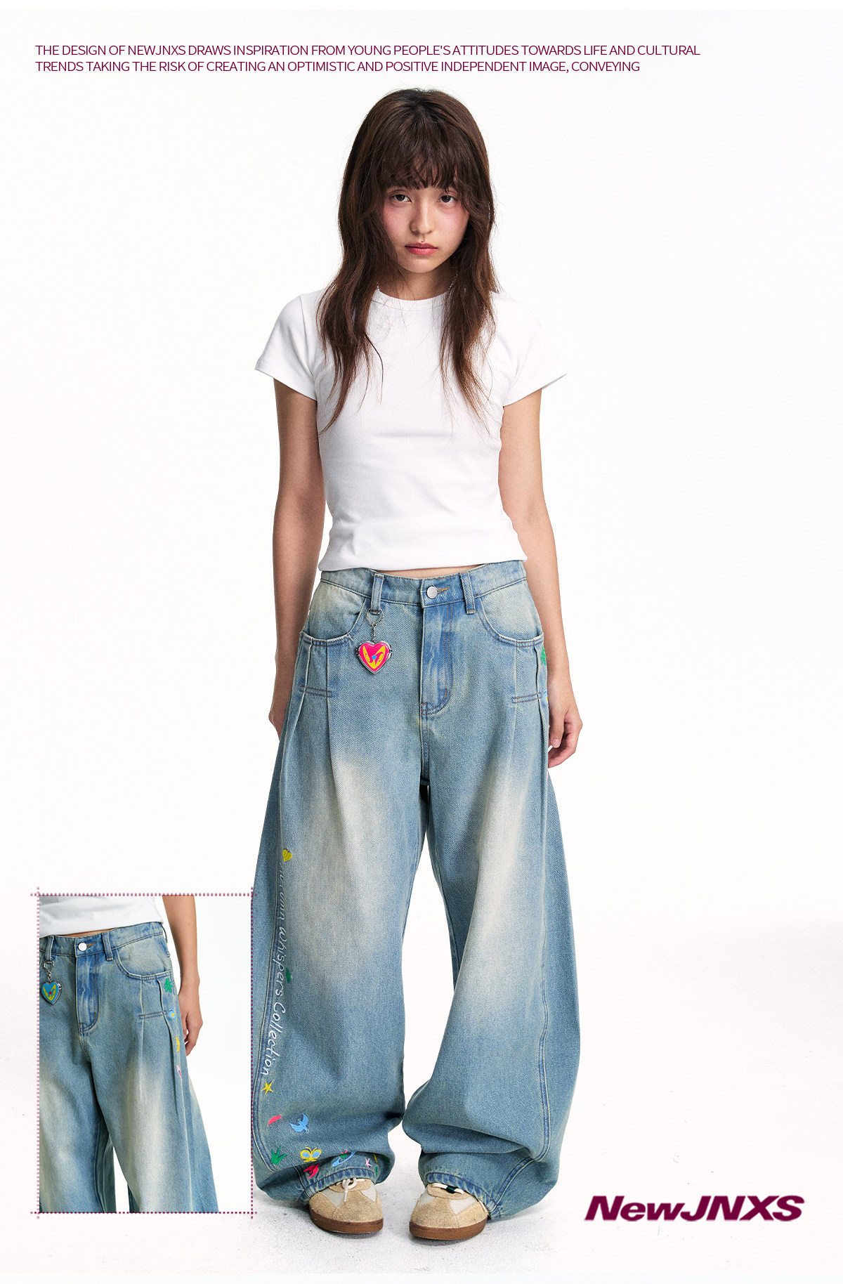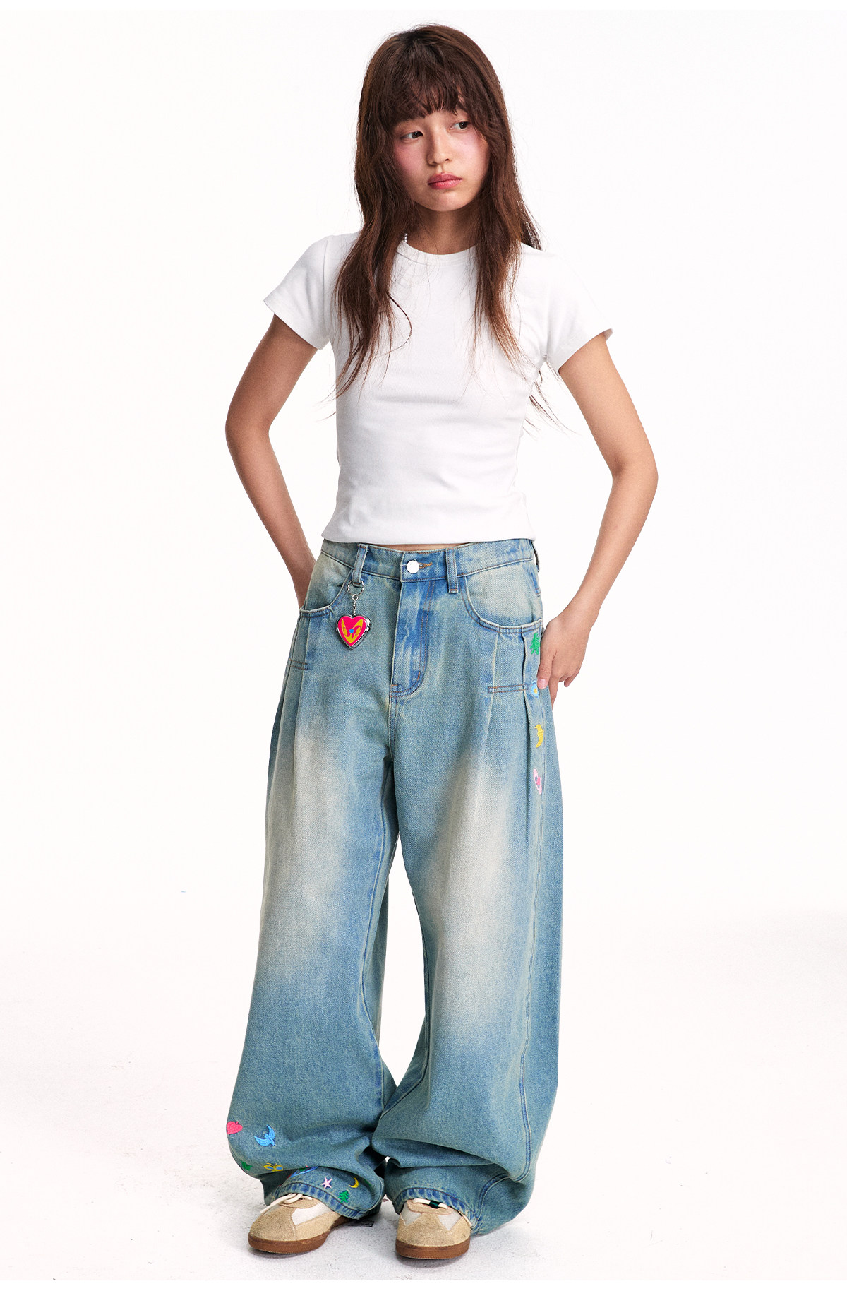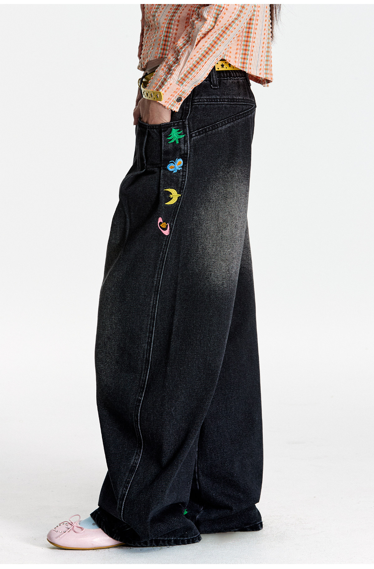 Mr. Jiangnan NewJNXS Park Elopement Wide Embroidered Scimitar Jeans