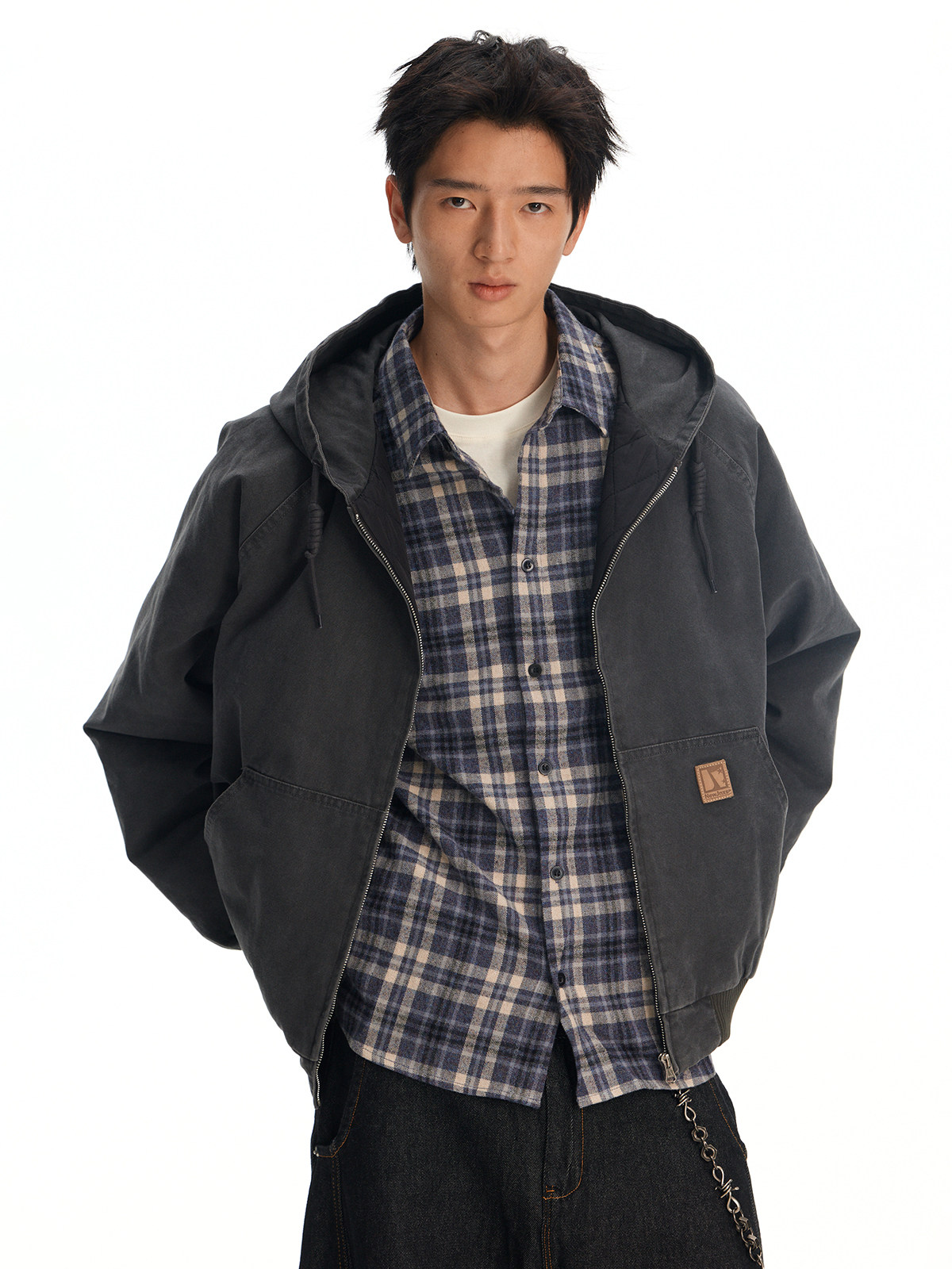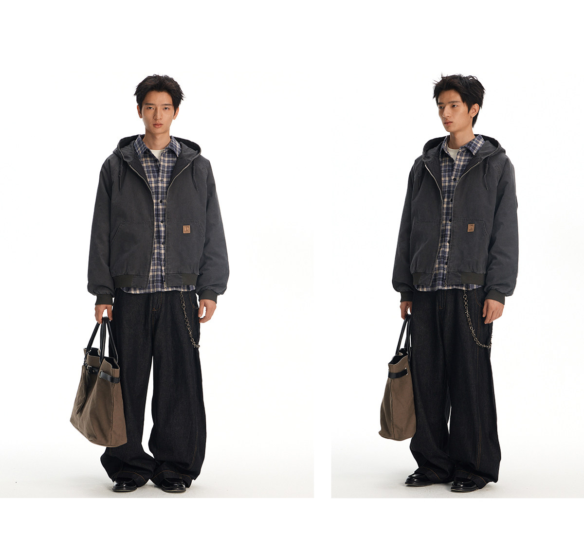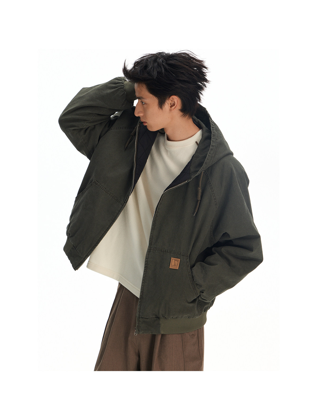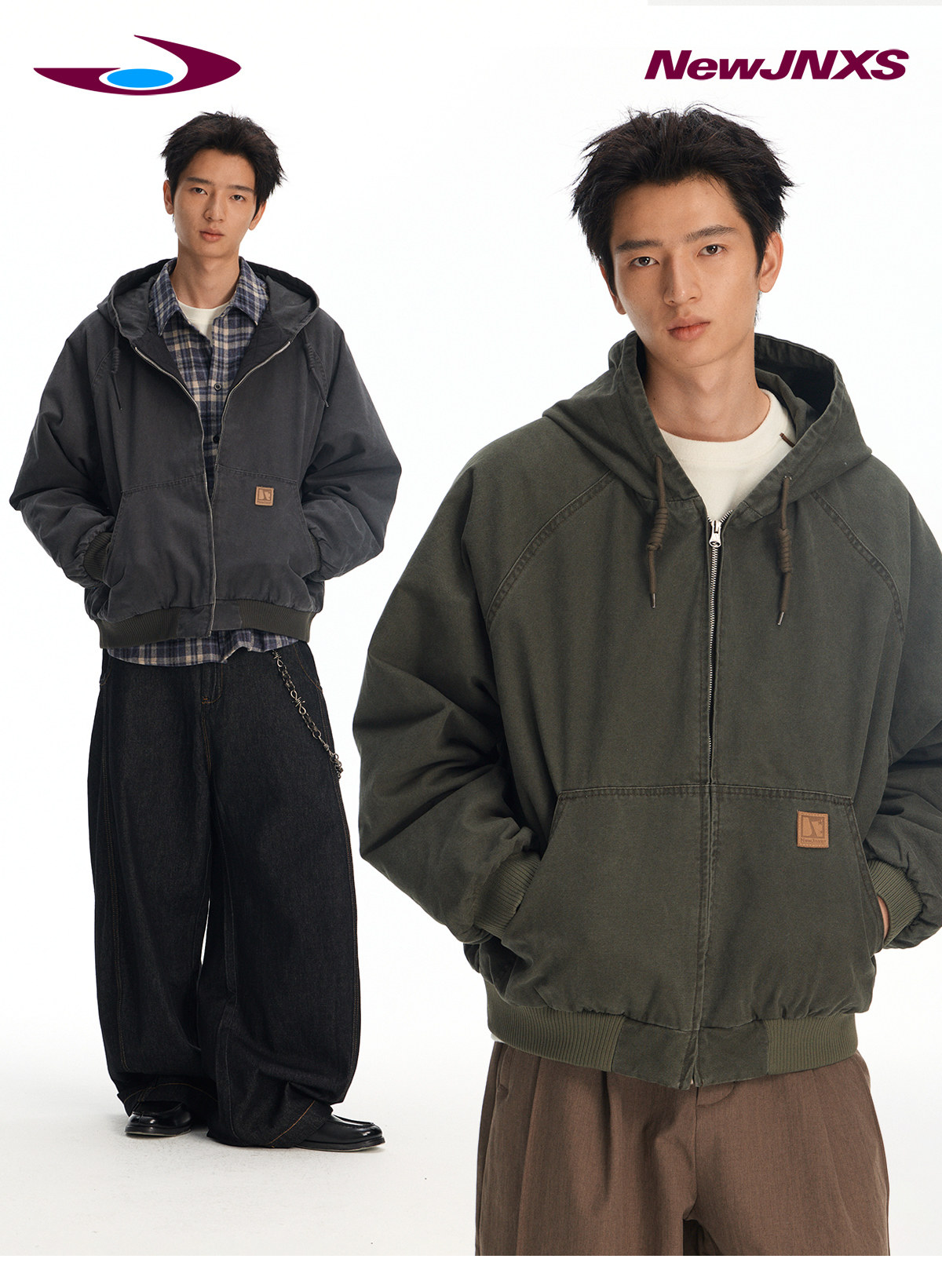 Mr. Jiangnan NewJNXS Washed Hooded Workwear Leather Jacket