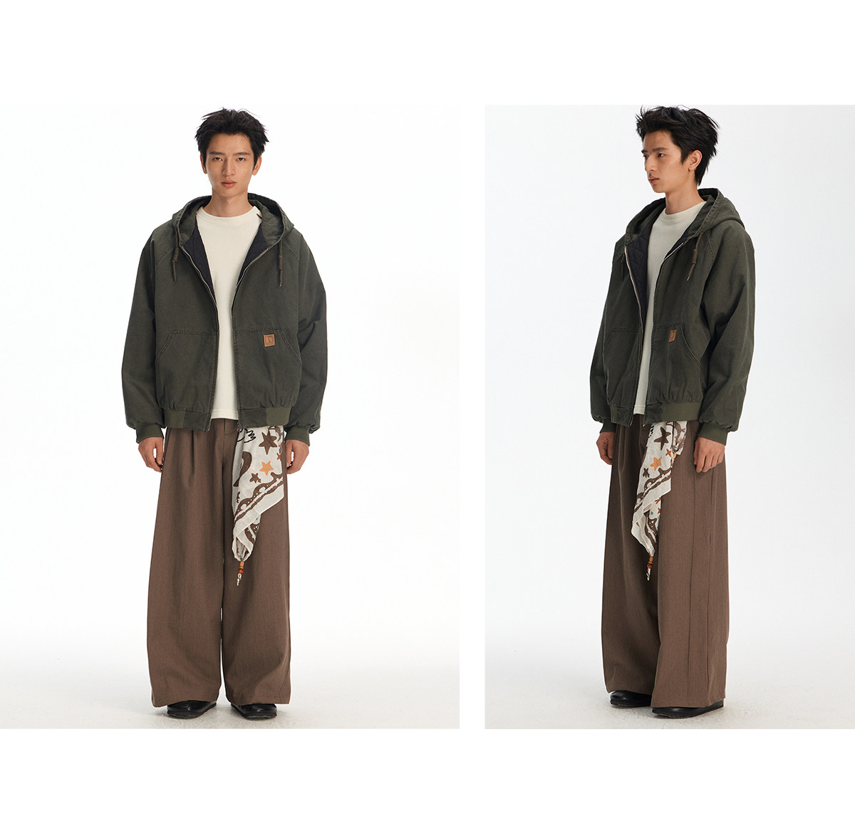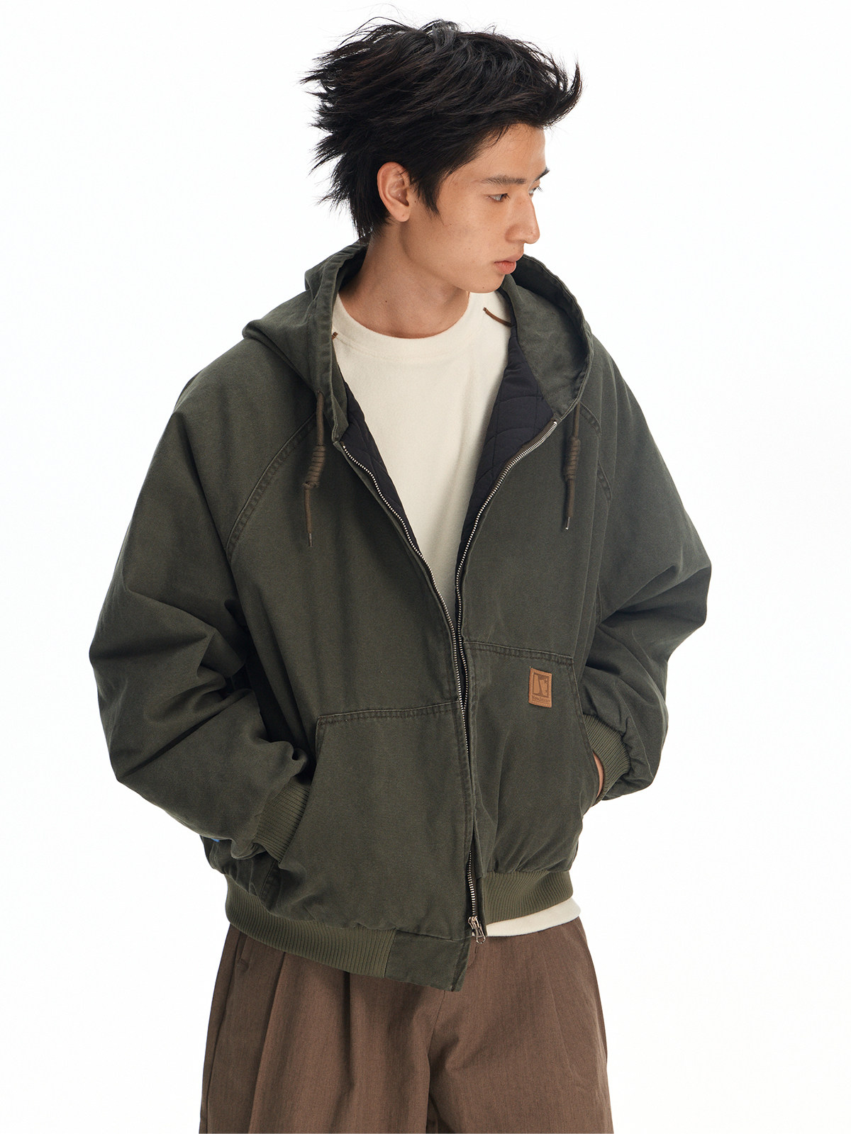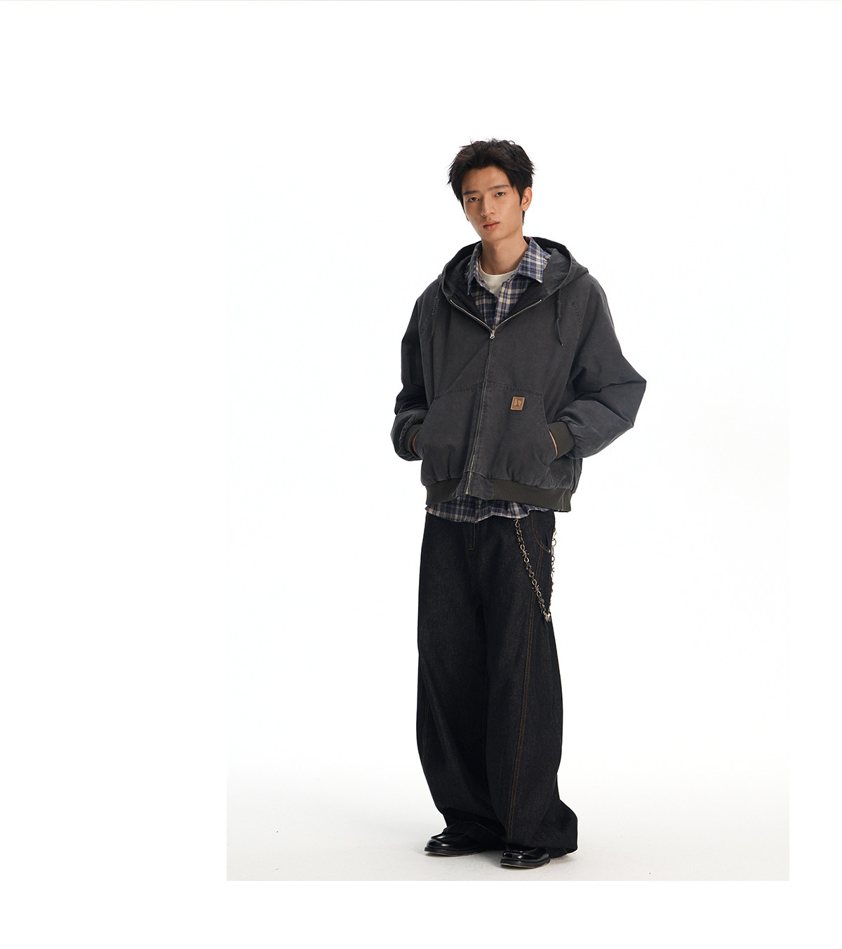 Mr. Jiangnan NewJNXS Washed Hooded Workwear Leather Jacket
