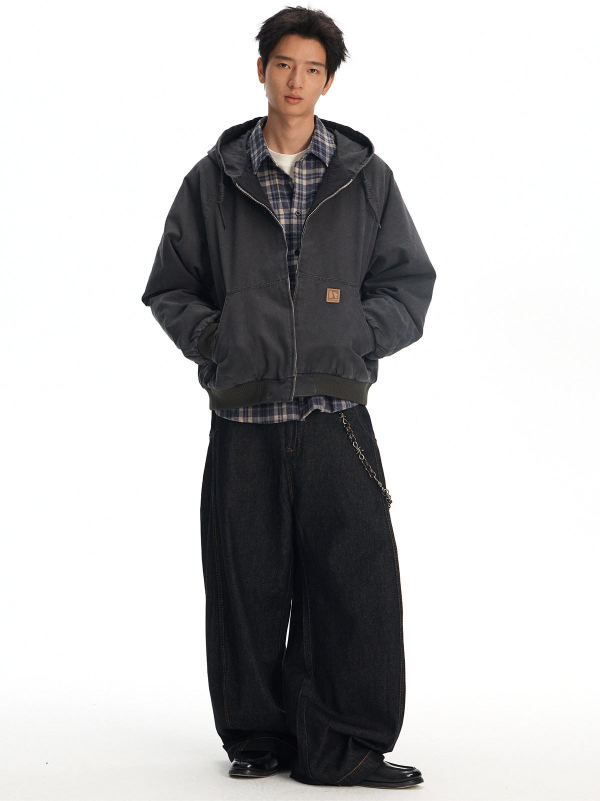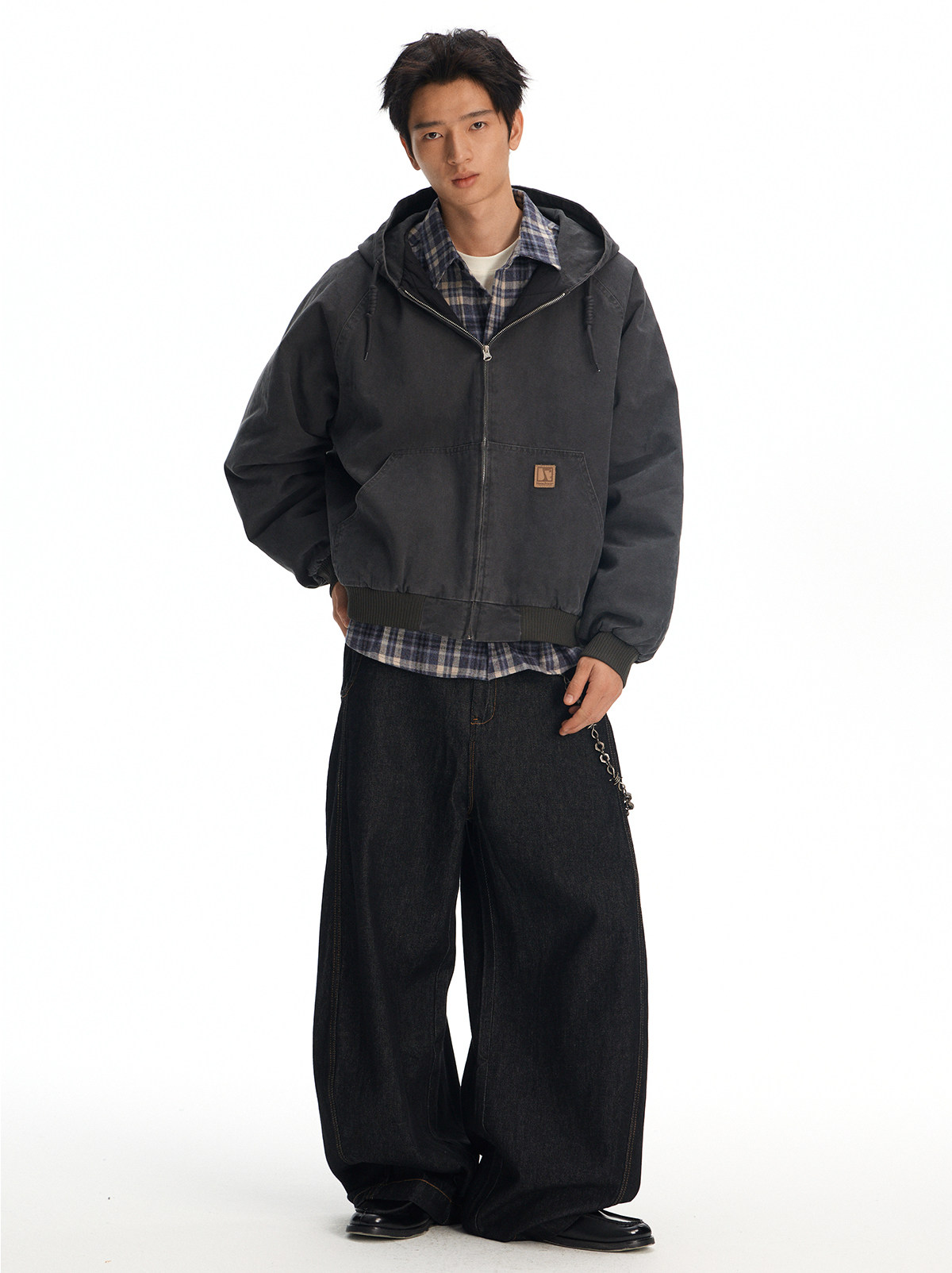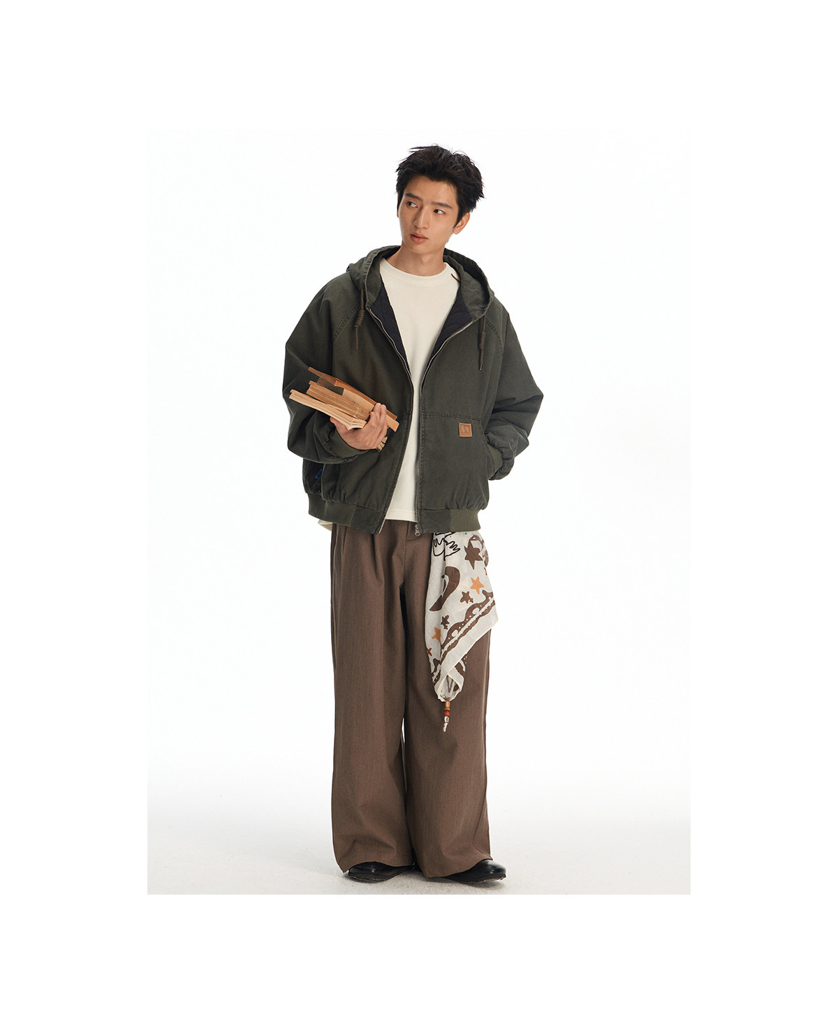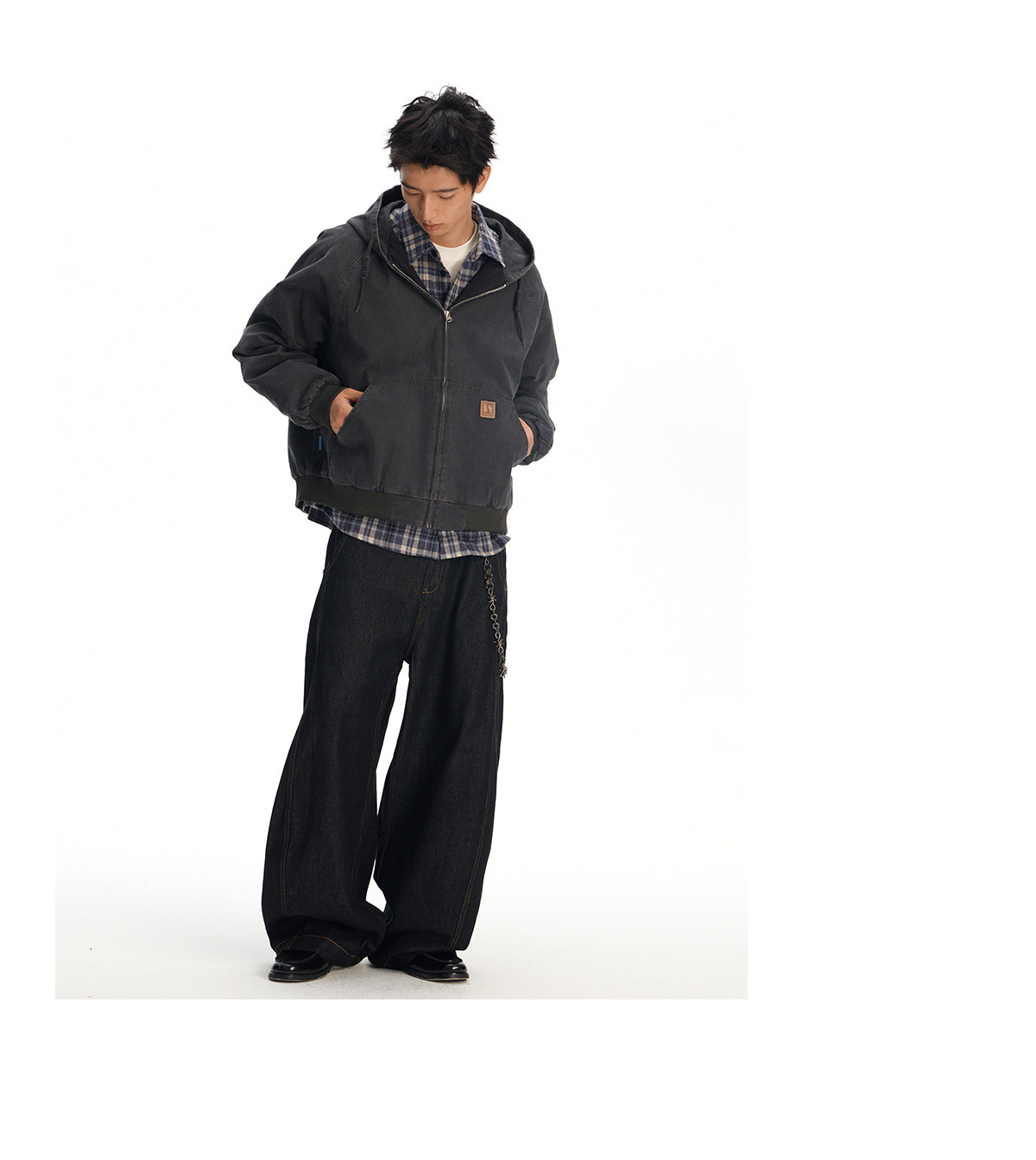 Mr. Jiangnan NewJNXS Washed Hooded Workwear Leather Jacket