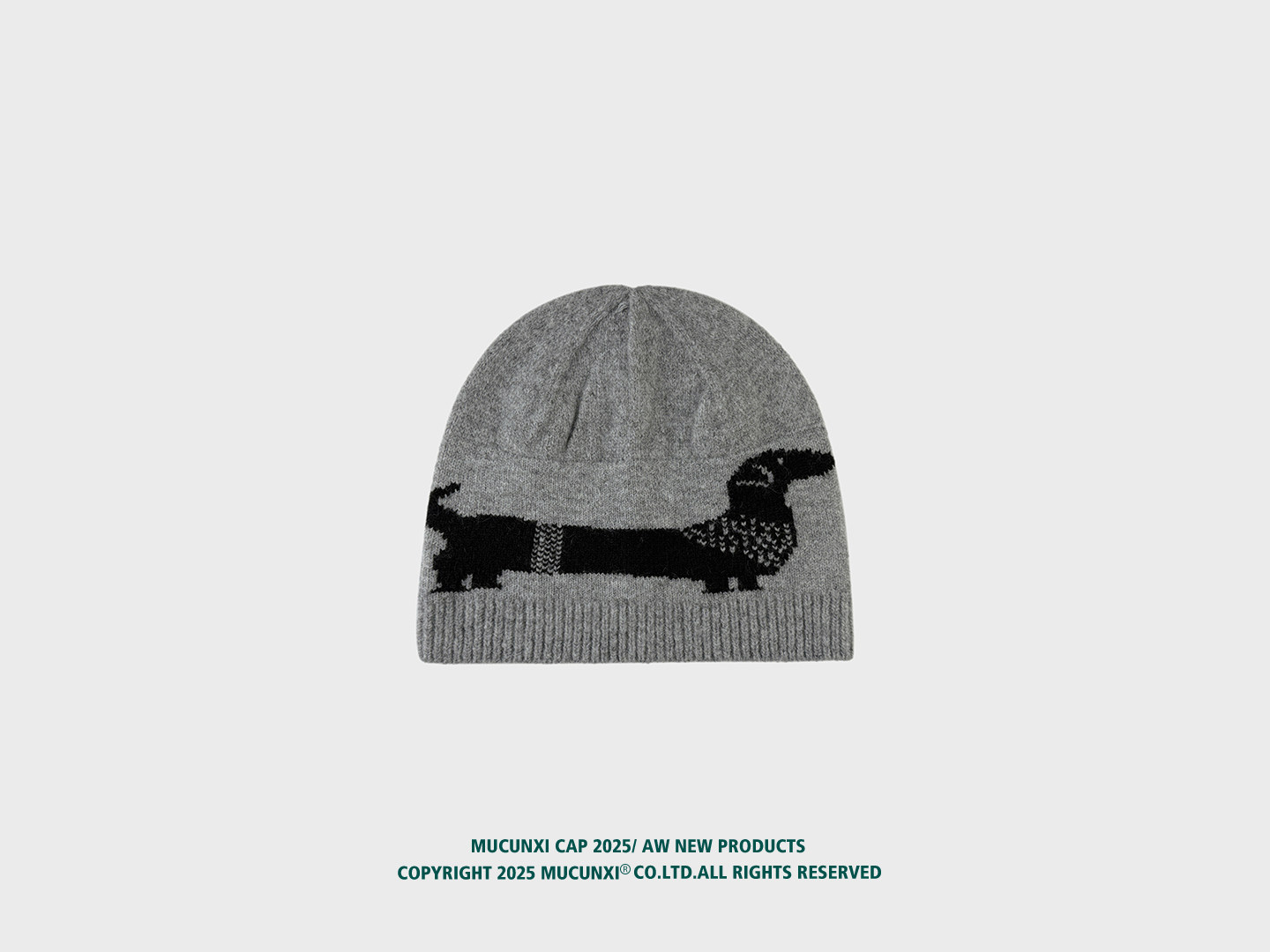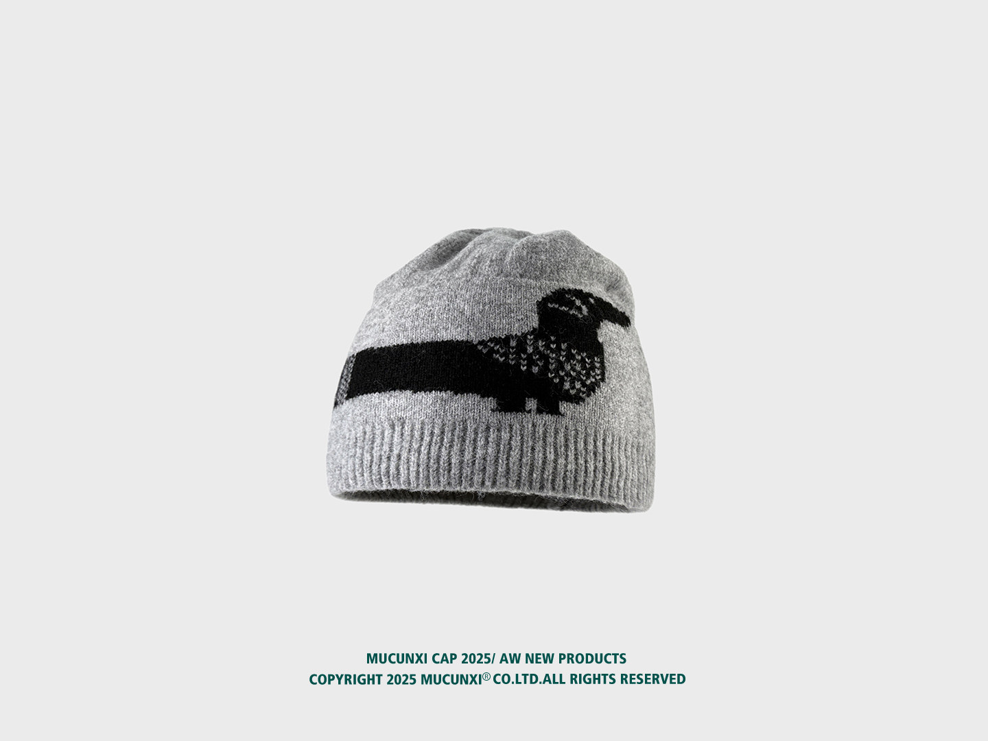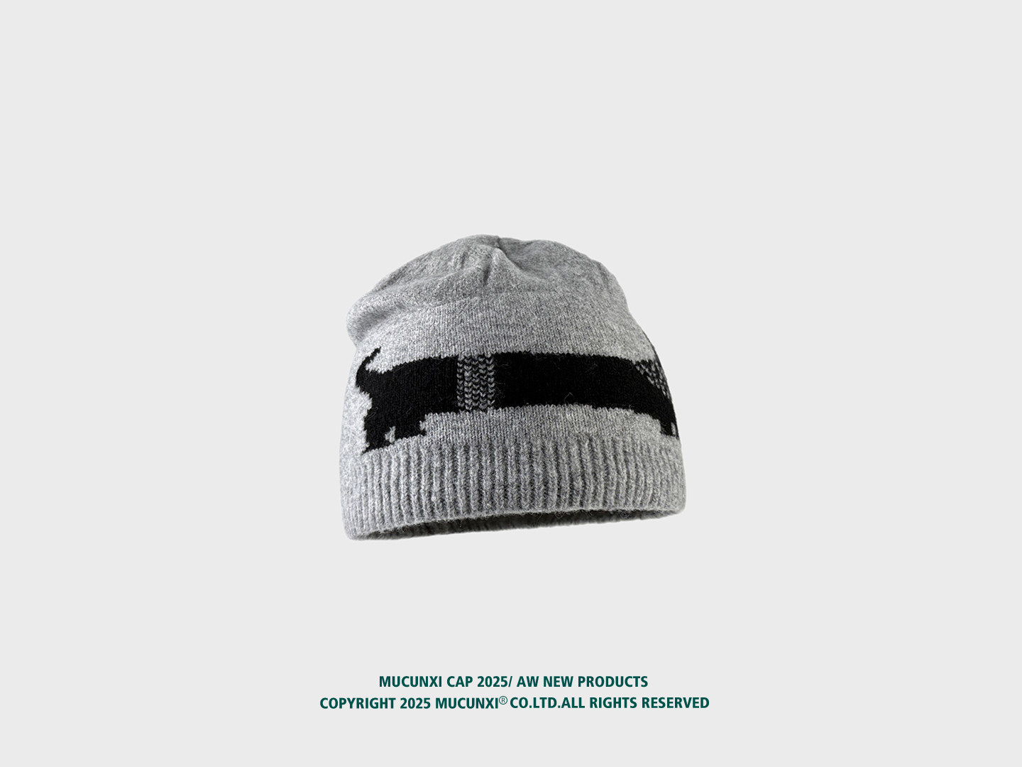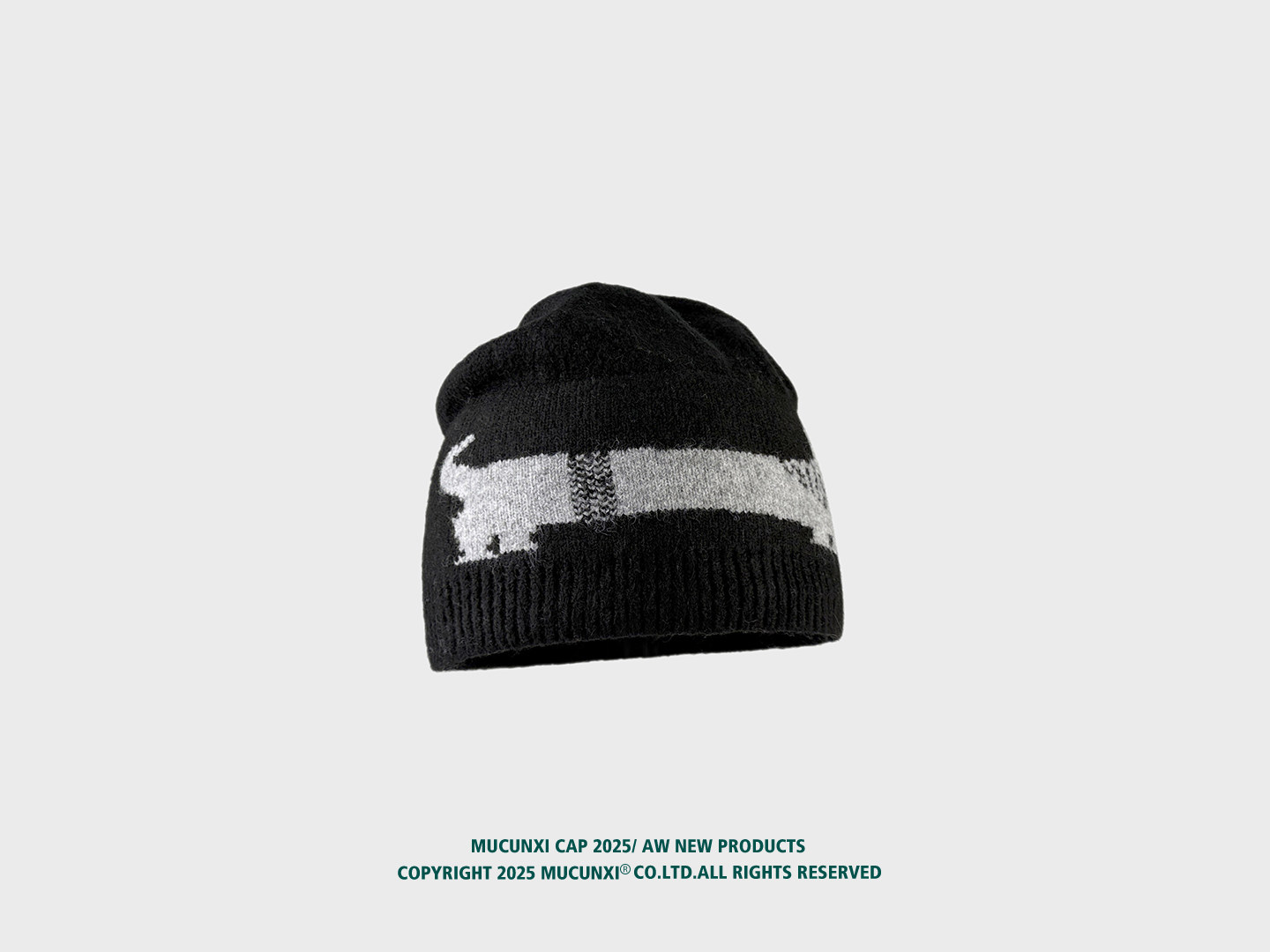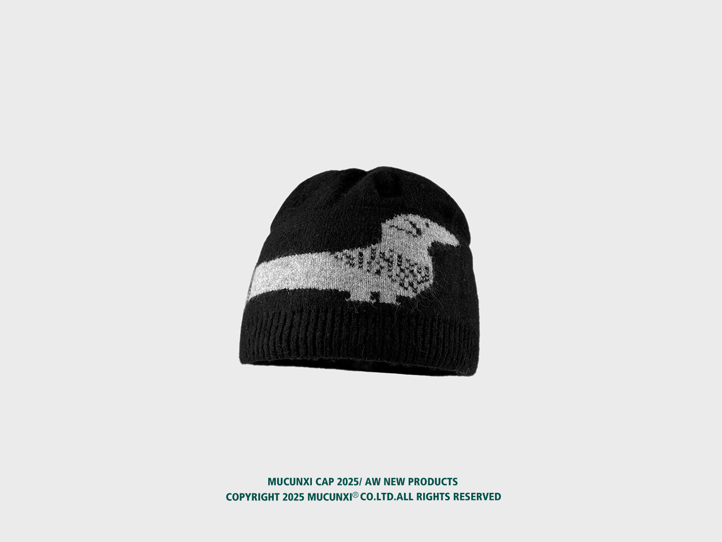 MUCUNXI Wool Blend Dachshund Jacquard Knit Beanie