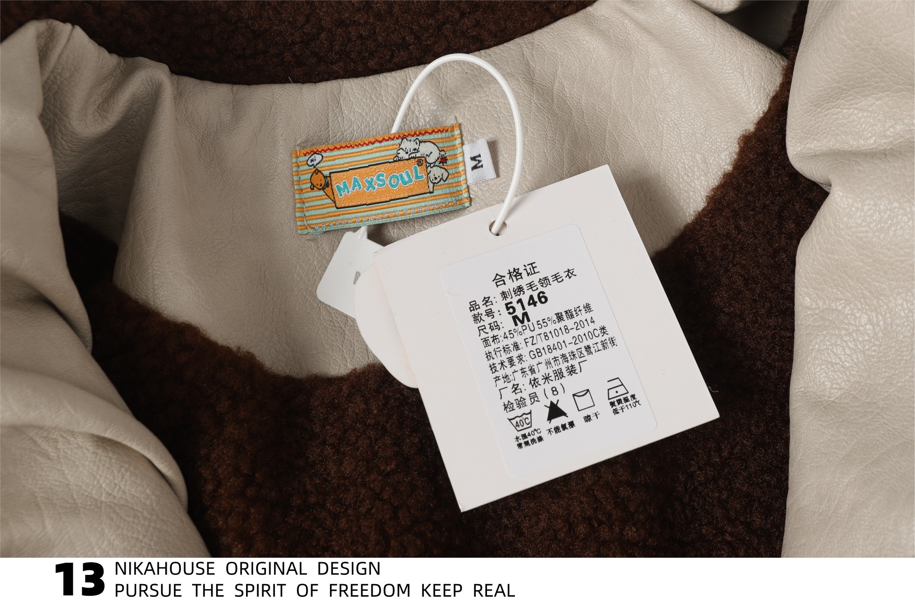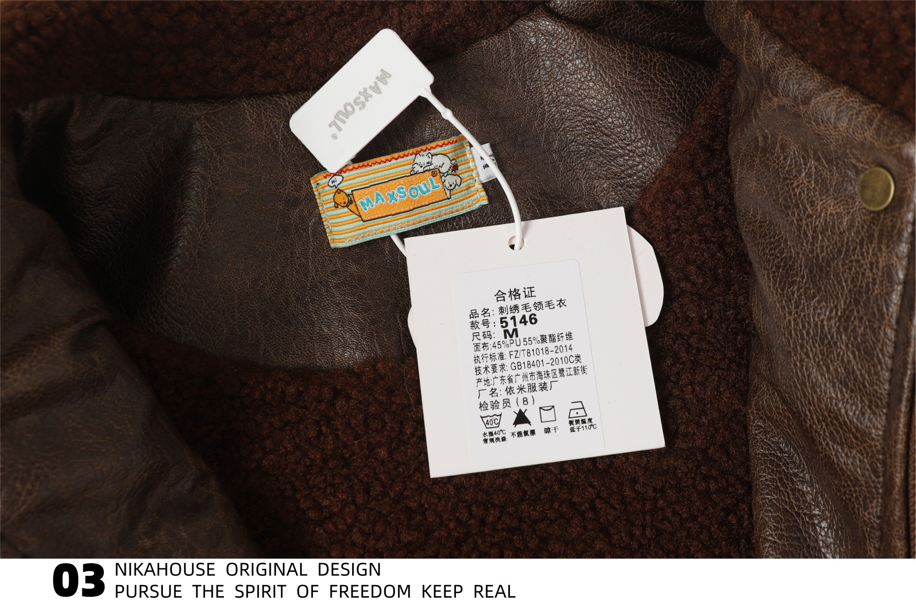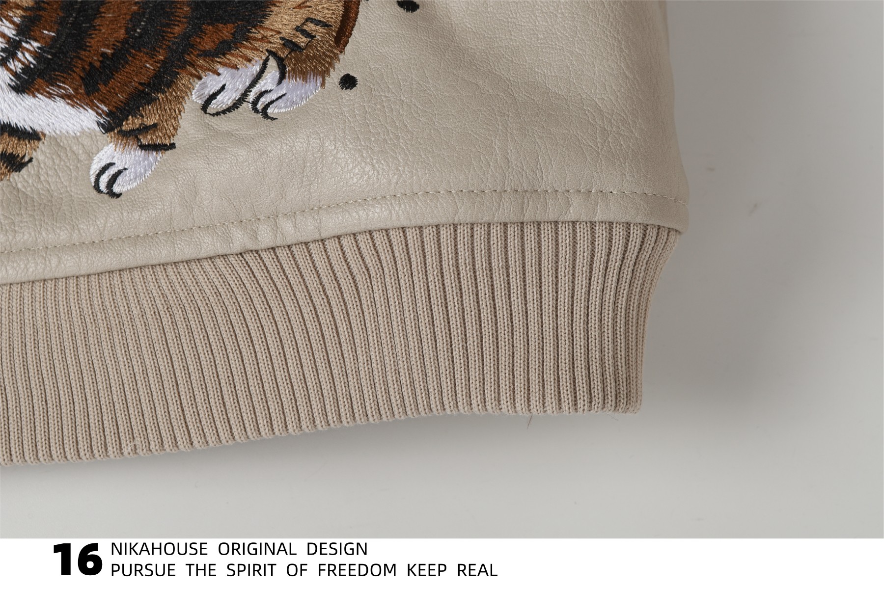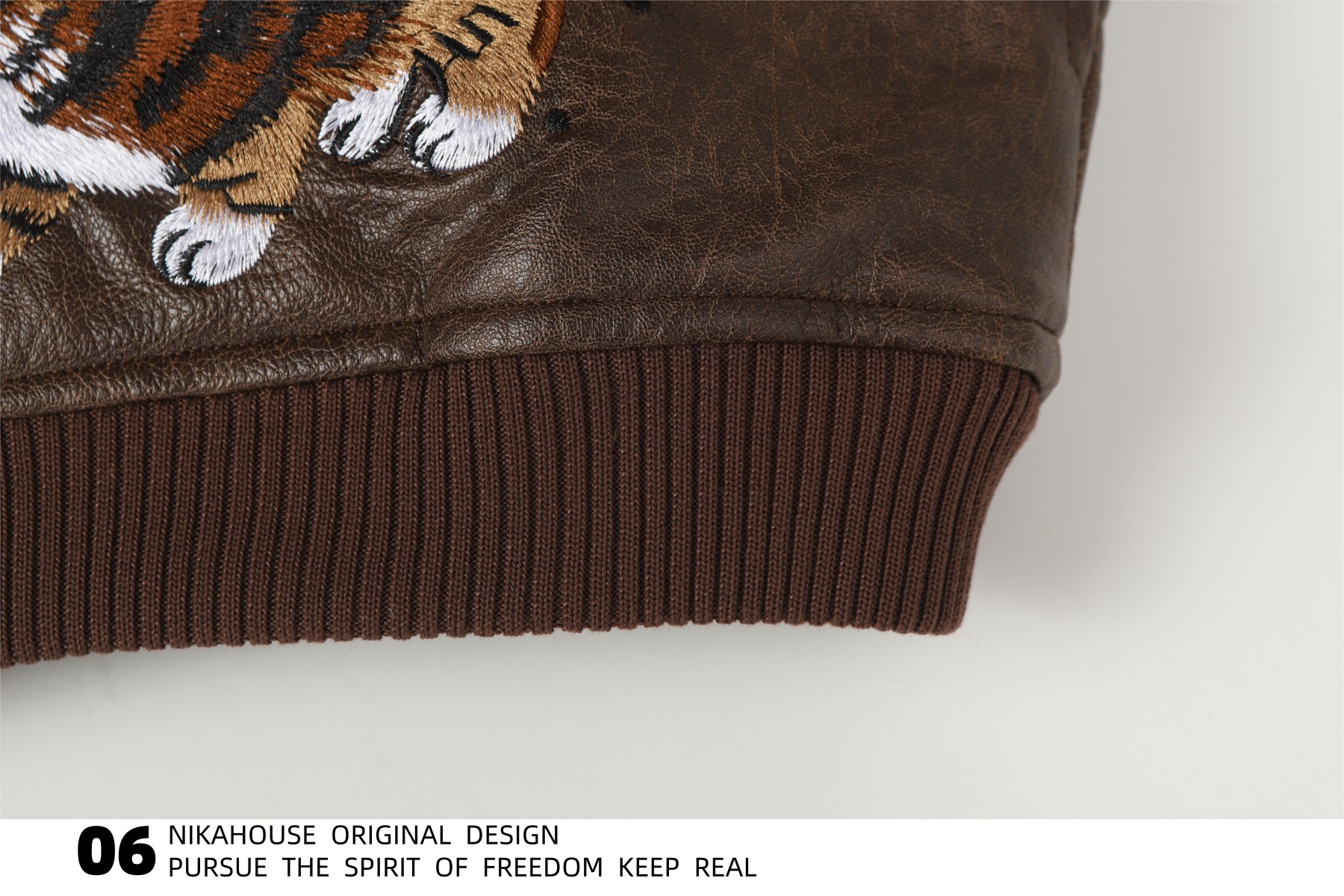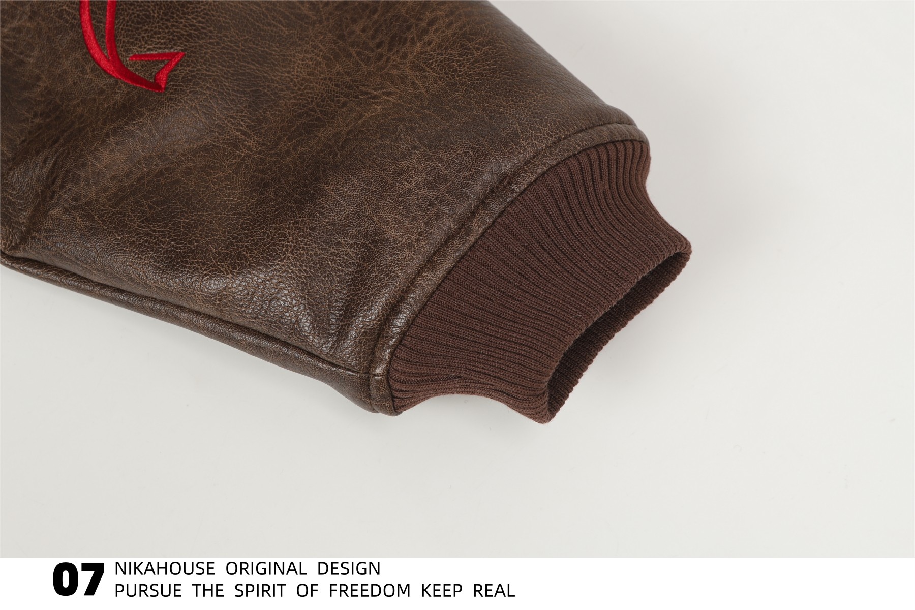 NIKAHOUSE Washed Cute Cat Embroidery Fur Leather Jacket