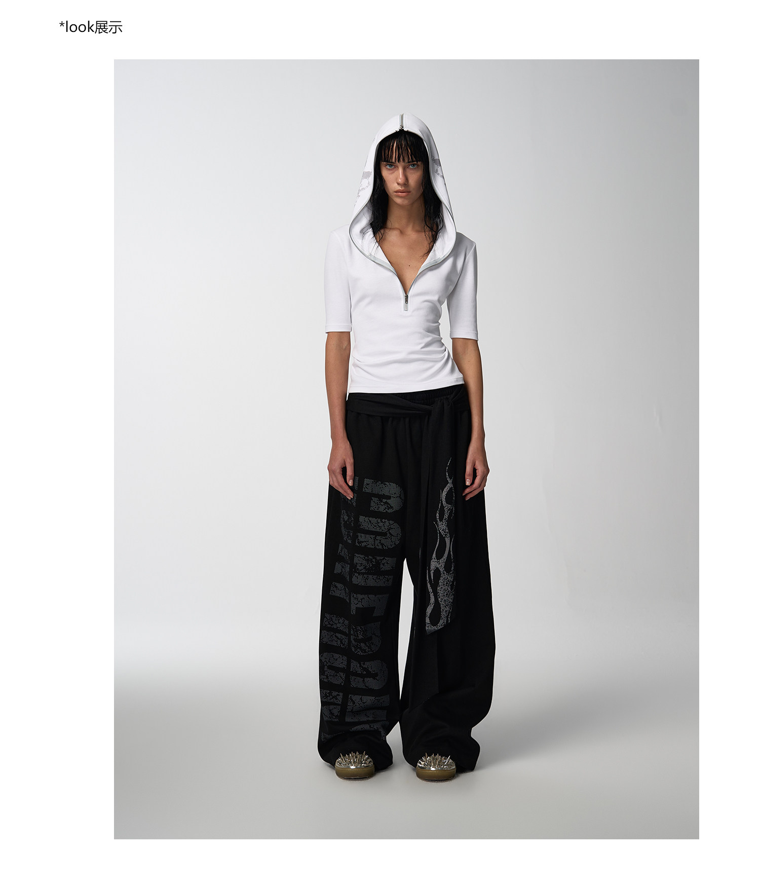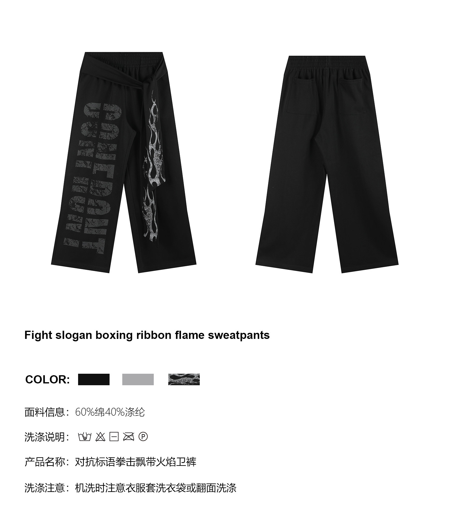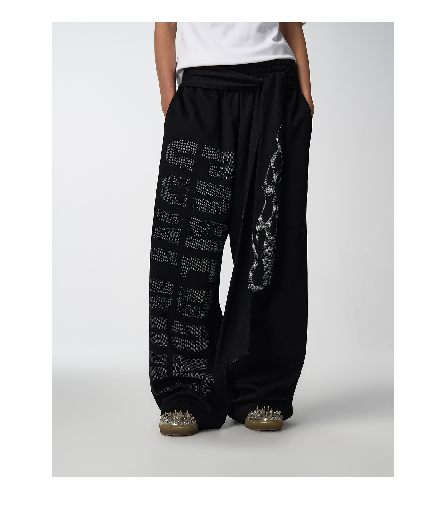 noEmosen Confront Slogan Flame Streamer Sweatpants