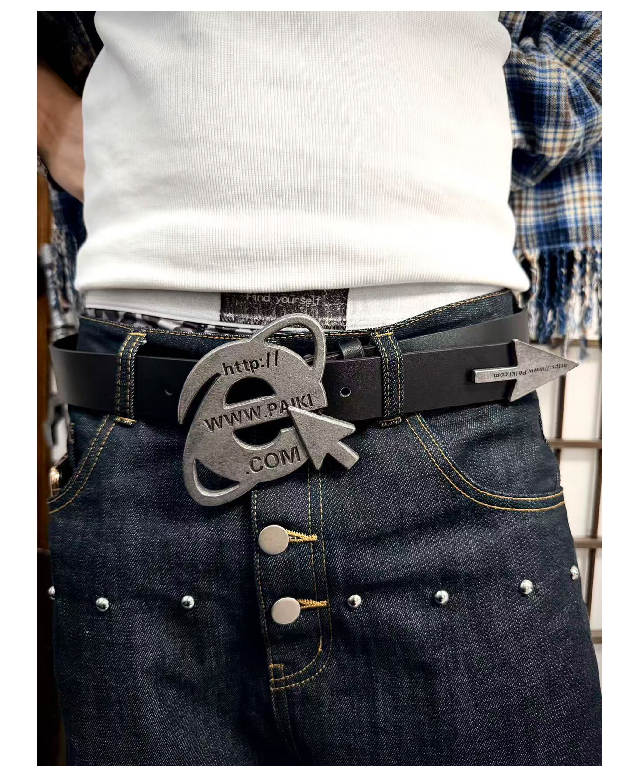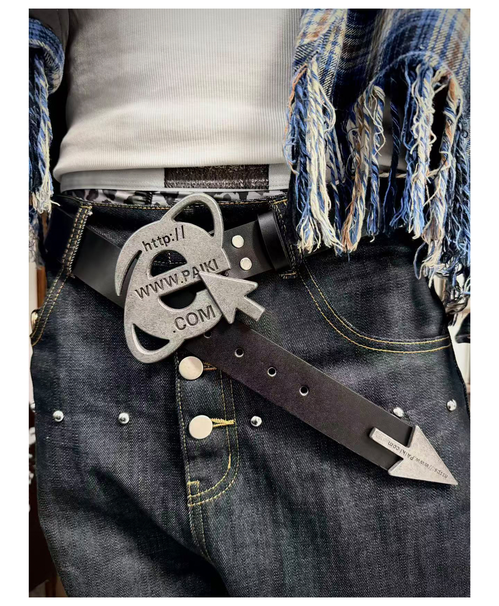 PAIKI Browser Mouse Old Metal First Layer Cowhide Belt Belt