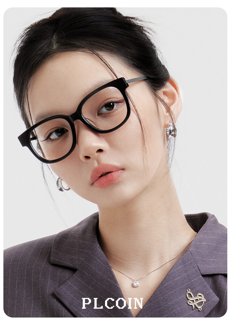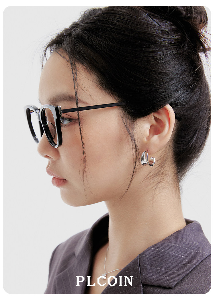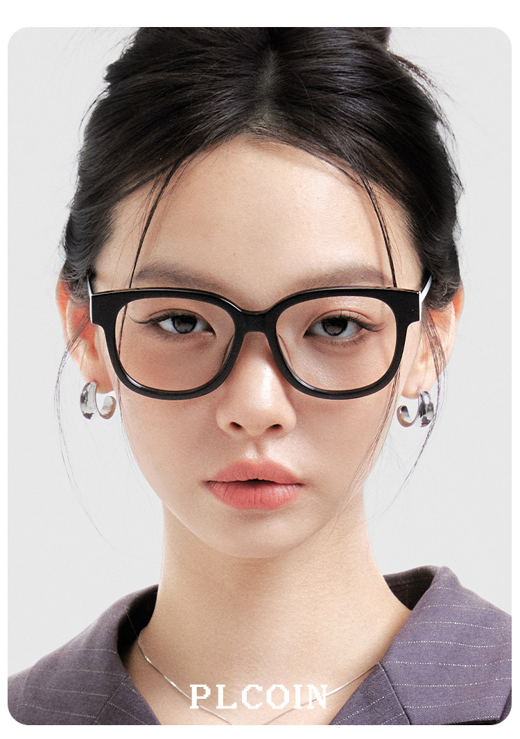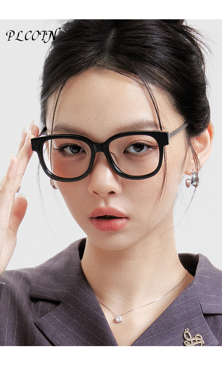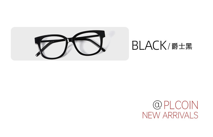 PLCOIN Plain Black Plate Frame Glasses Anti-Blue Light Myopia