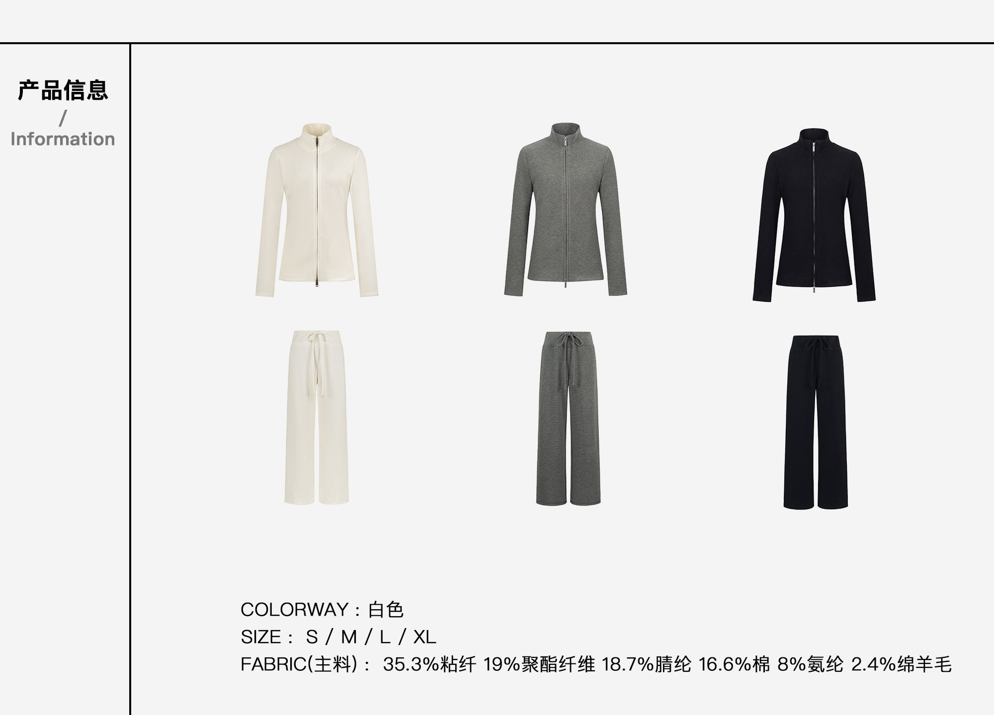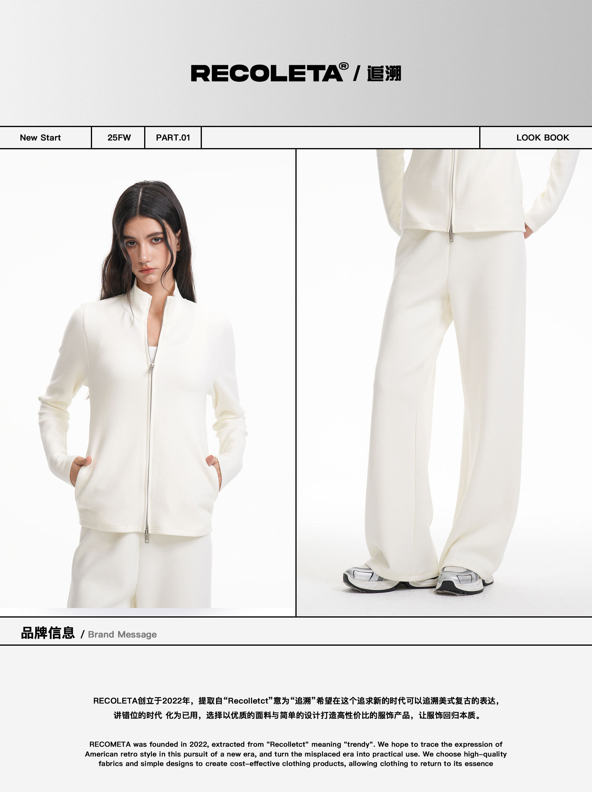 RECOLETA Lazy Wool Zipper Stand Collar Cardigan Set