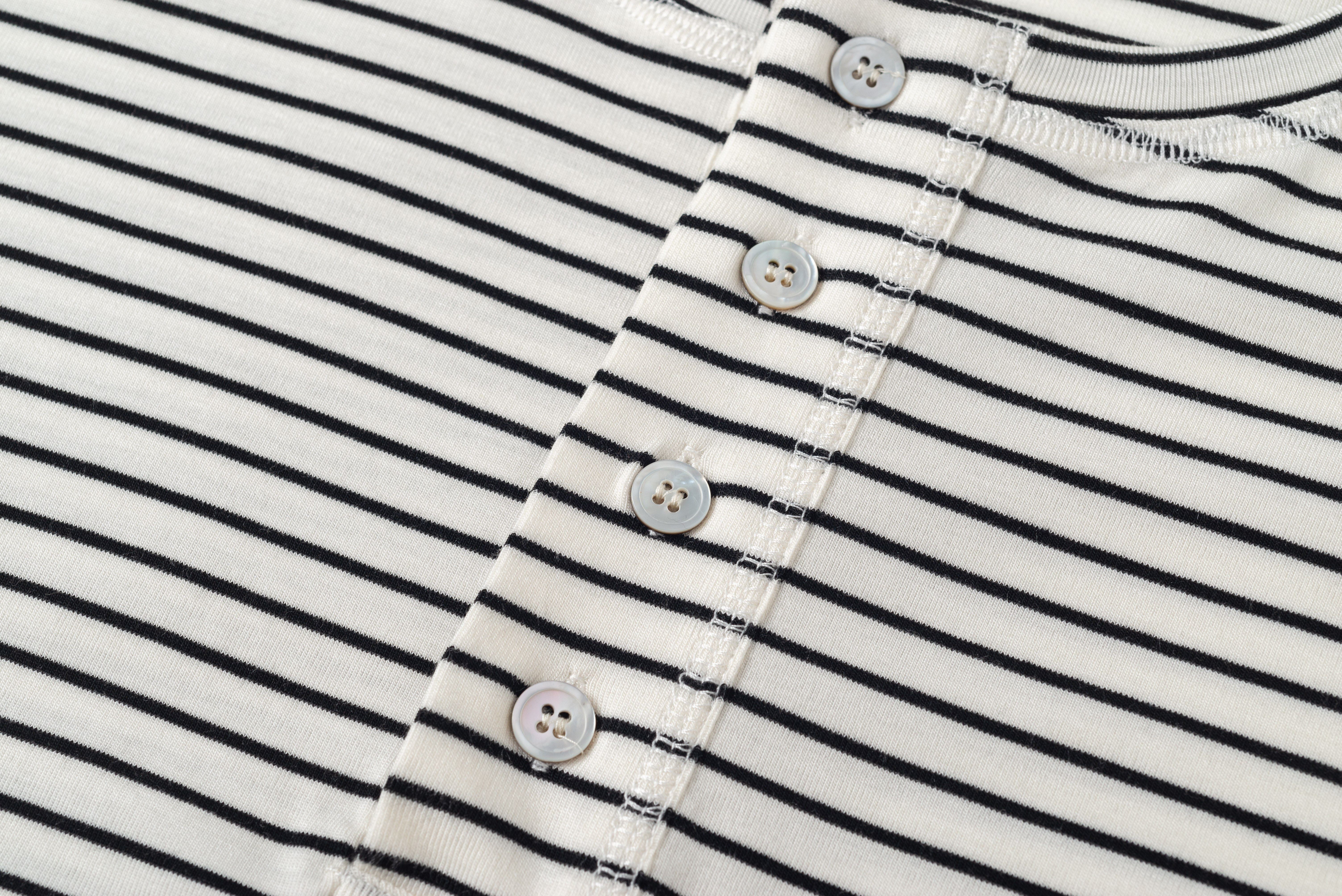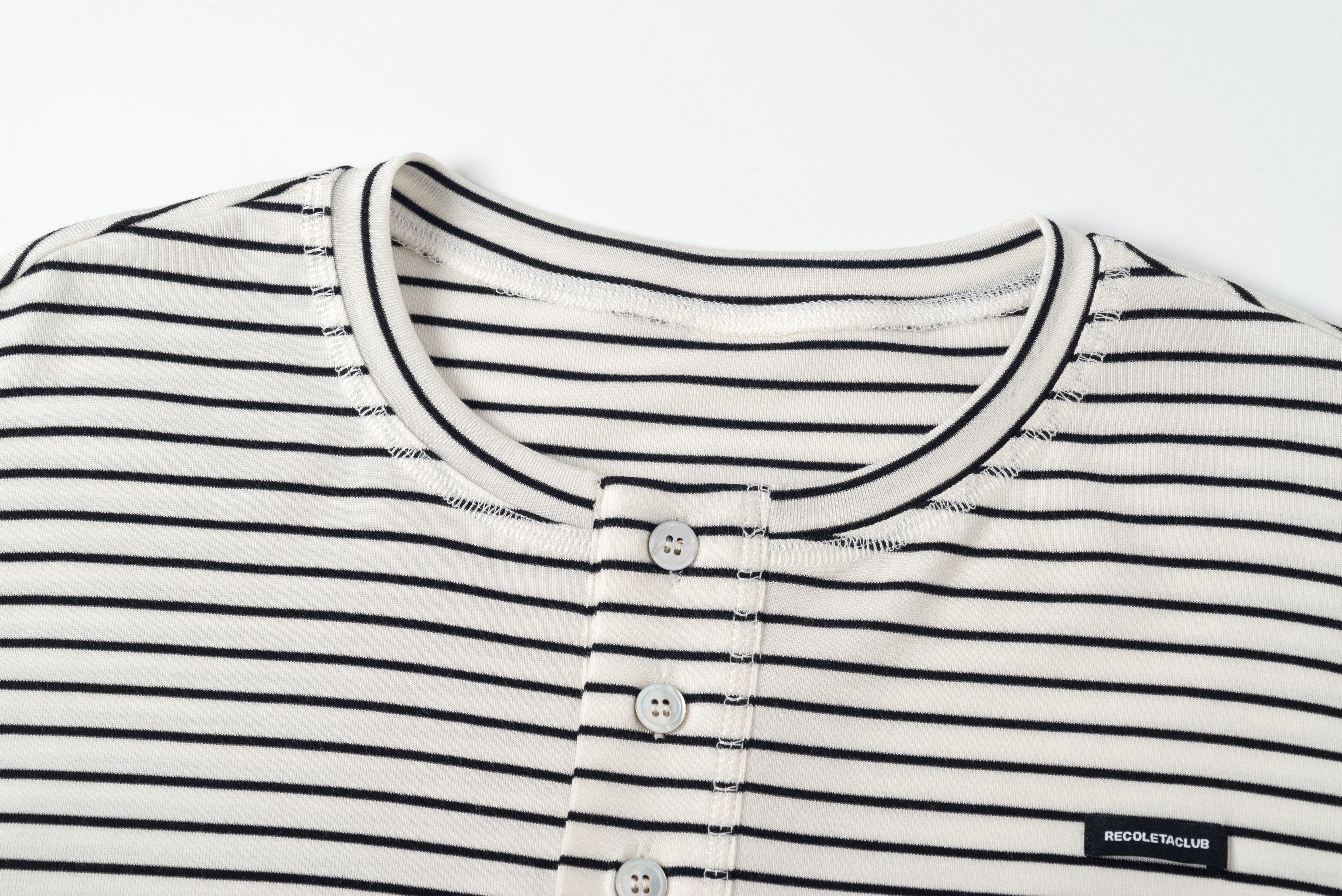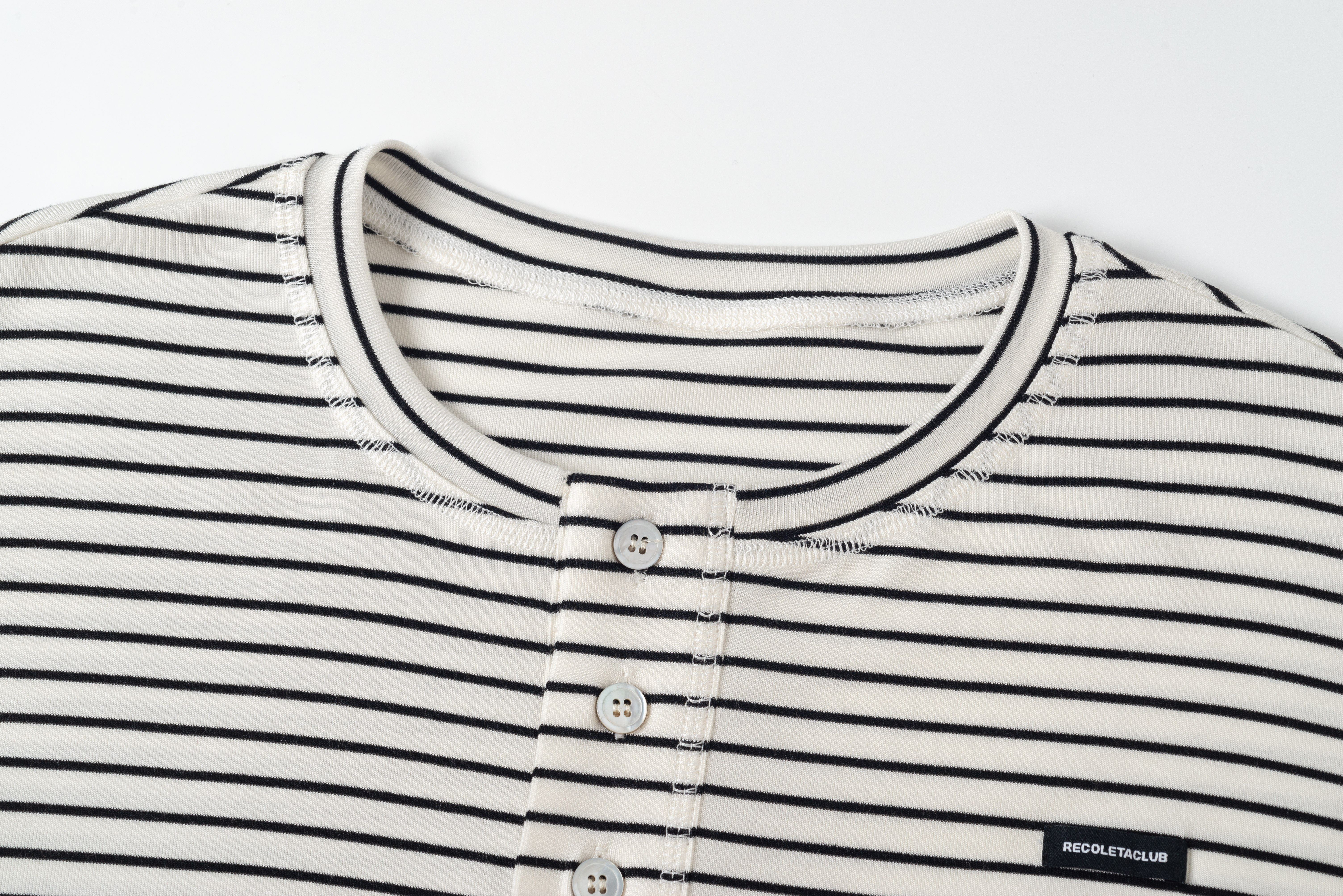 RECOLETA Tencel Striped Henley Long Sleeve Tee