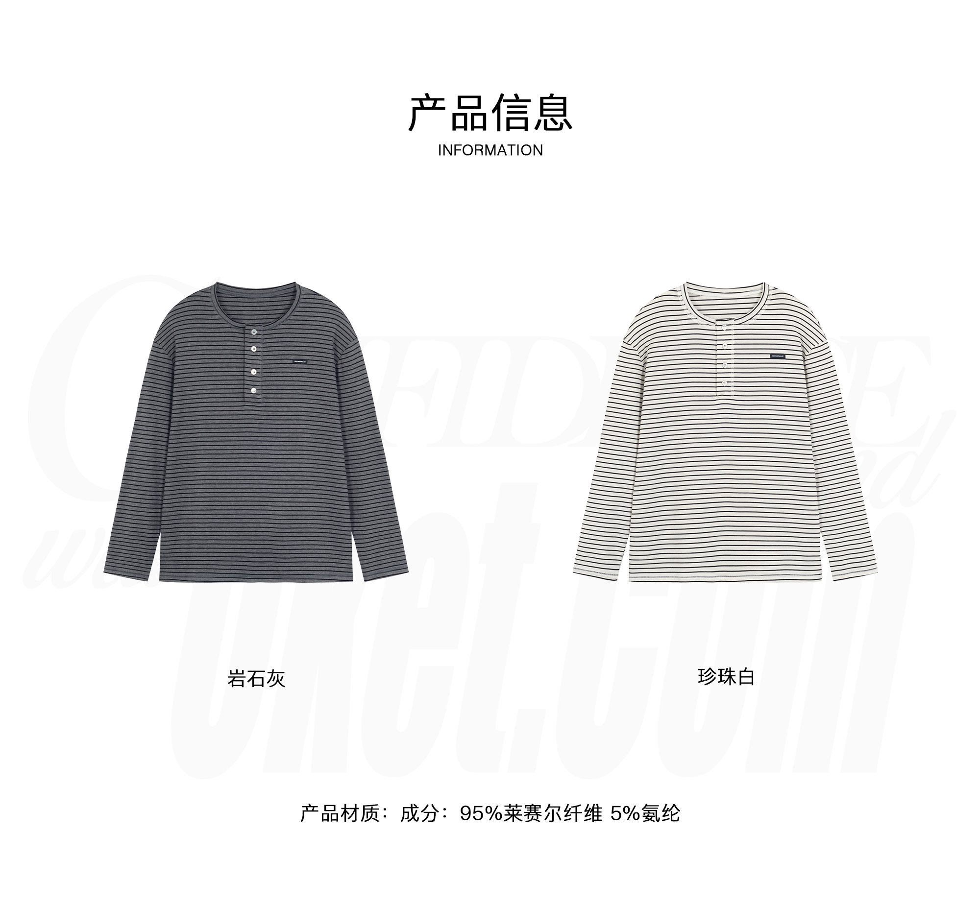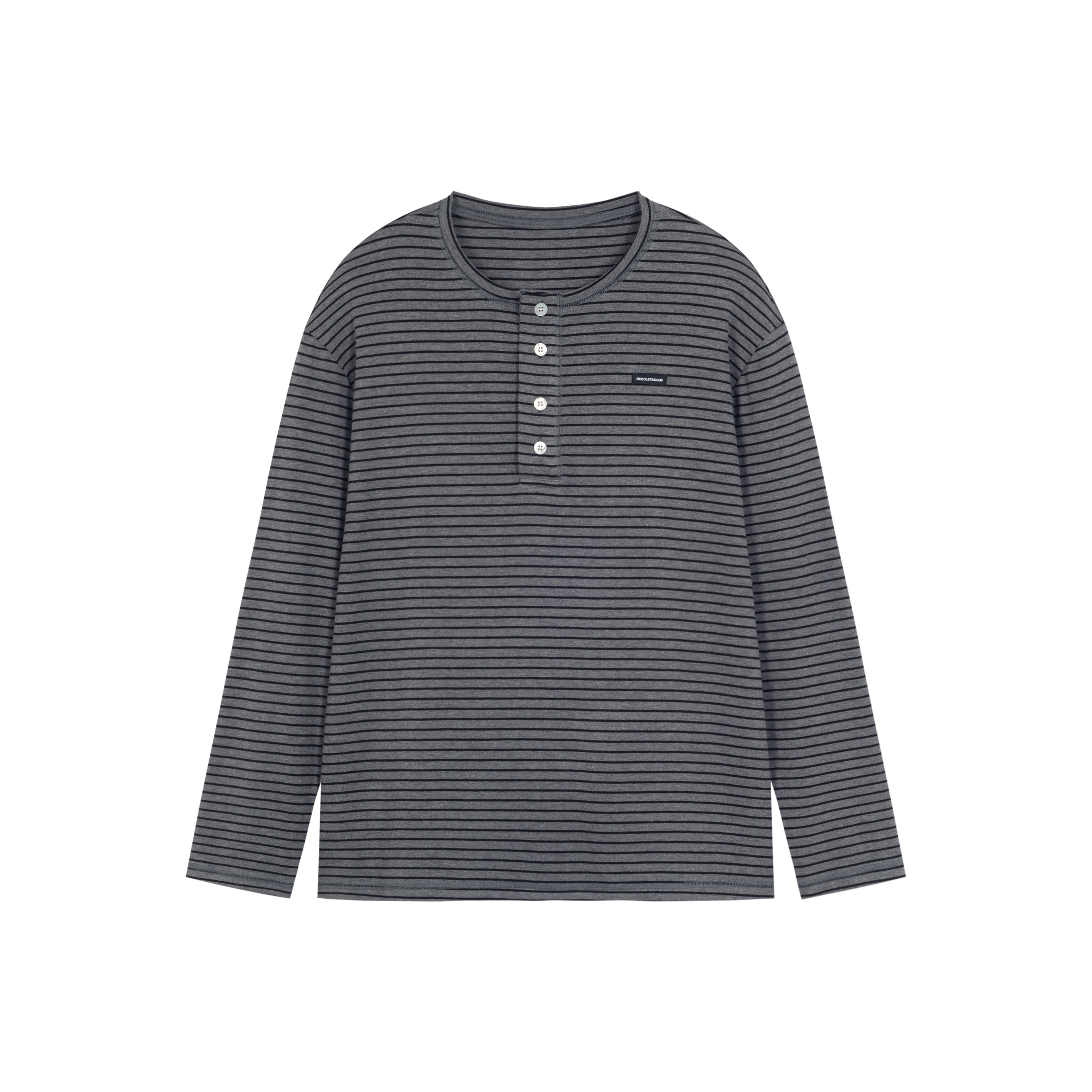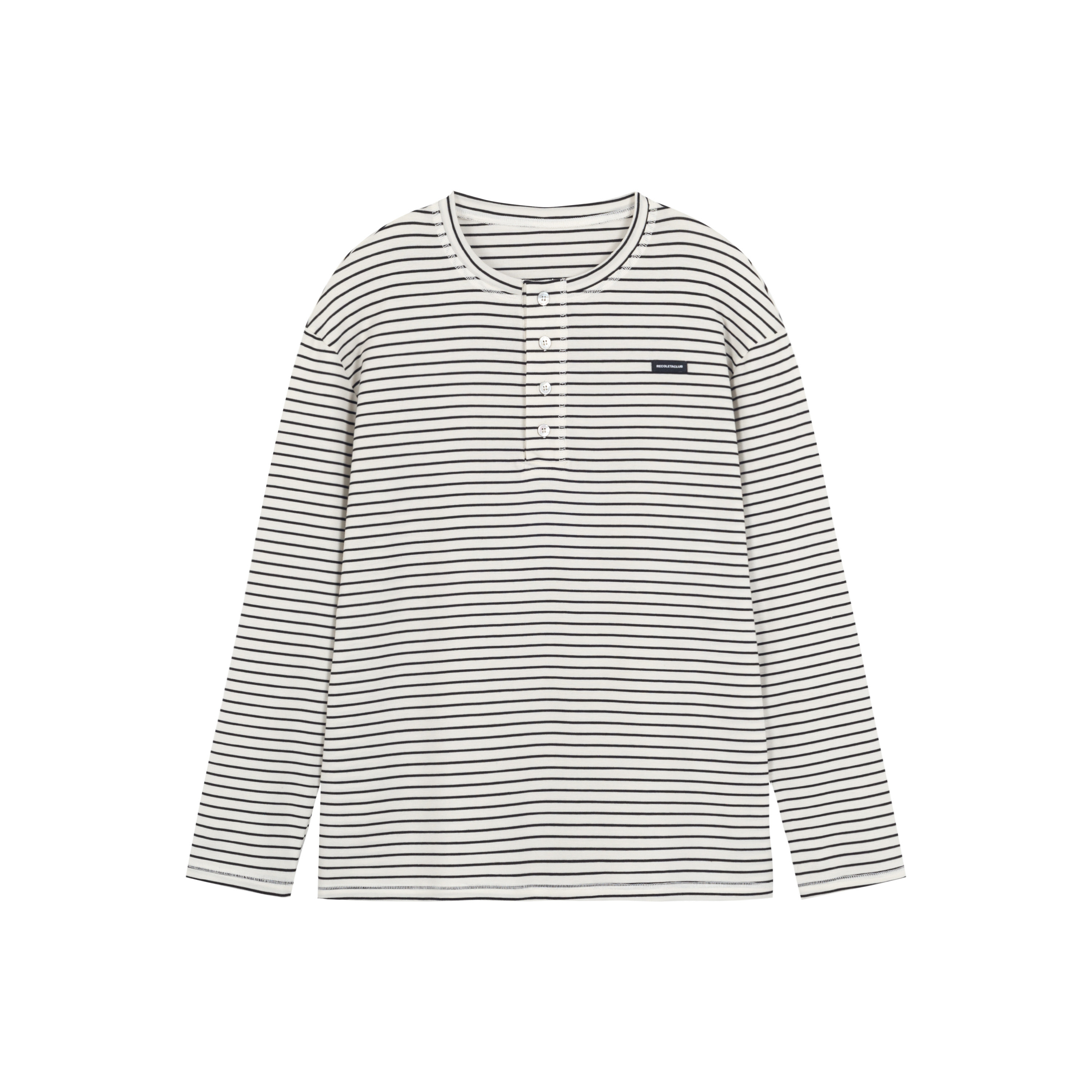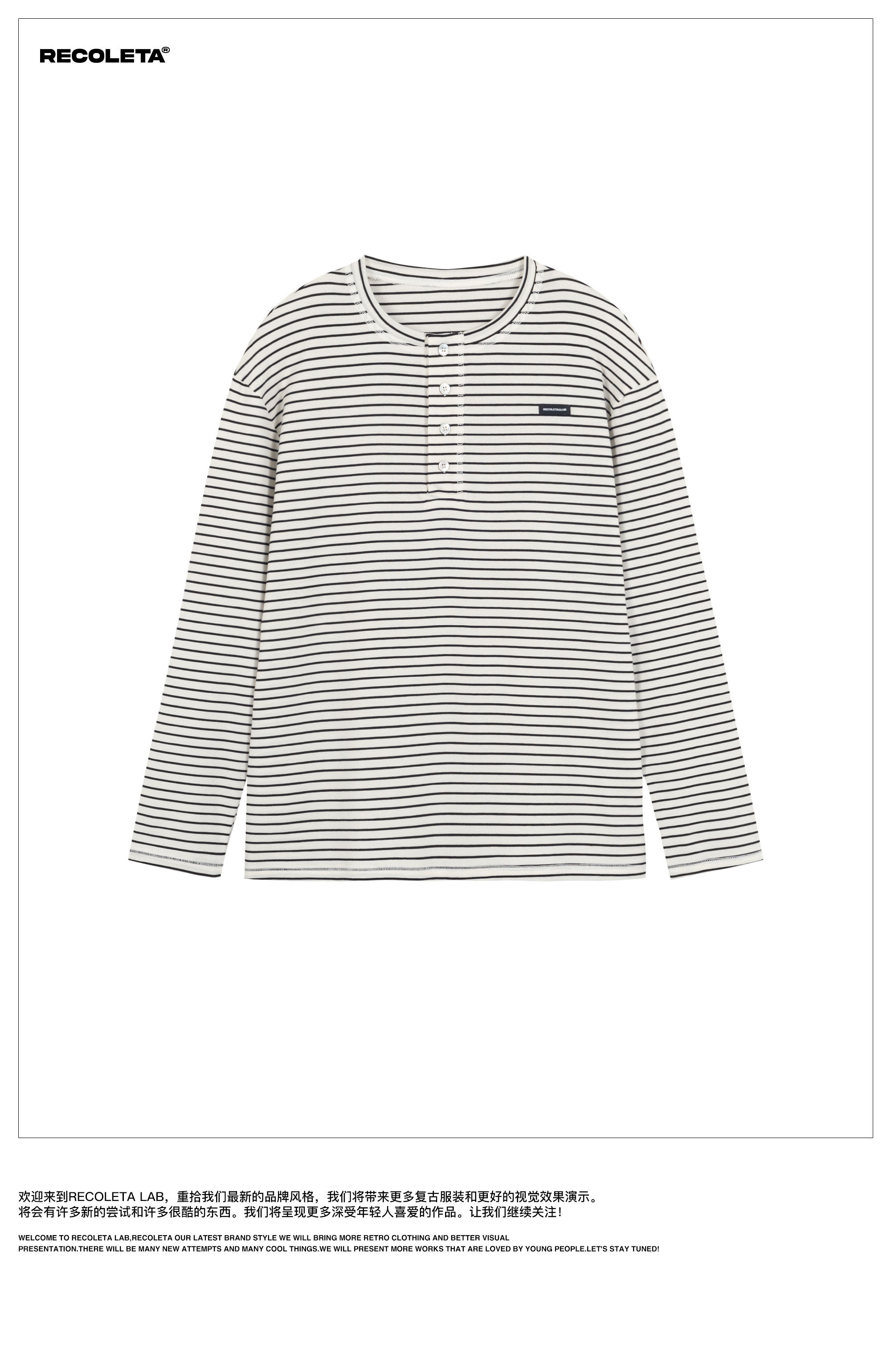 RECOLETA Tencel Striped Henley Long Sleeve Tee