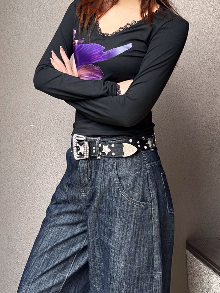Darkblue Store Retro Star Rhinestone Broken Punk Belt
