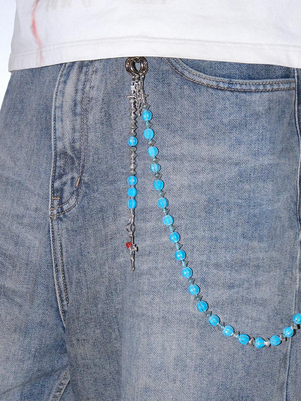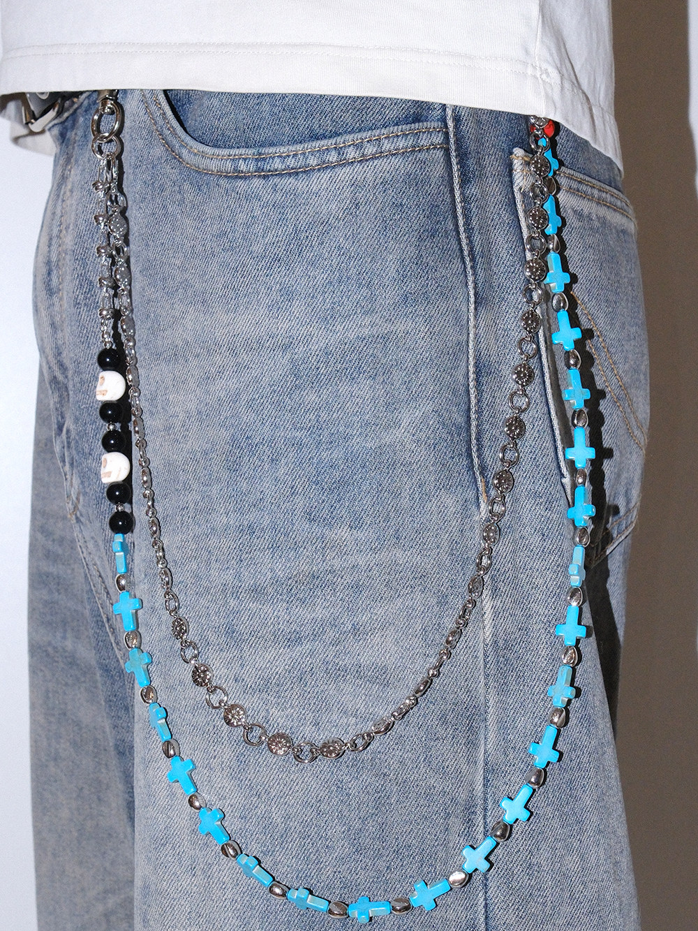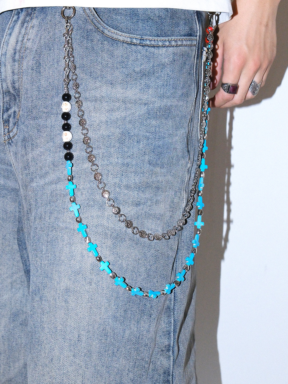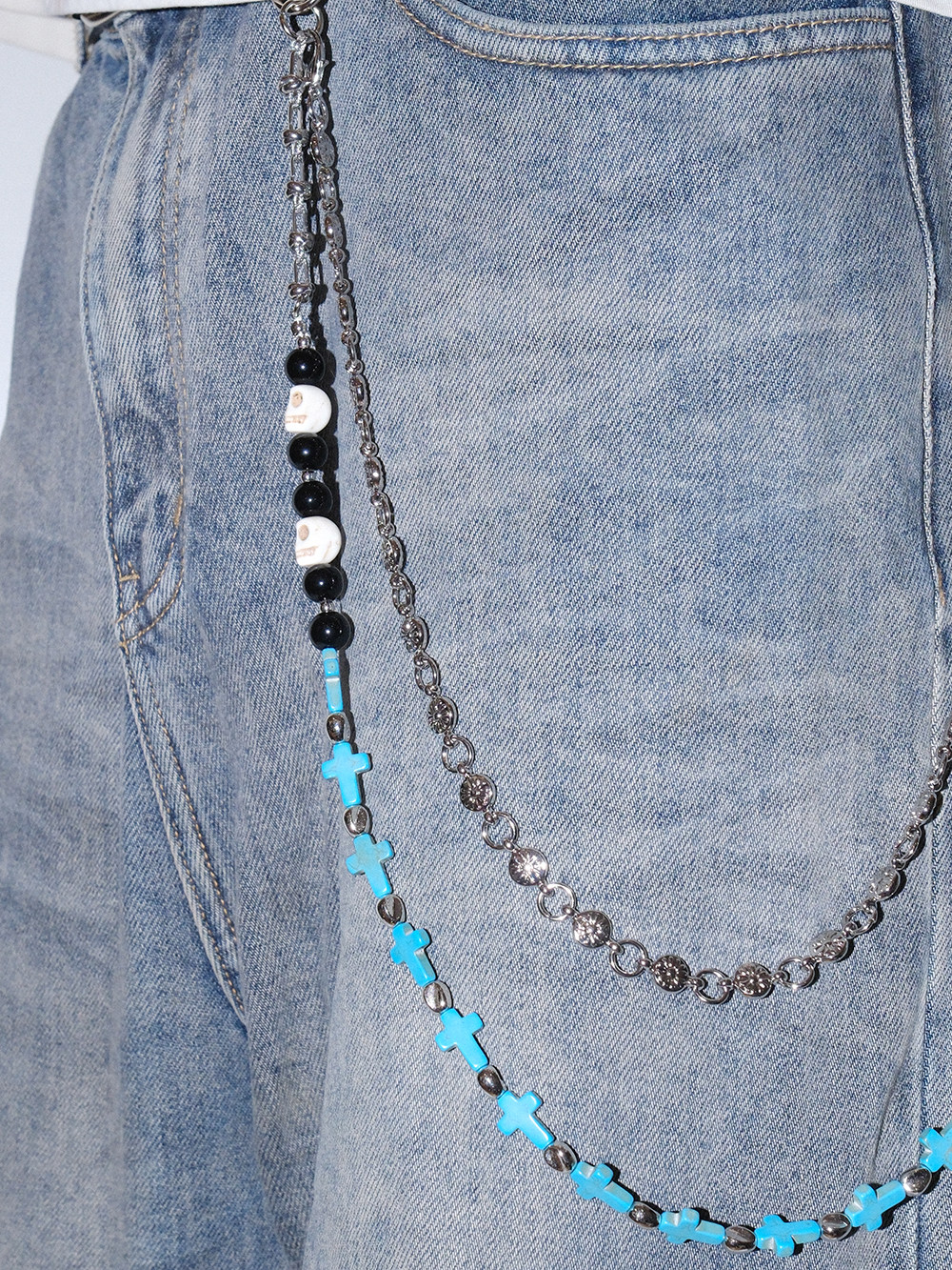 Darkblue Store Retro Blue Cross Skull Punk Trouser Chain