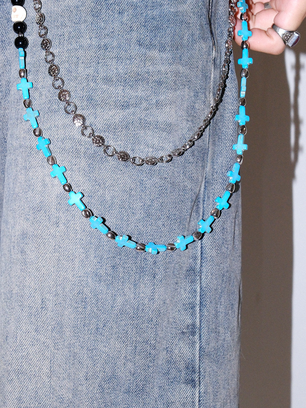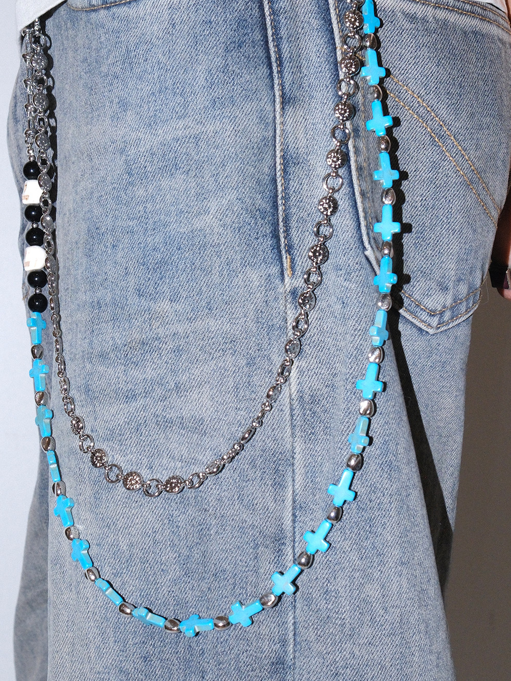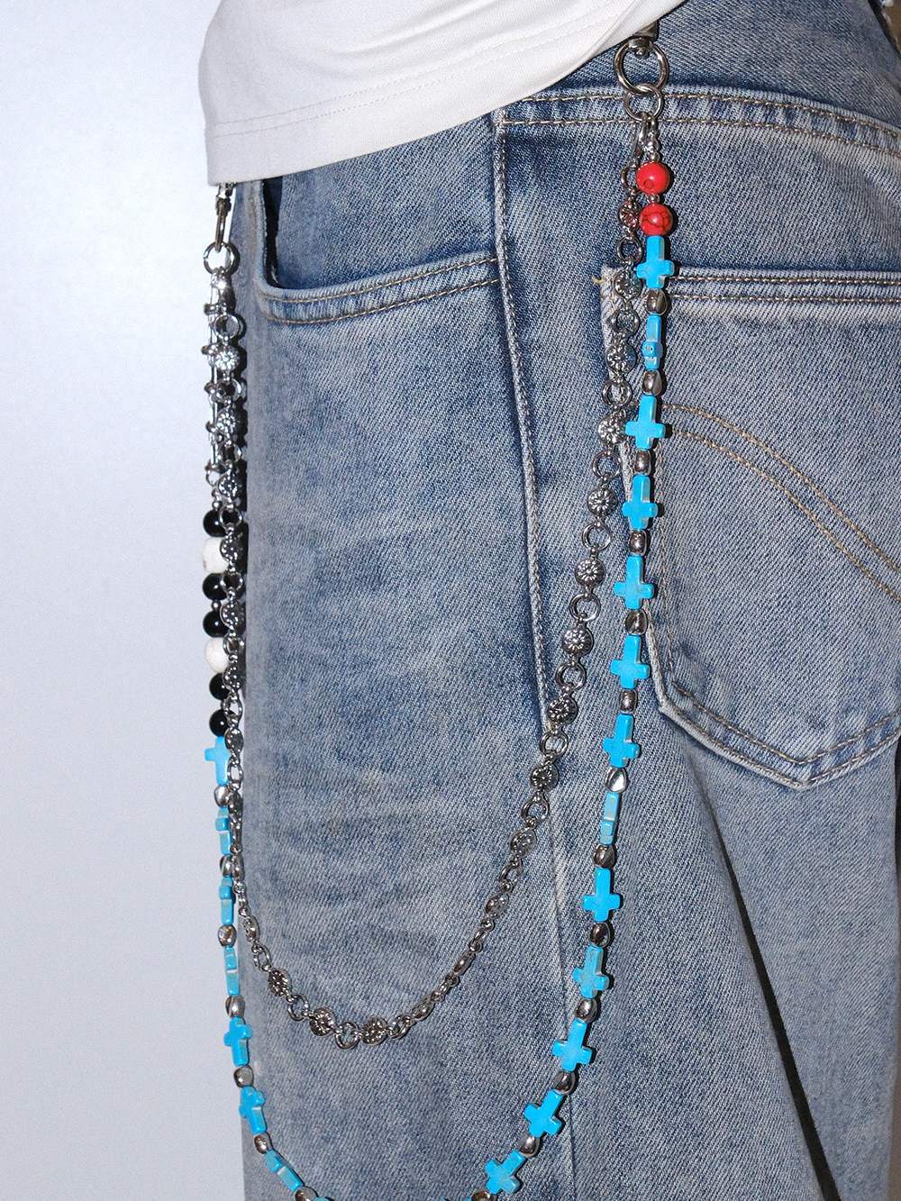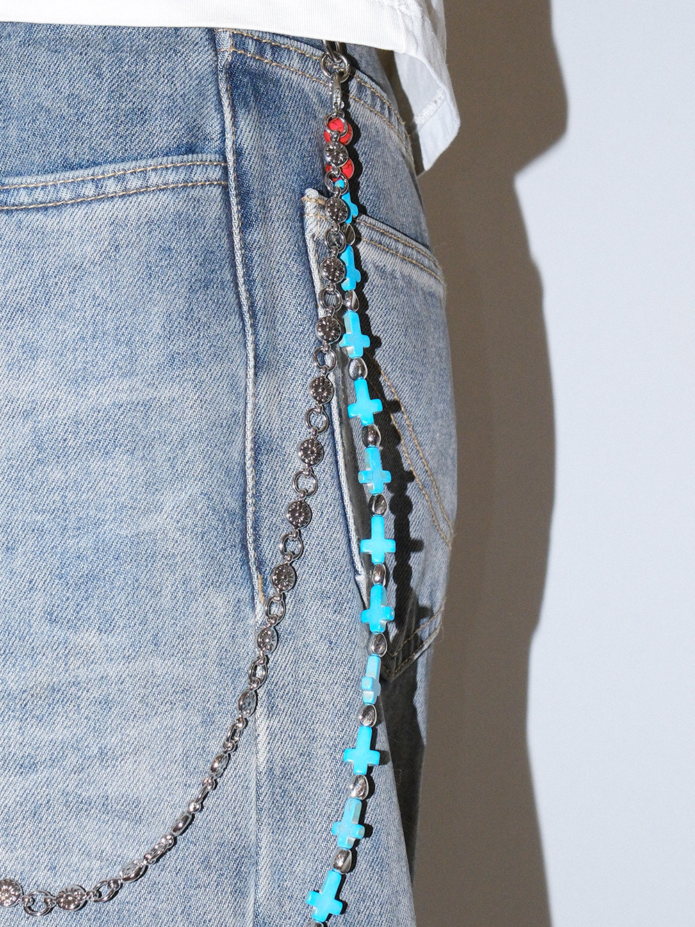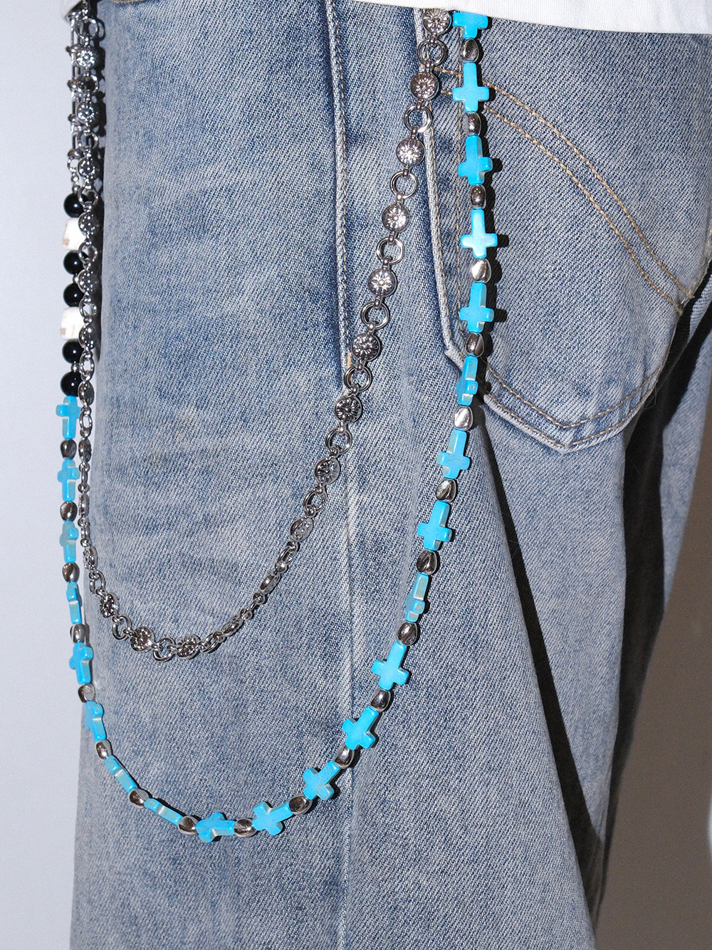 Darkblue Store Retro Blue Cross Skull Punk Trouser Chain
